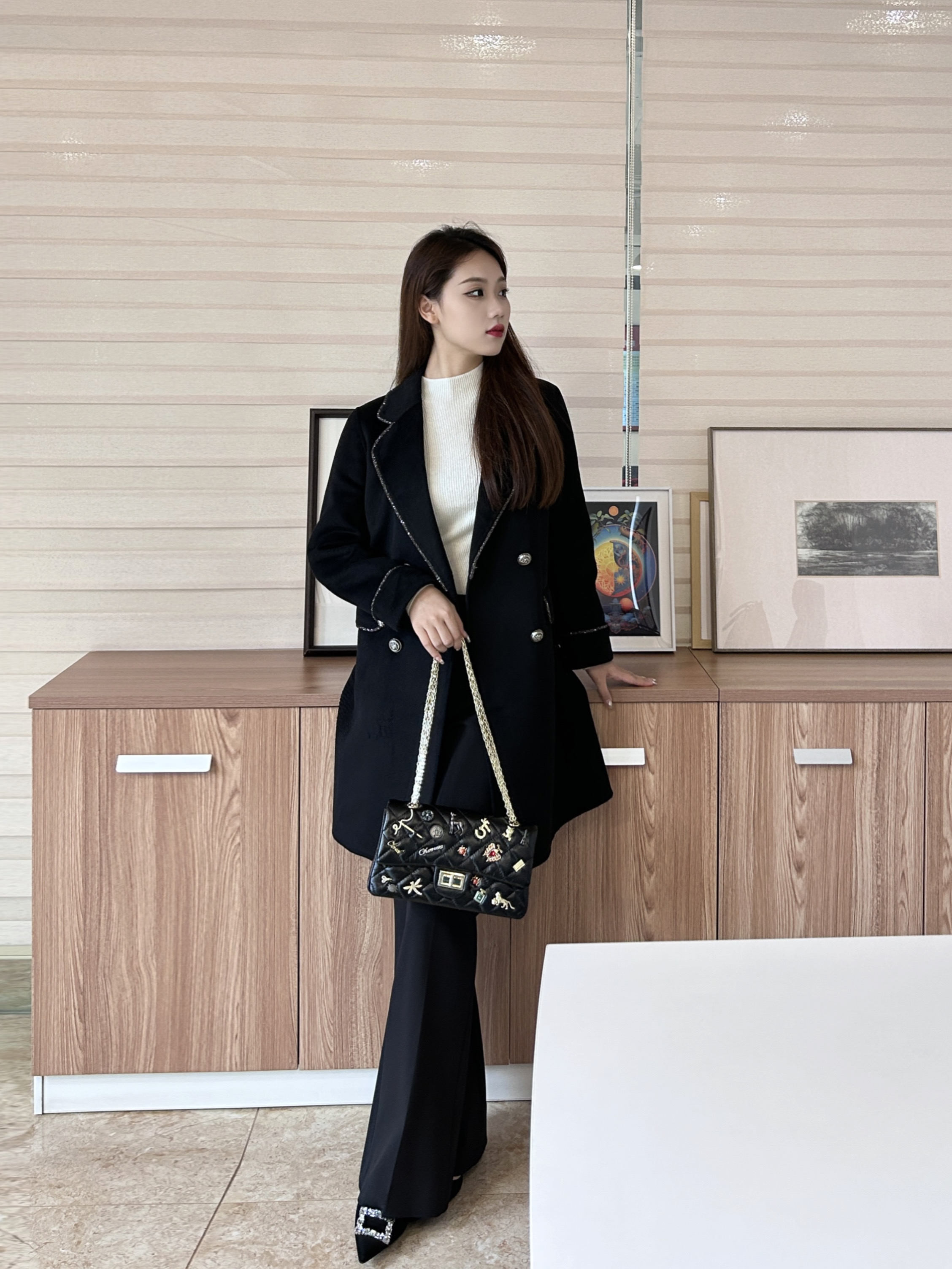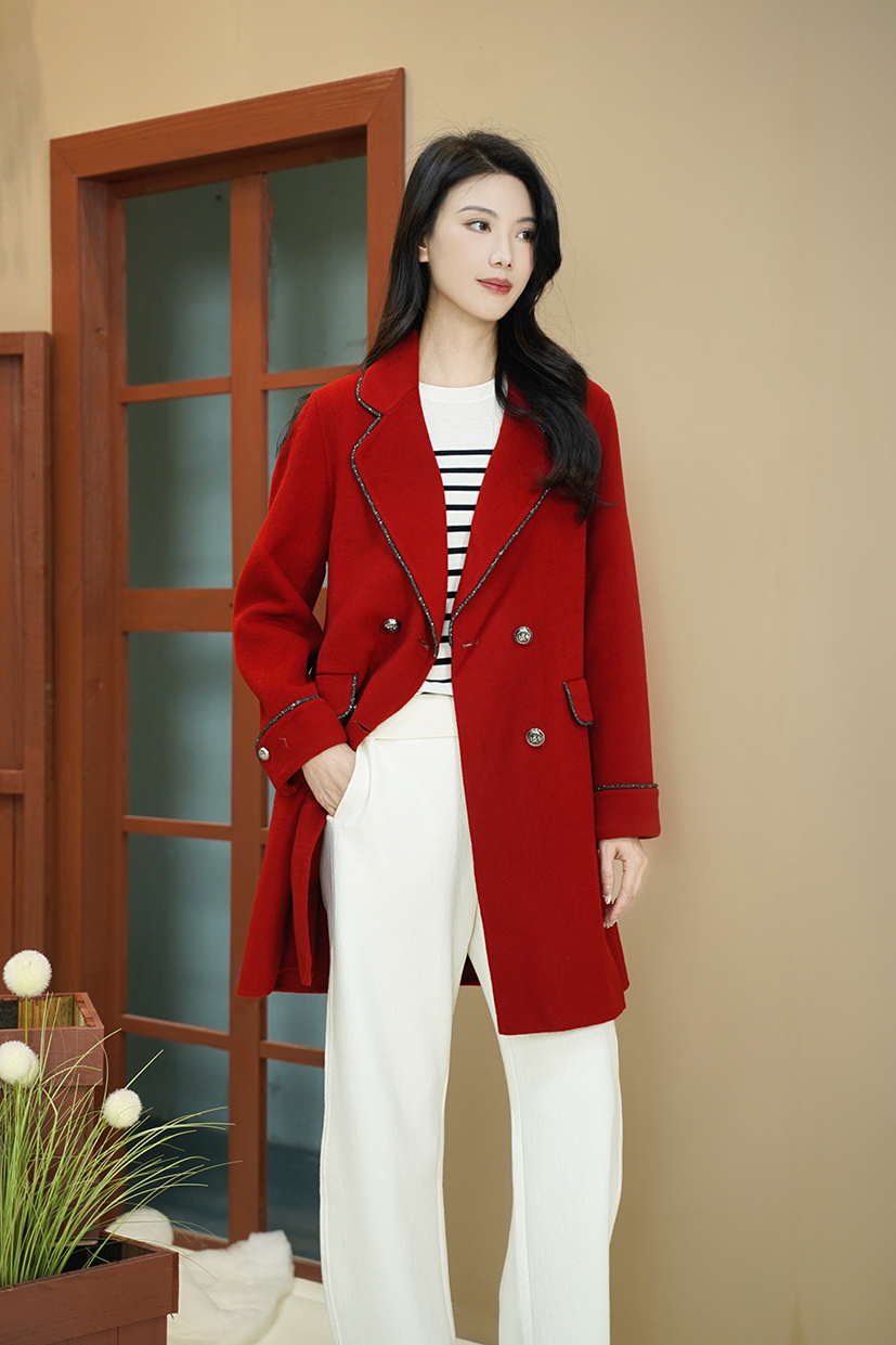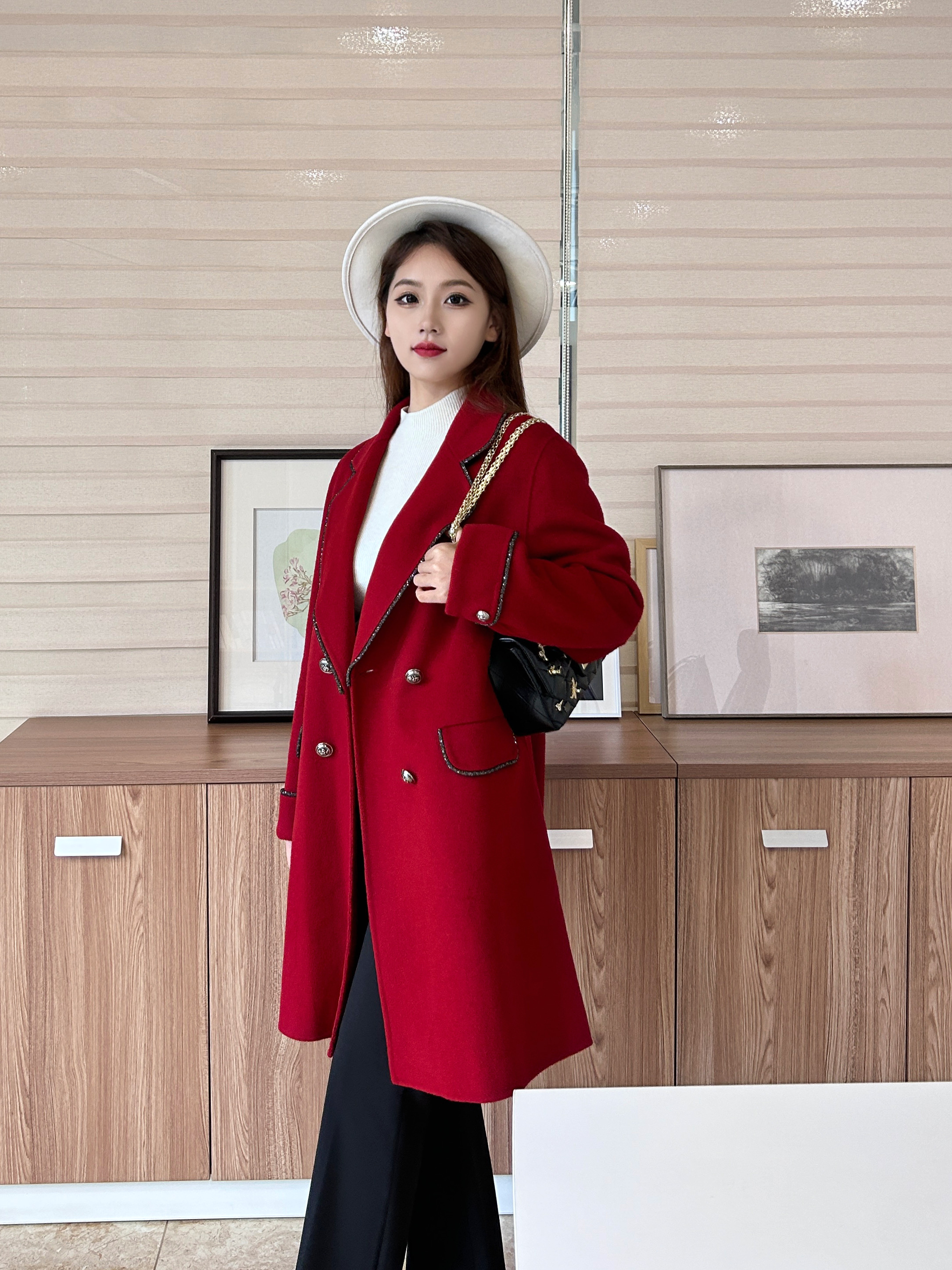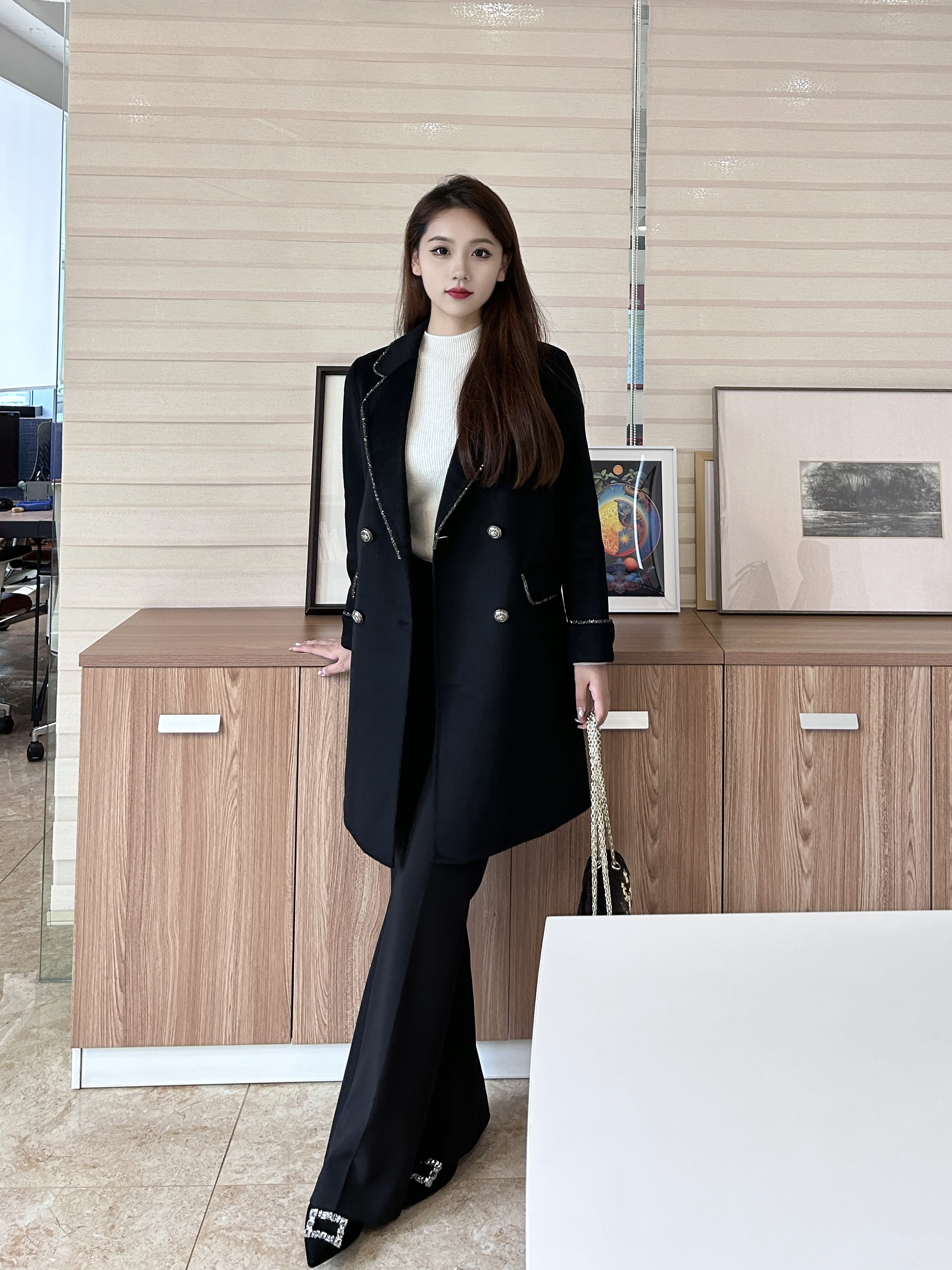 门襟复古双排扣的设计,穿脱方便,袖扣翻边开衩,
