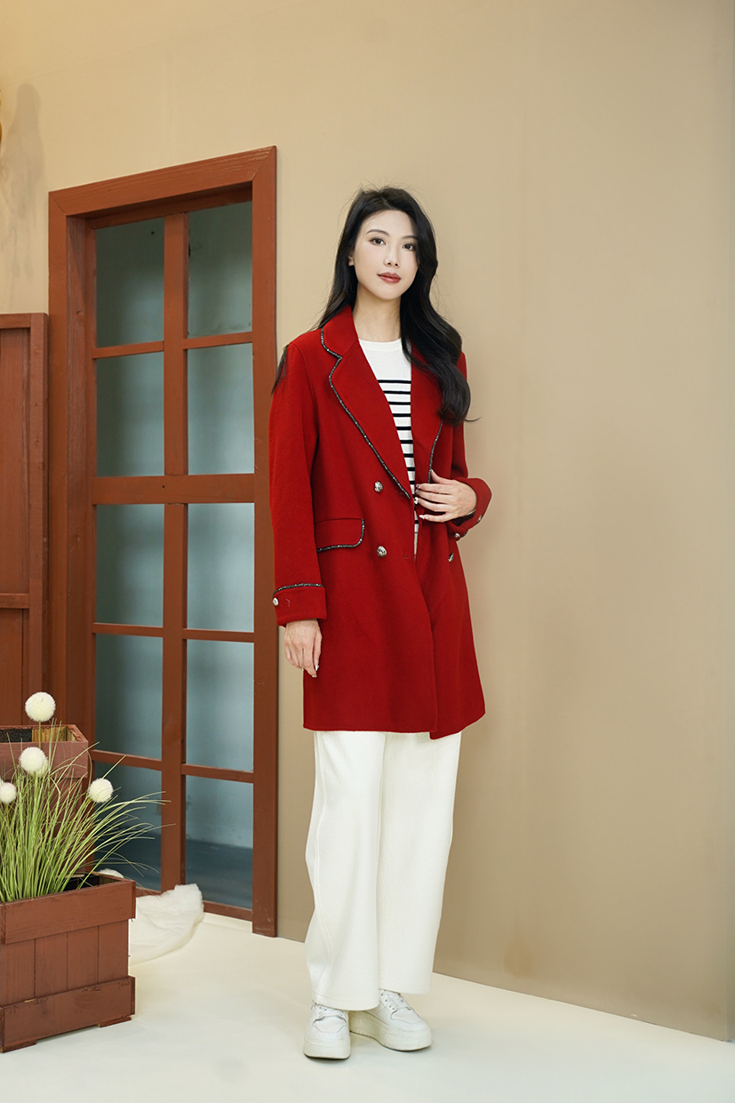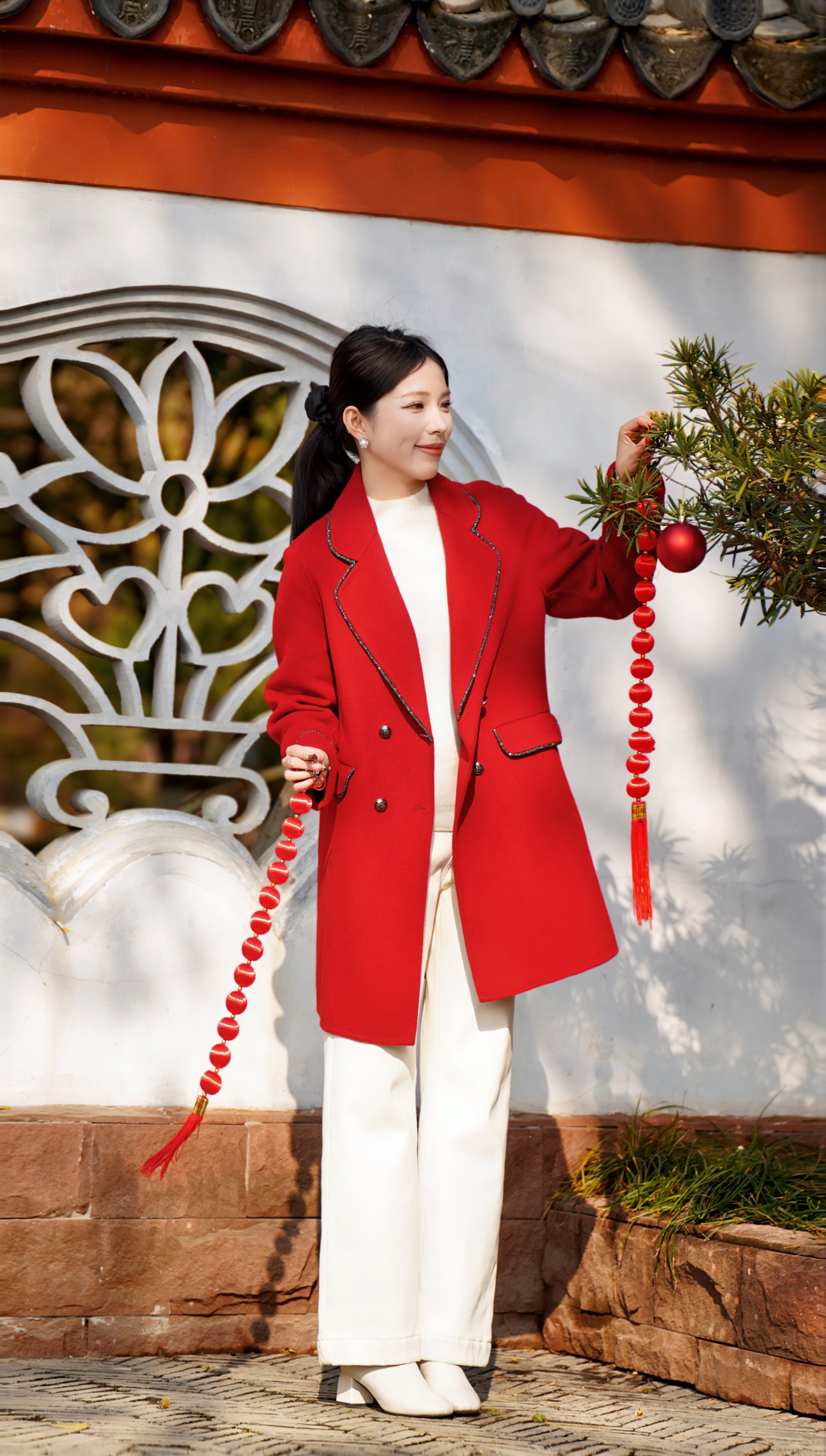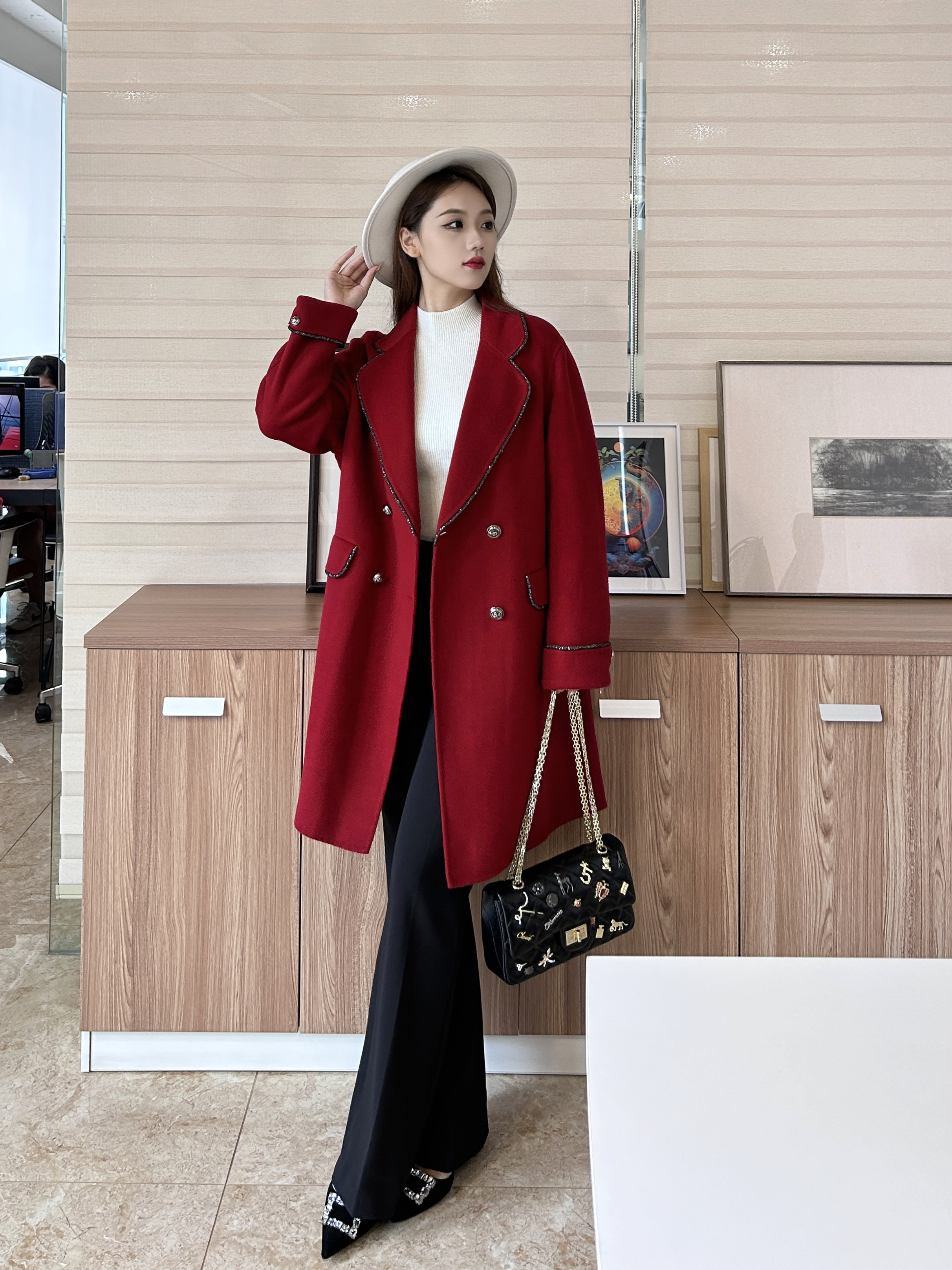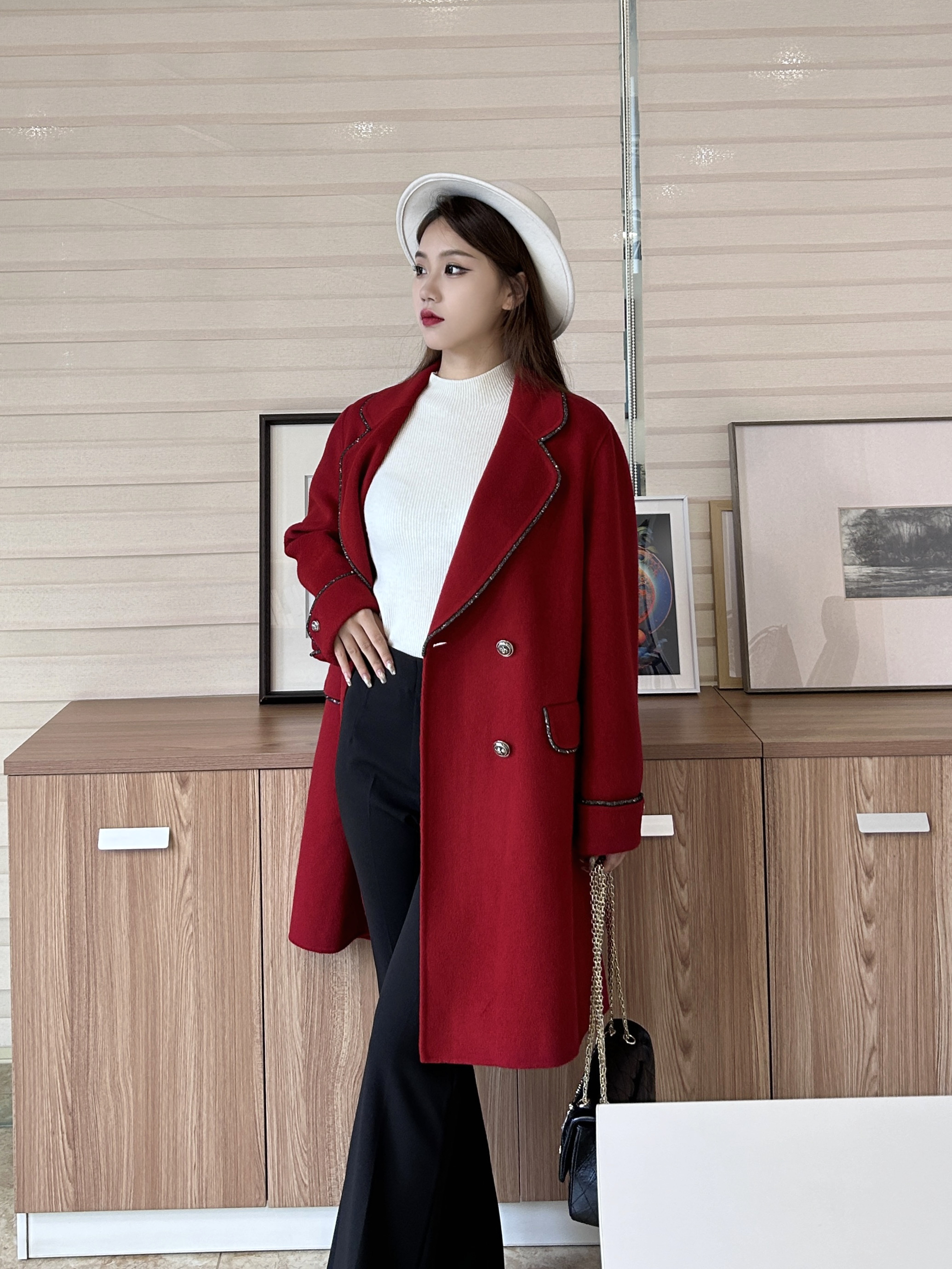 门襟复古双排扣的设计,穿脱方便,袖扣翻边开衩,