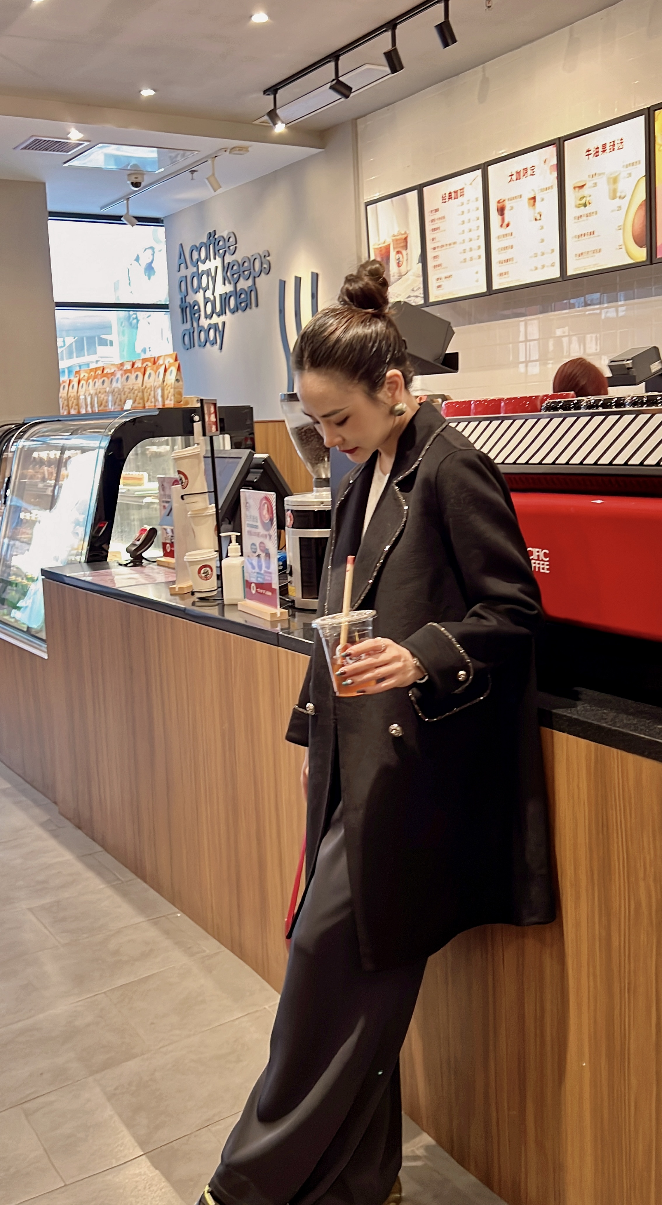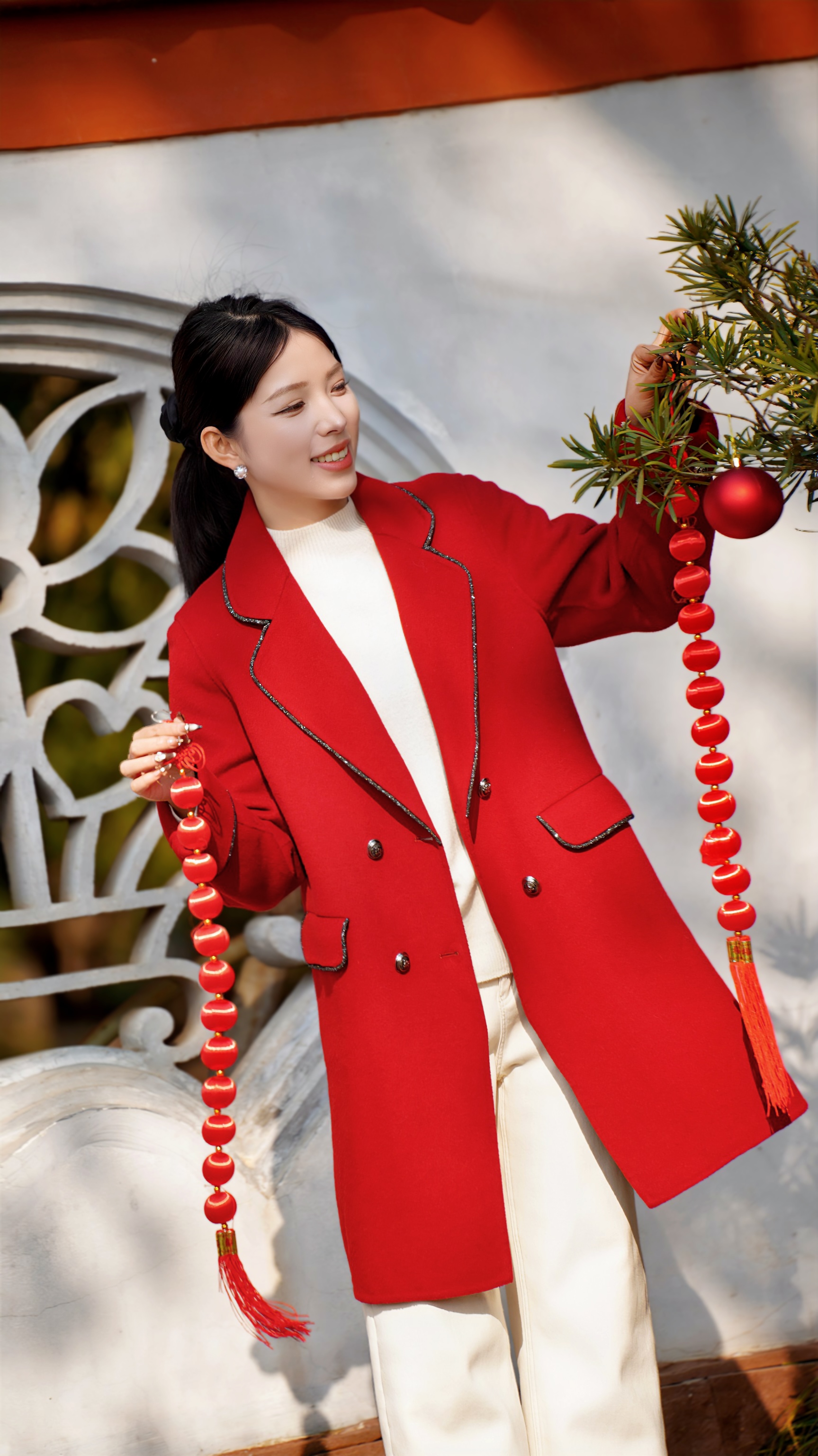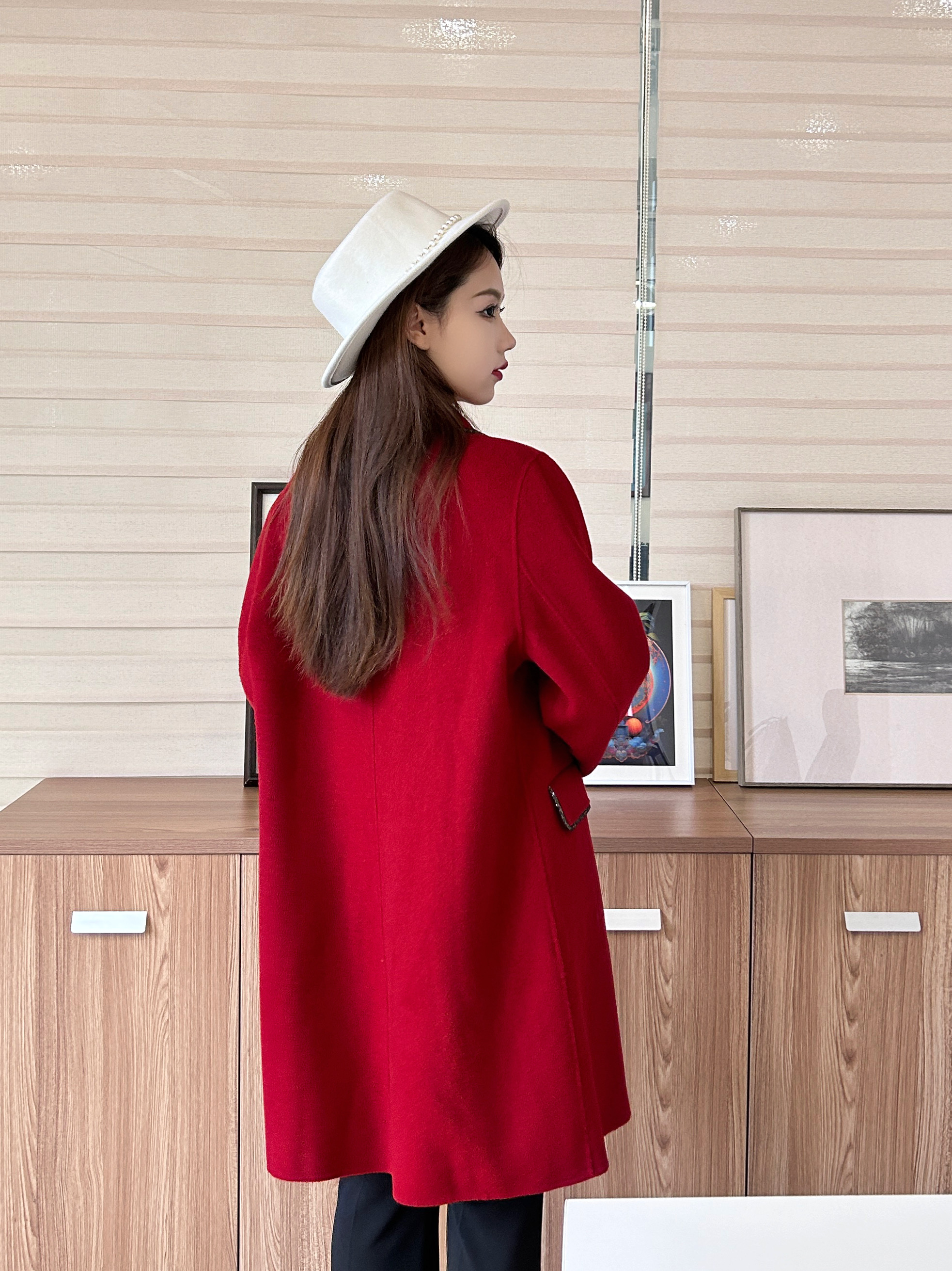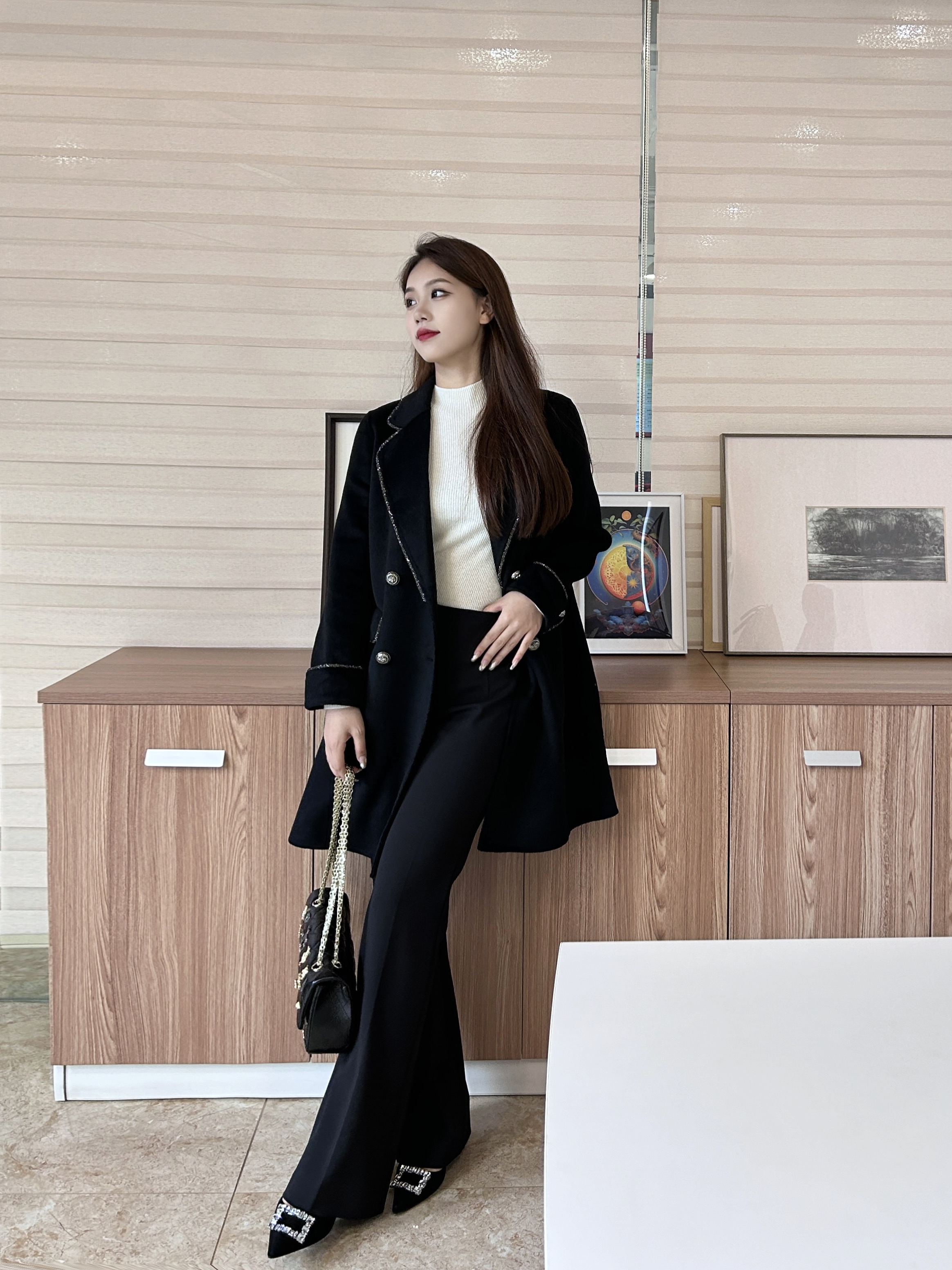 门襟复古双排扣的设计,穿脱方便,袖扣翻边开衩,