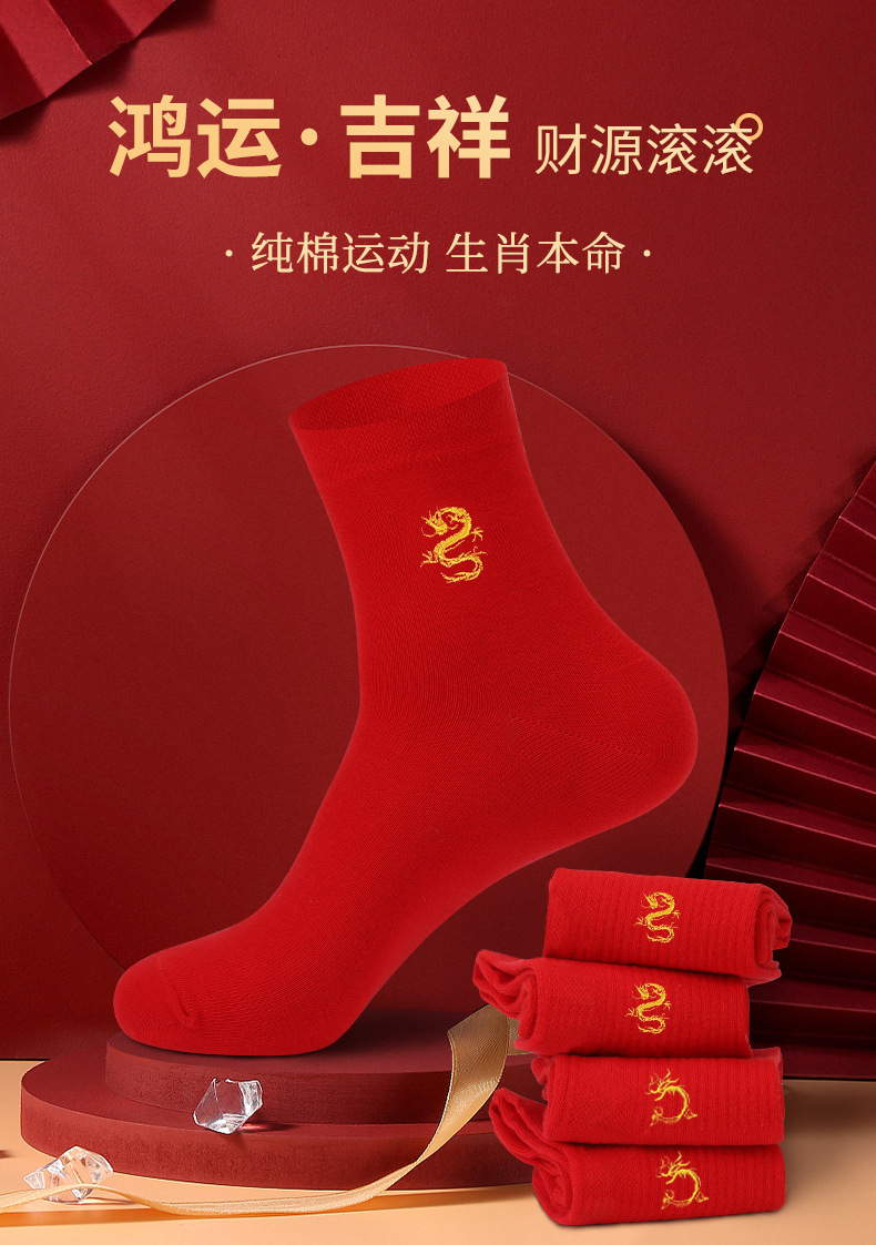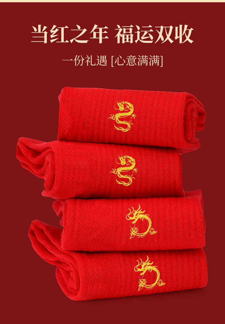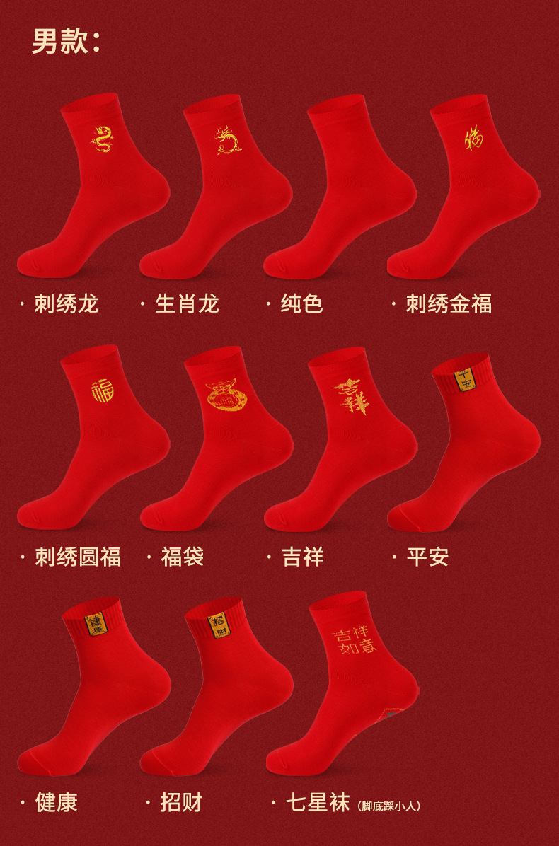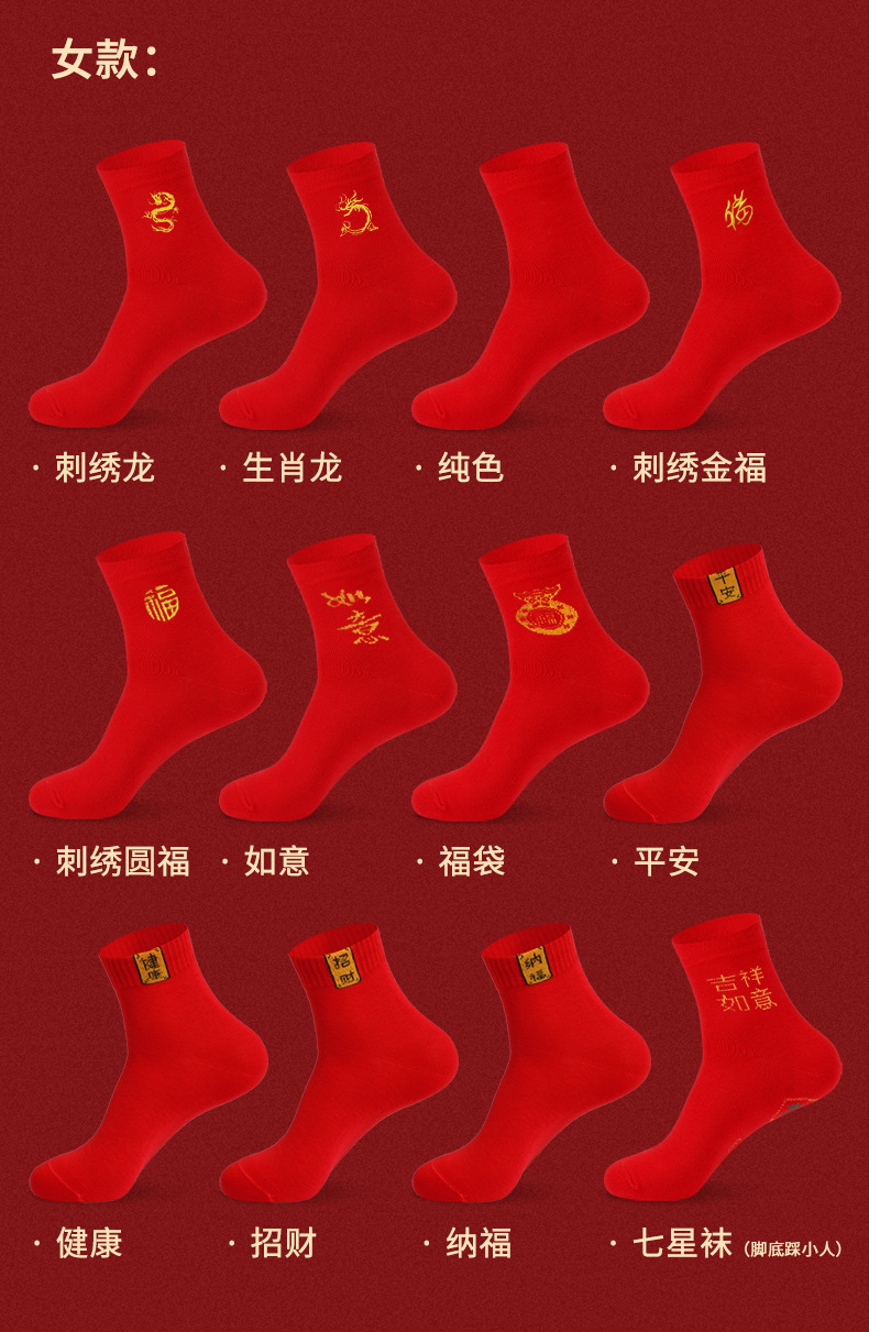浪莎本命年红袜子女属龙年纯棉秋冬季中筒袜结婚情侣红色男士礼物 心选到家