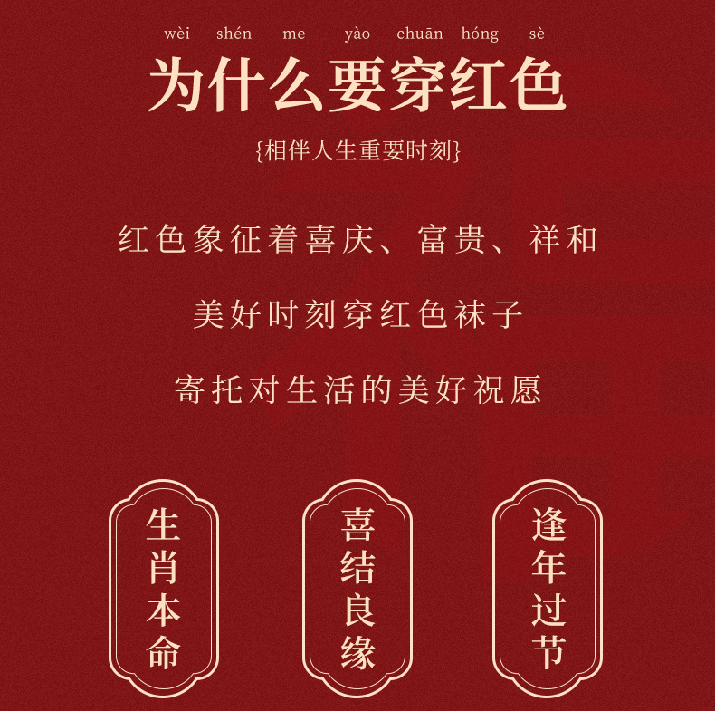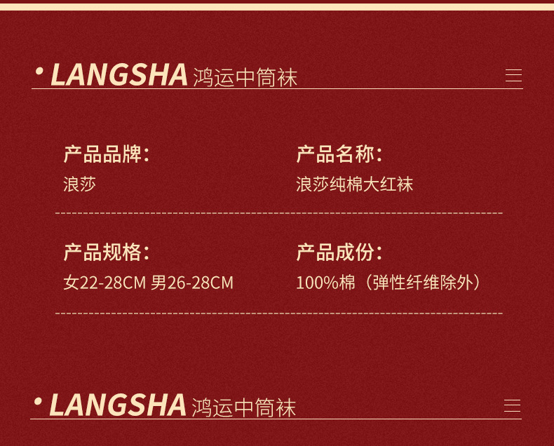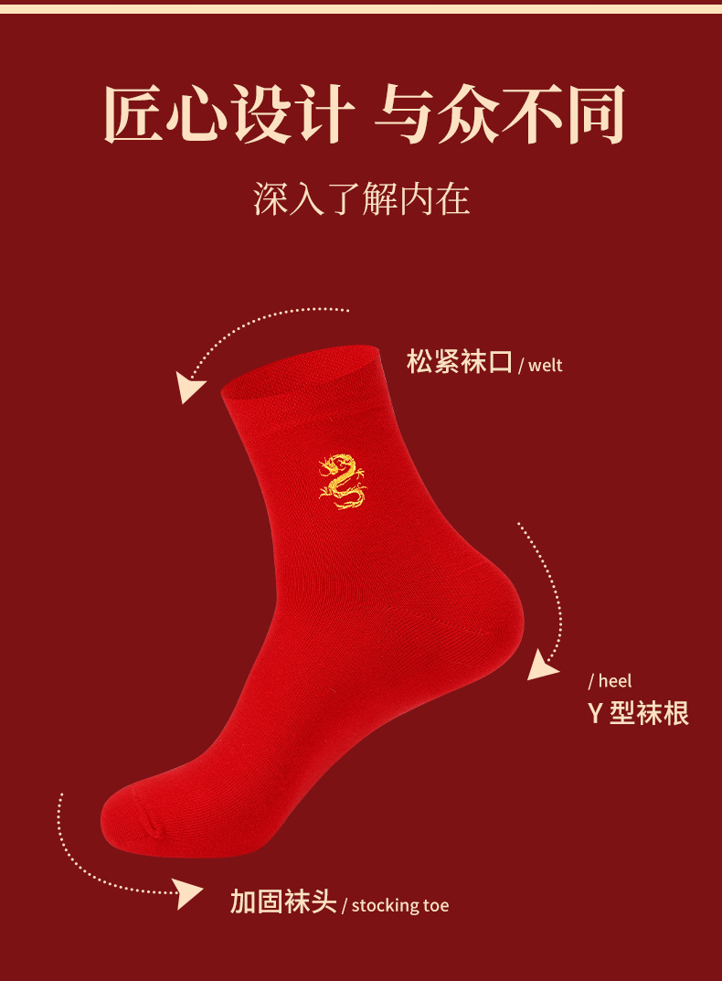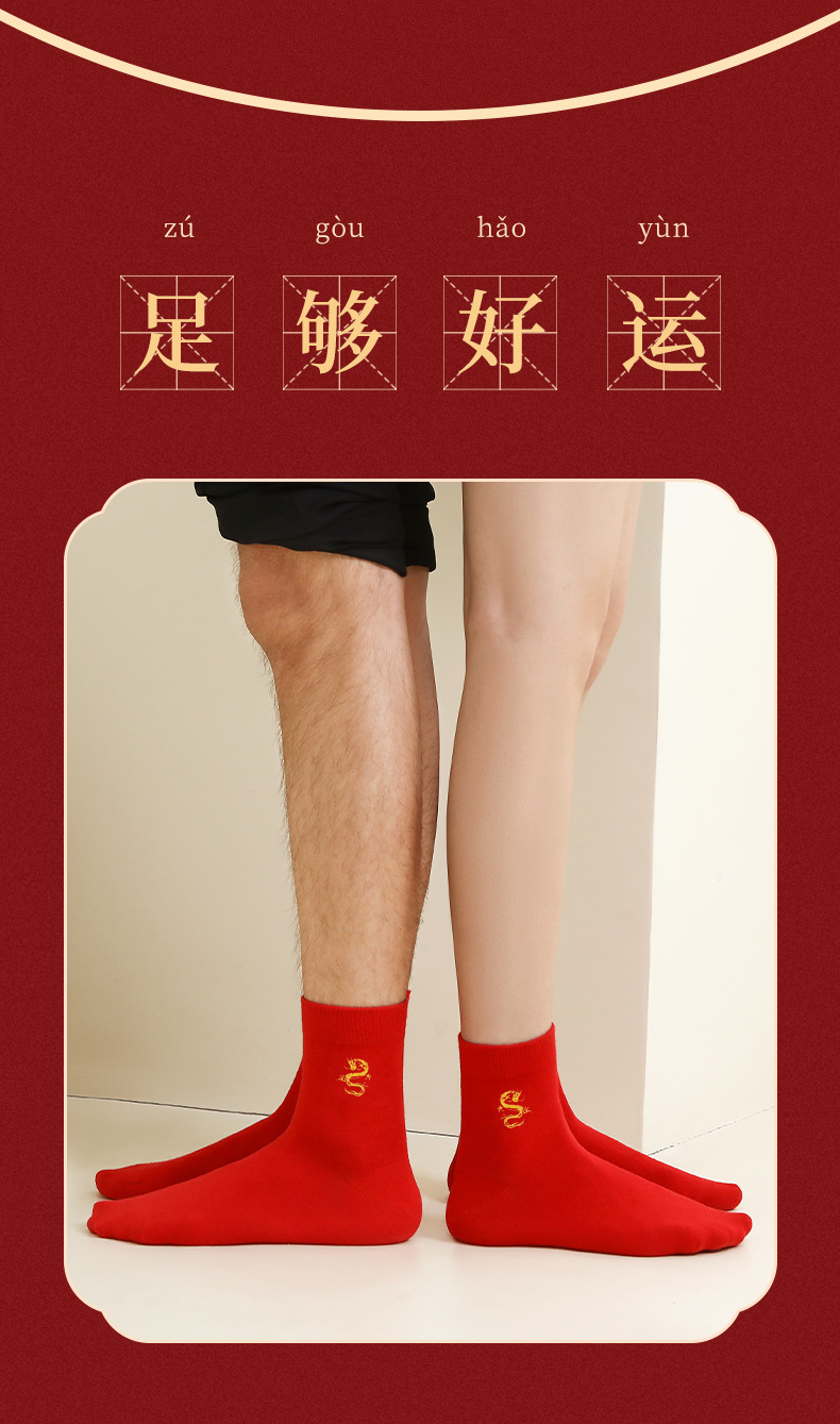 浪莎本命年红袜子女属龙年纯棉秋冬季中筒袜结婚情侣红色男士礼物 心选到家
