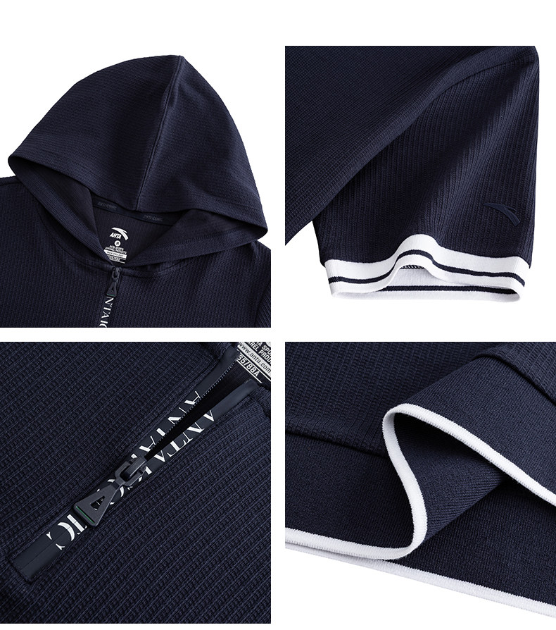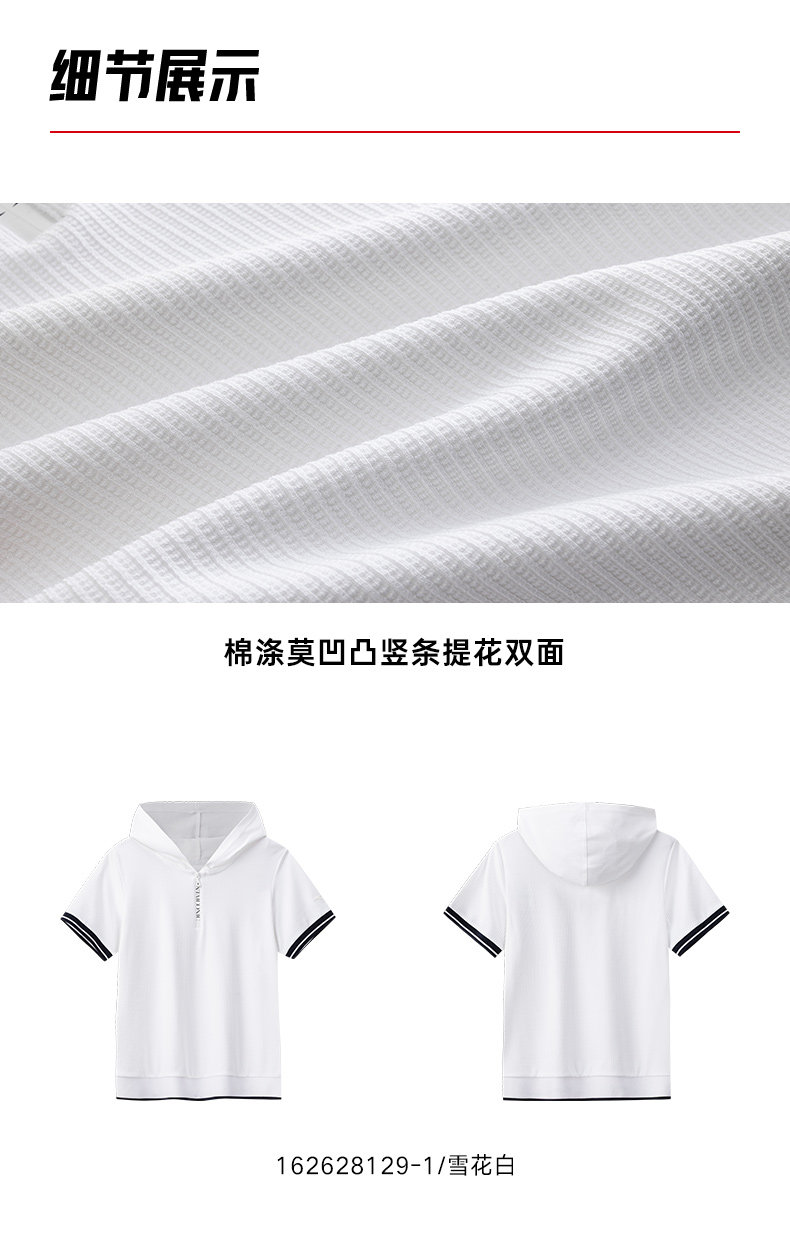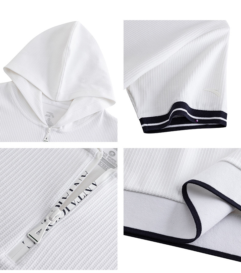 安踏莫代尔亲肤连帽短袖女夏季通勤时尚半拉链休闲短袖162628129