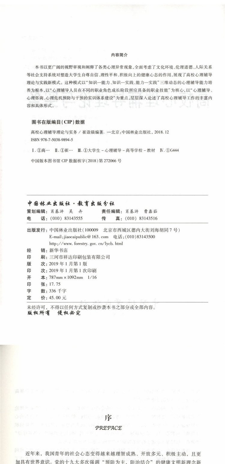 高校心理辅导理论与实务 崔诣晨 编著 9894 中国林业出版社