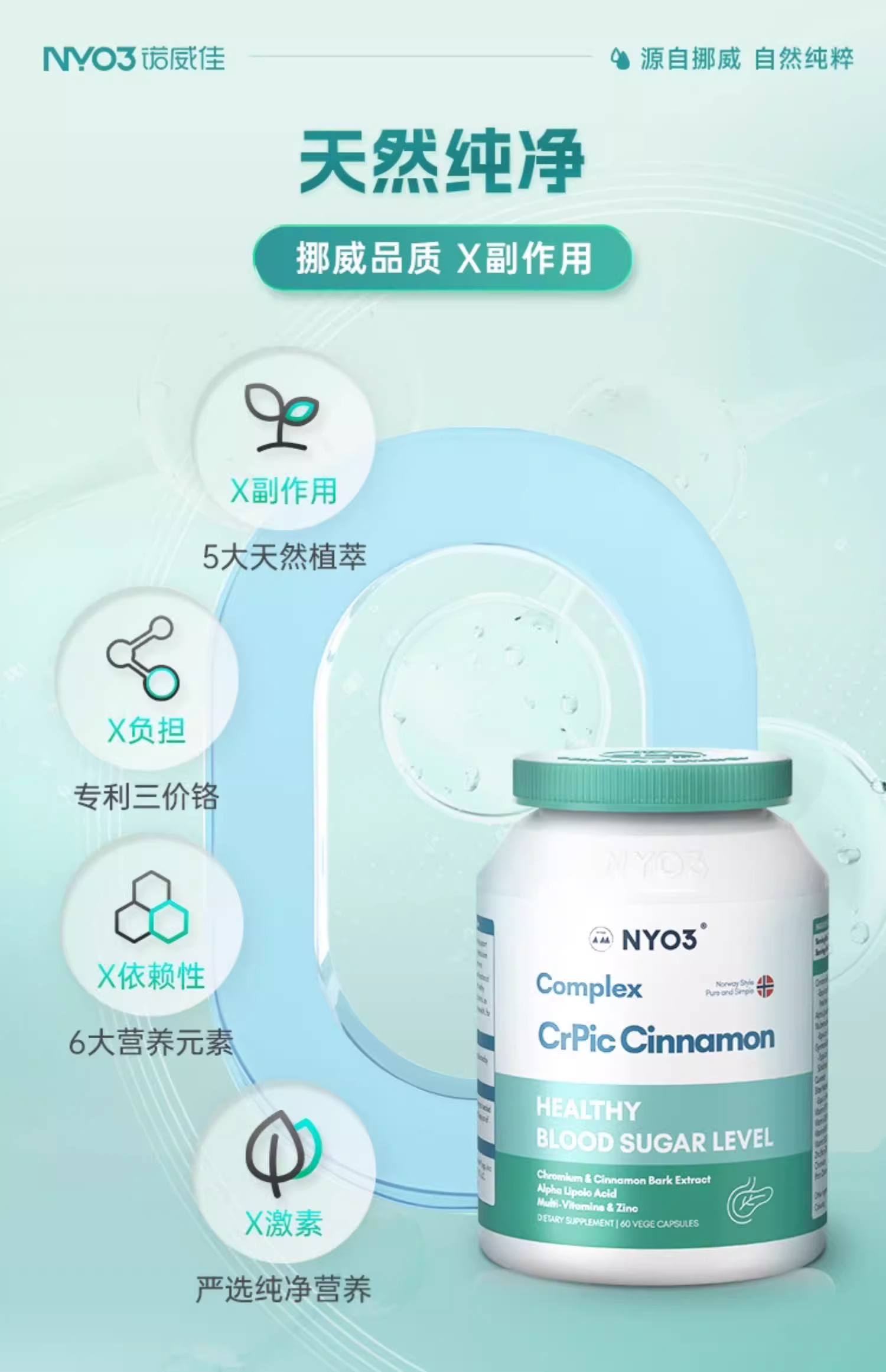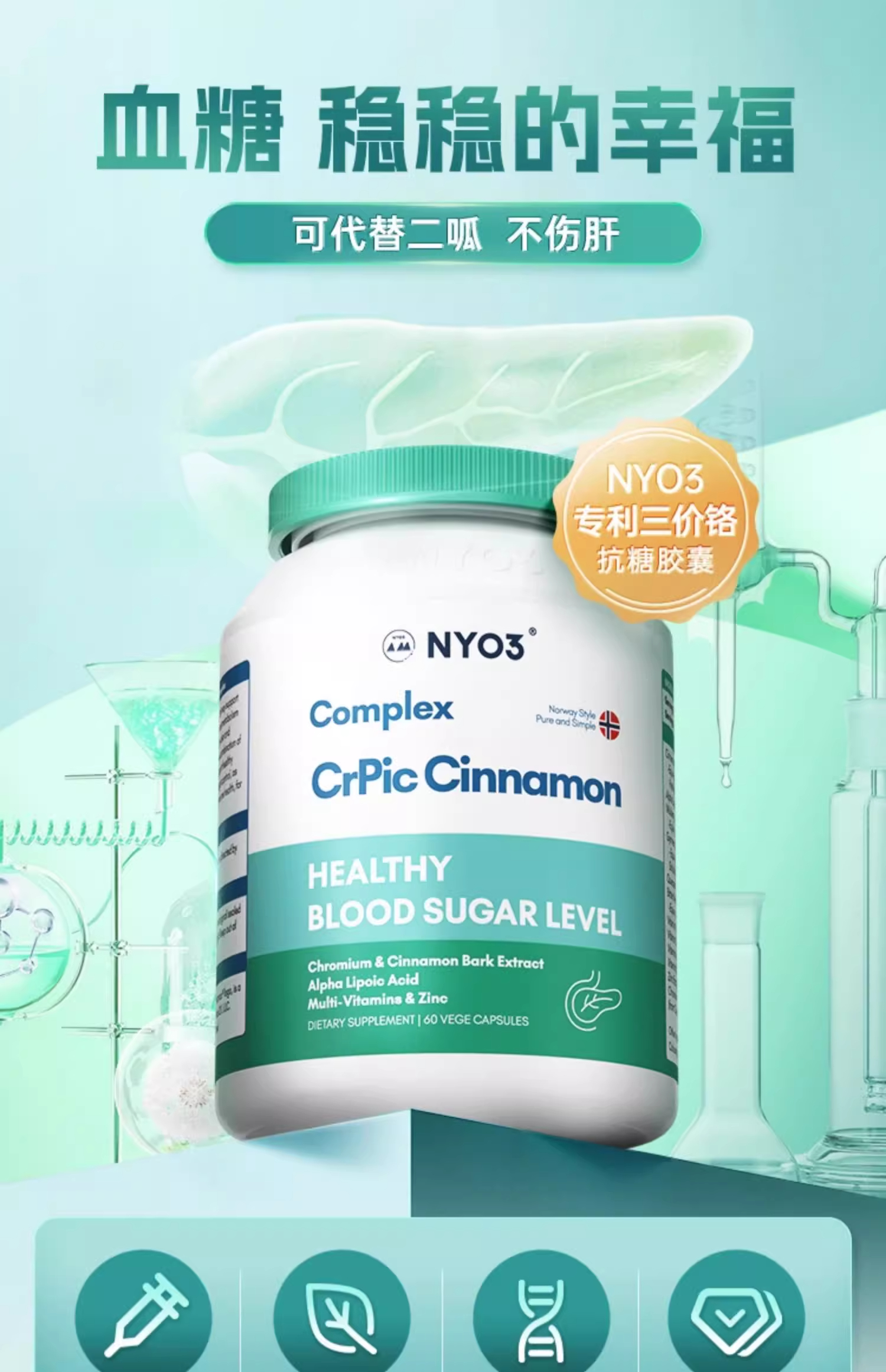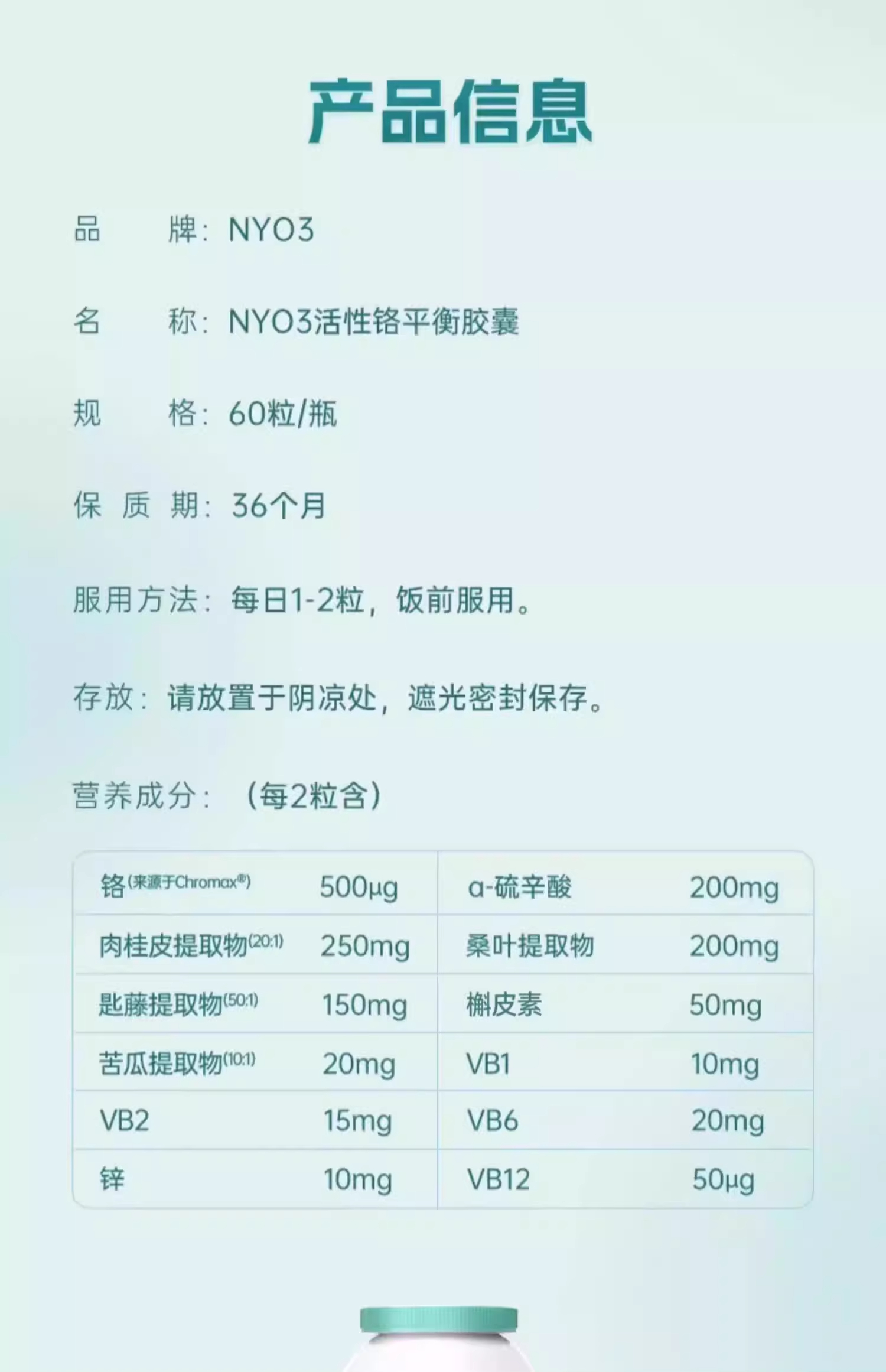 【跨境】NYO3血糖平胶囊铬元素吡啶甲酸铬三价铬口服胰素苦瓜素非皂苷60粒