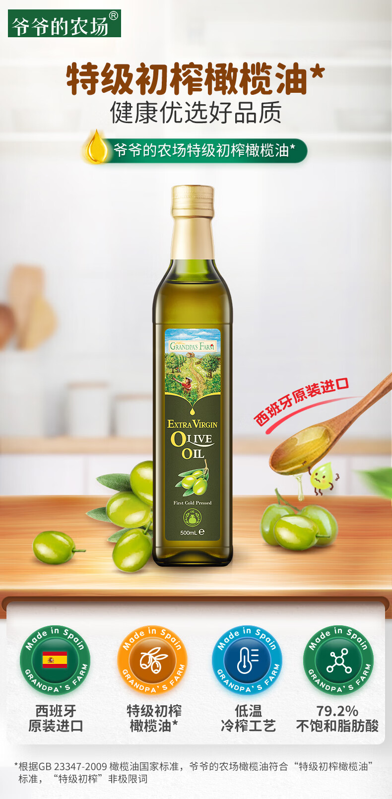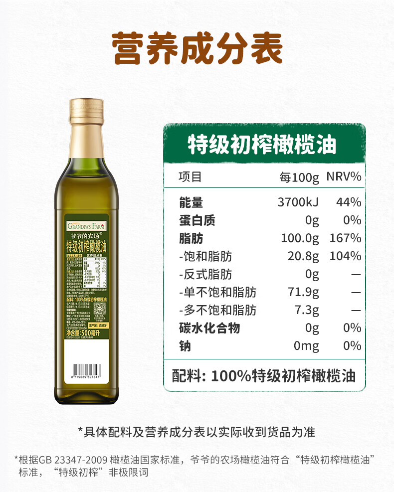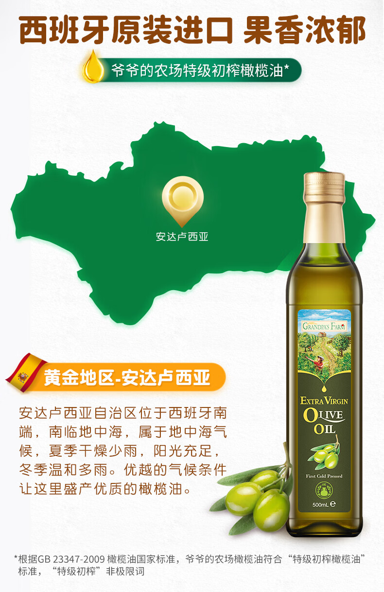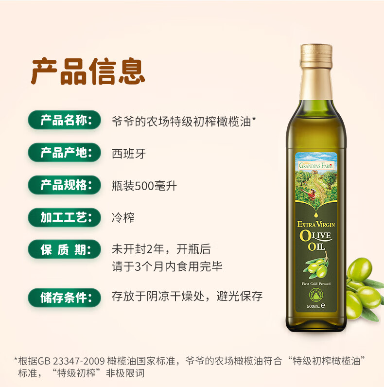 爷爷的农场GF西班牙进口特级初榨橄榄油500ml
