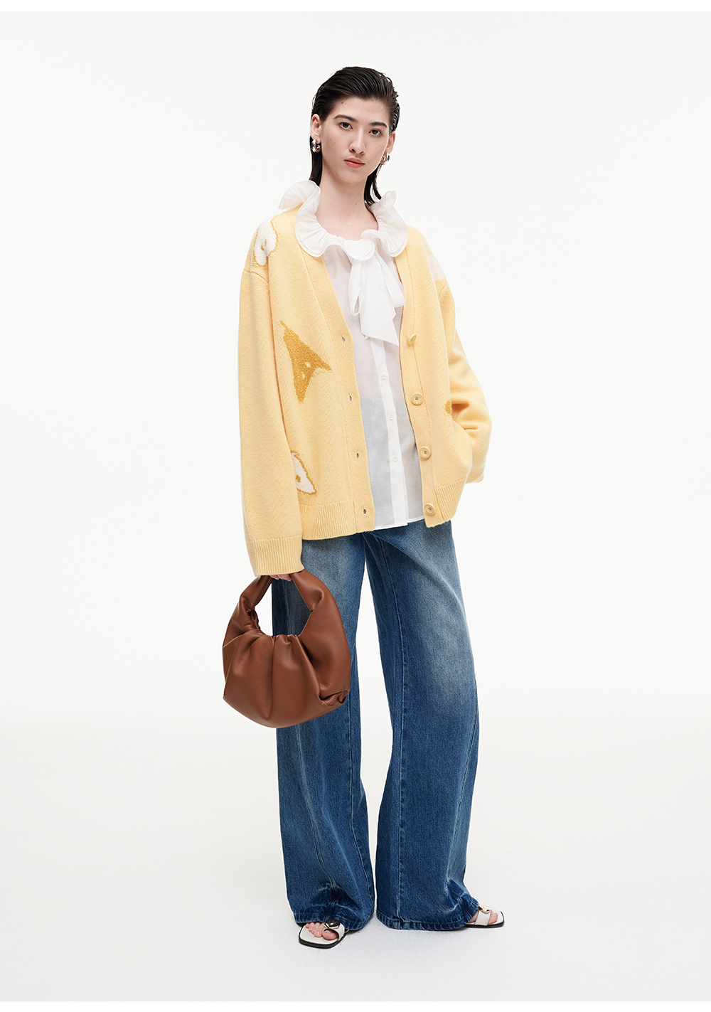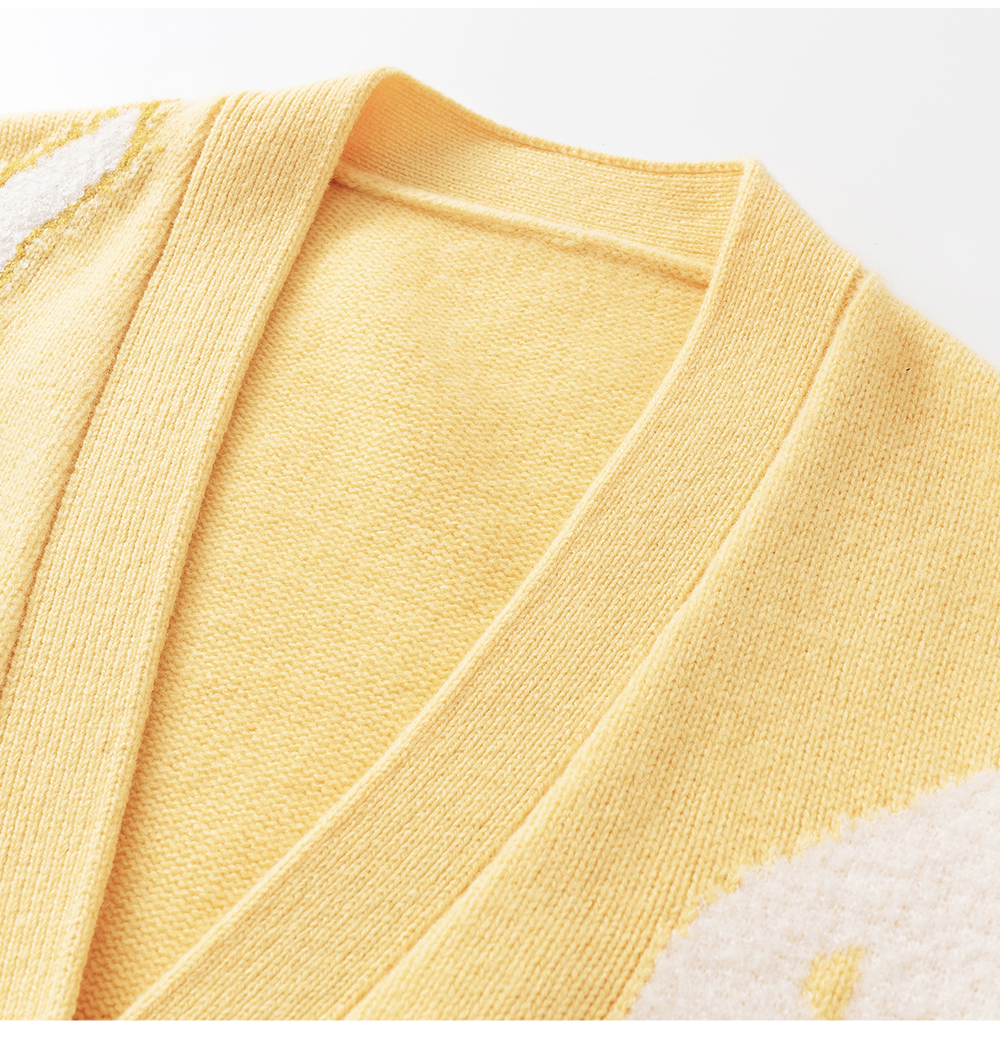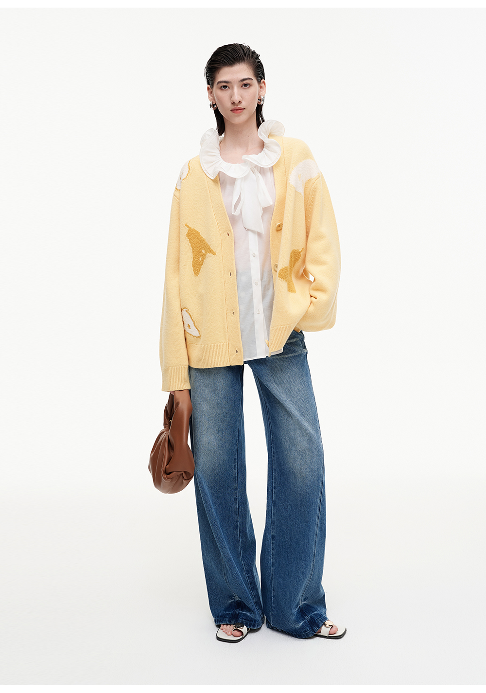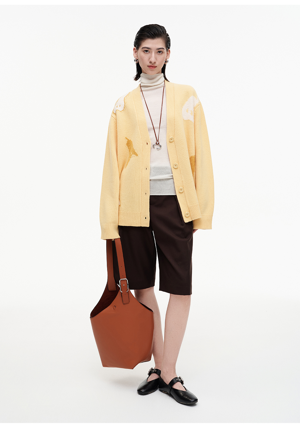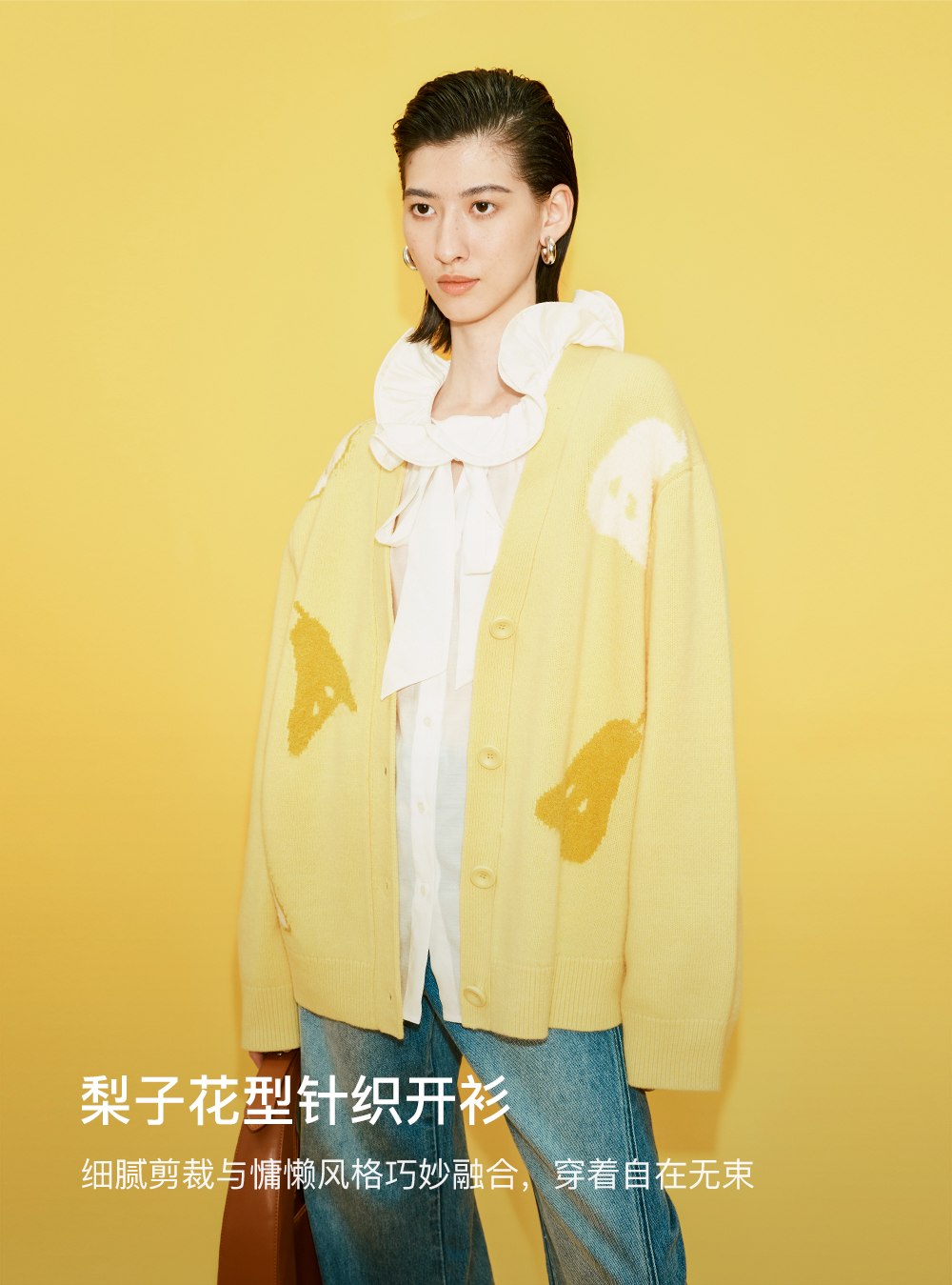SELFWHO羊毛混纺梨子花型针织开衫女2025秋季新款V领保暖毛衣外套