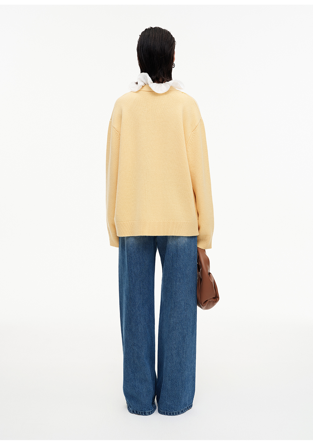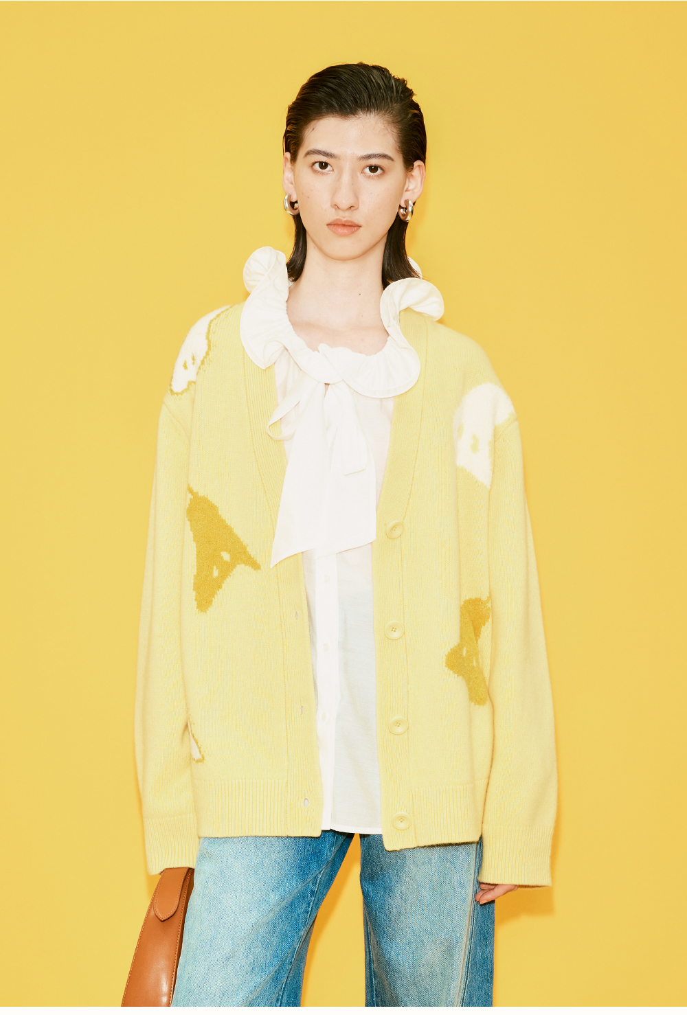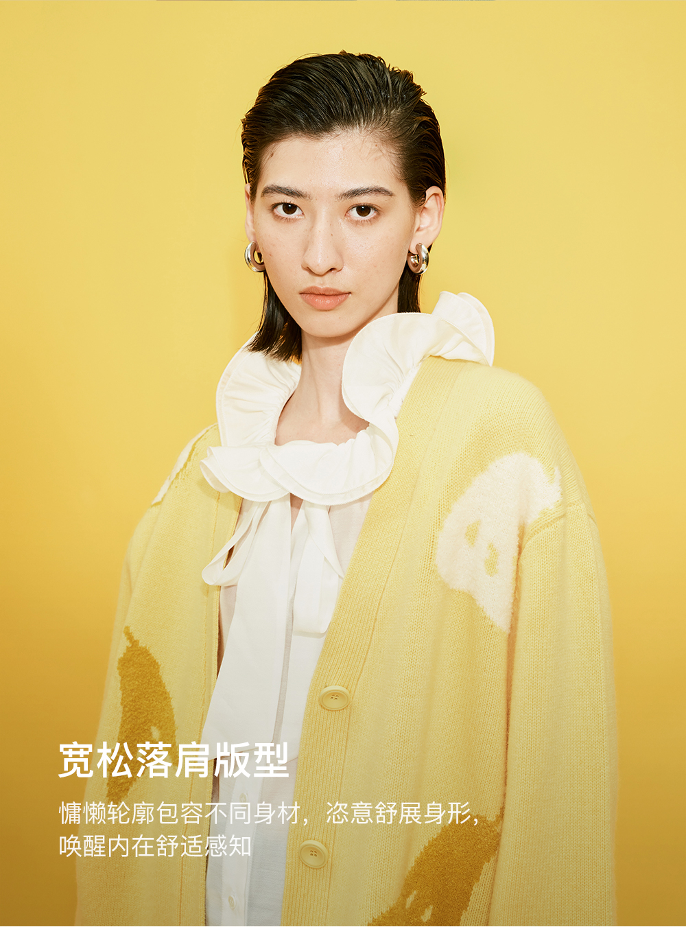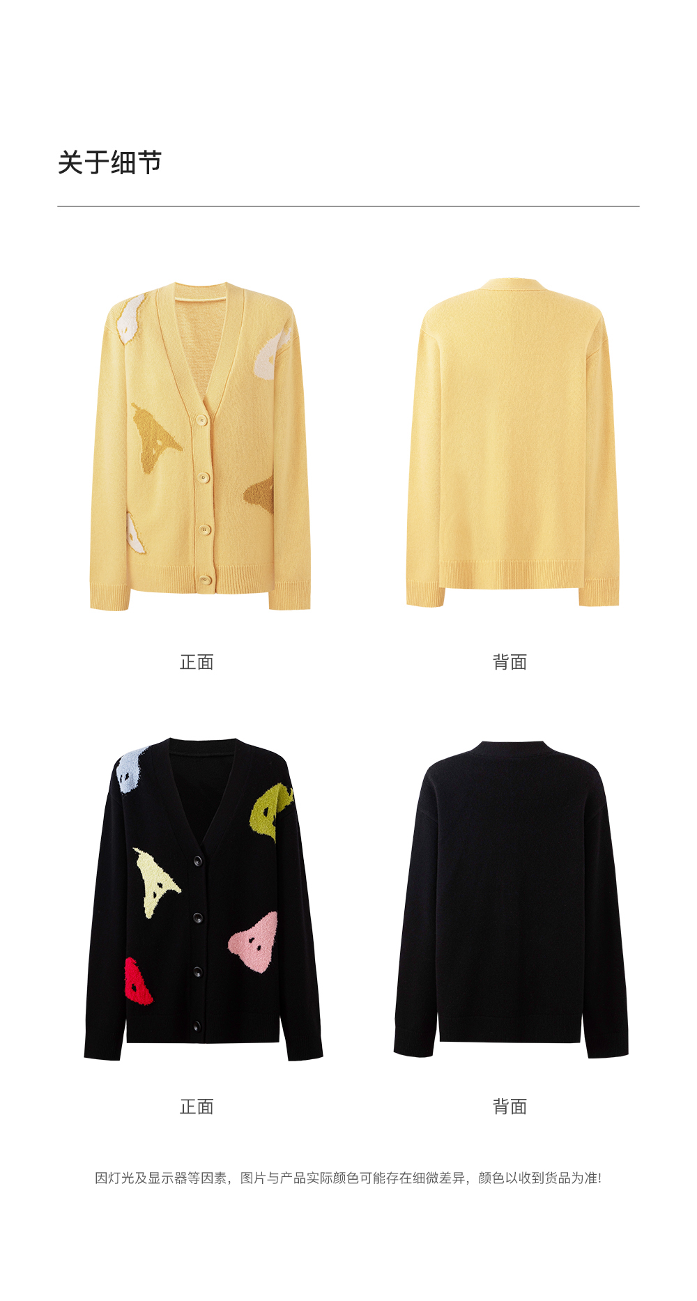 SELFWHO羊毛混纺梨子花型针织开衫女2025秋季新款V领保暖毛衣外套