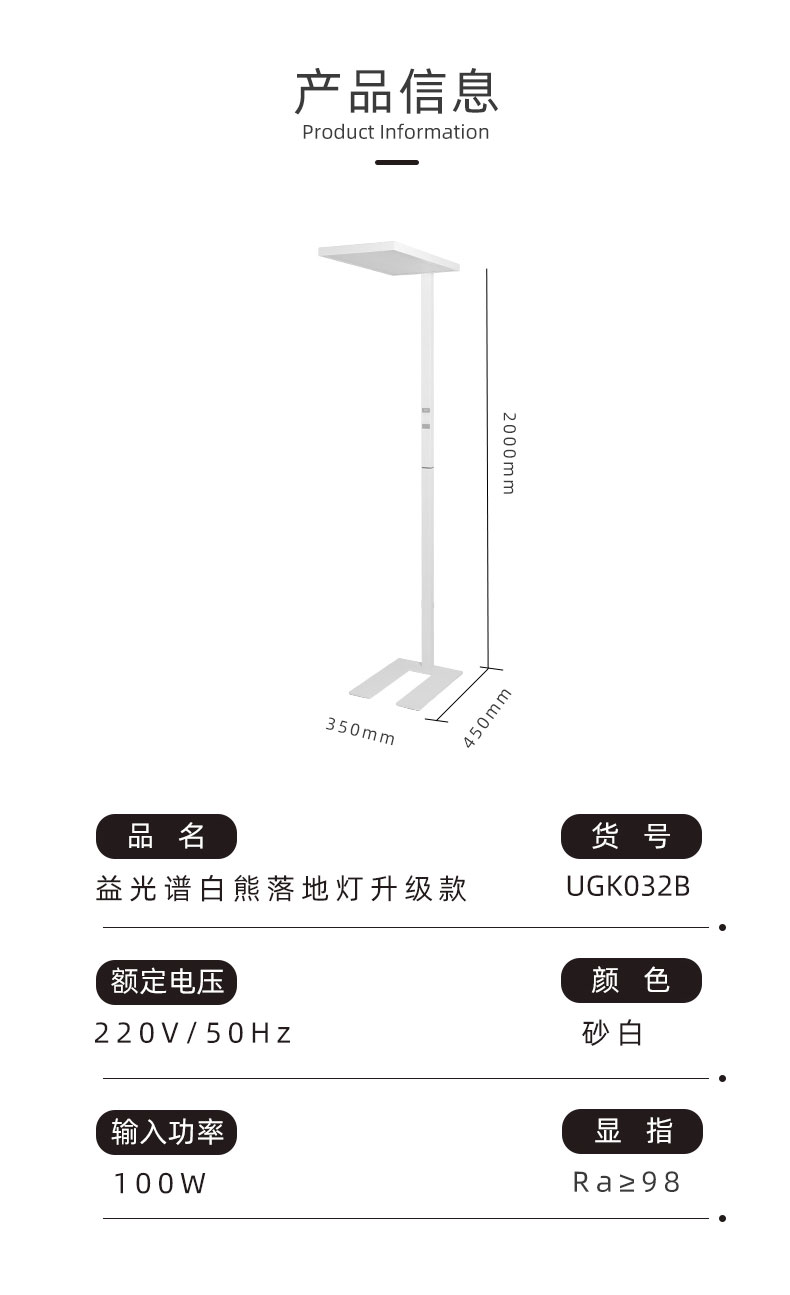 贝发知乐 益光谱白熊落地灯红光版学习灯 双面发光大路灯