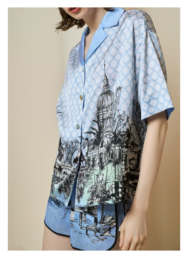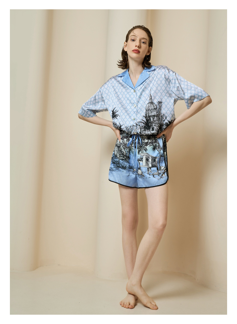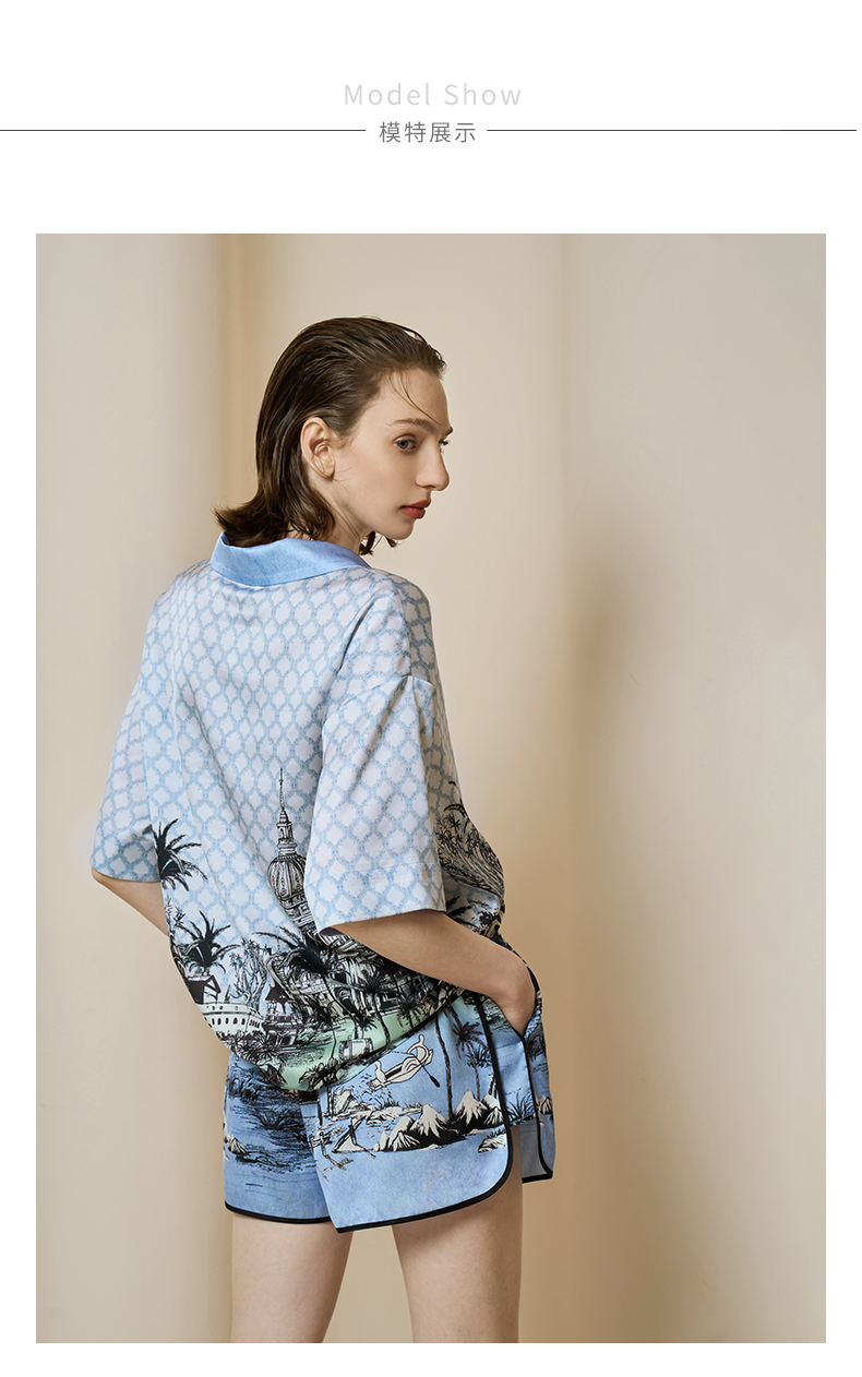 Solo seta22姆米真丝睡衣套装女桑蚕丝家居服短袖短裤秋冬
