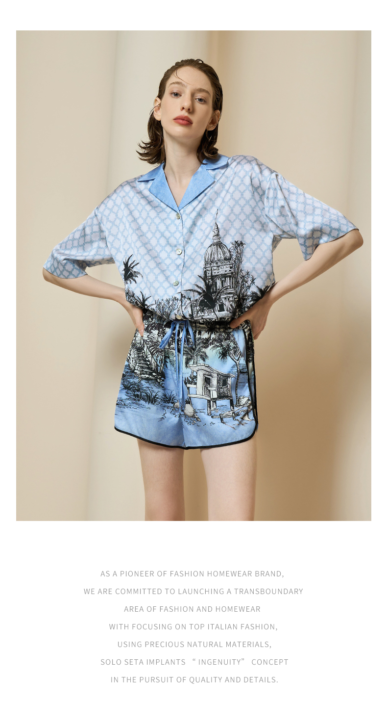 - soloseta专注于真丝织物,灵感源自意大利语,中文含义为“只做真丝”的意思。让睡衣变时尚,居家和外出瞬间切换,使其更具有出街,度假,参加宴会等功能。