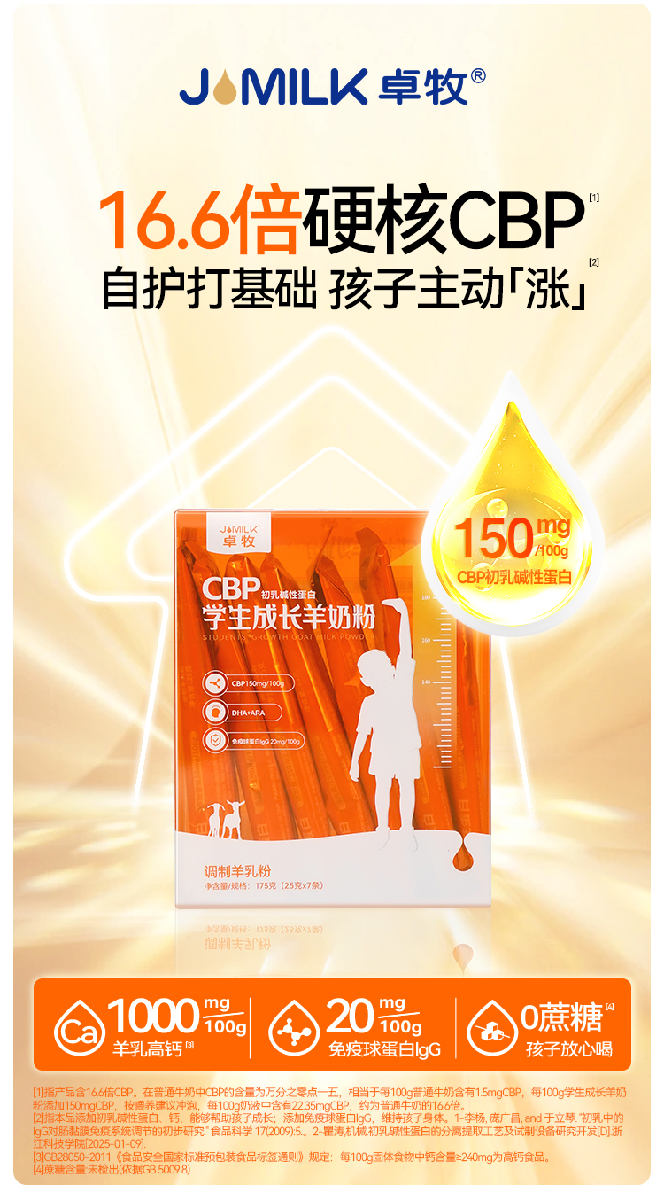【内购专享系列】卓牧CBP学生成长羊奶粉750g/罐(30条)