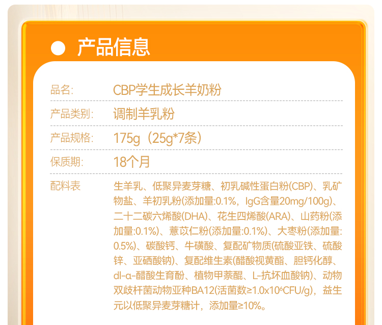 卓牧CBP学生成长羊奶粉小橙盒 175g*6盒