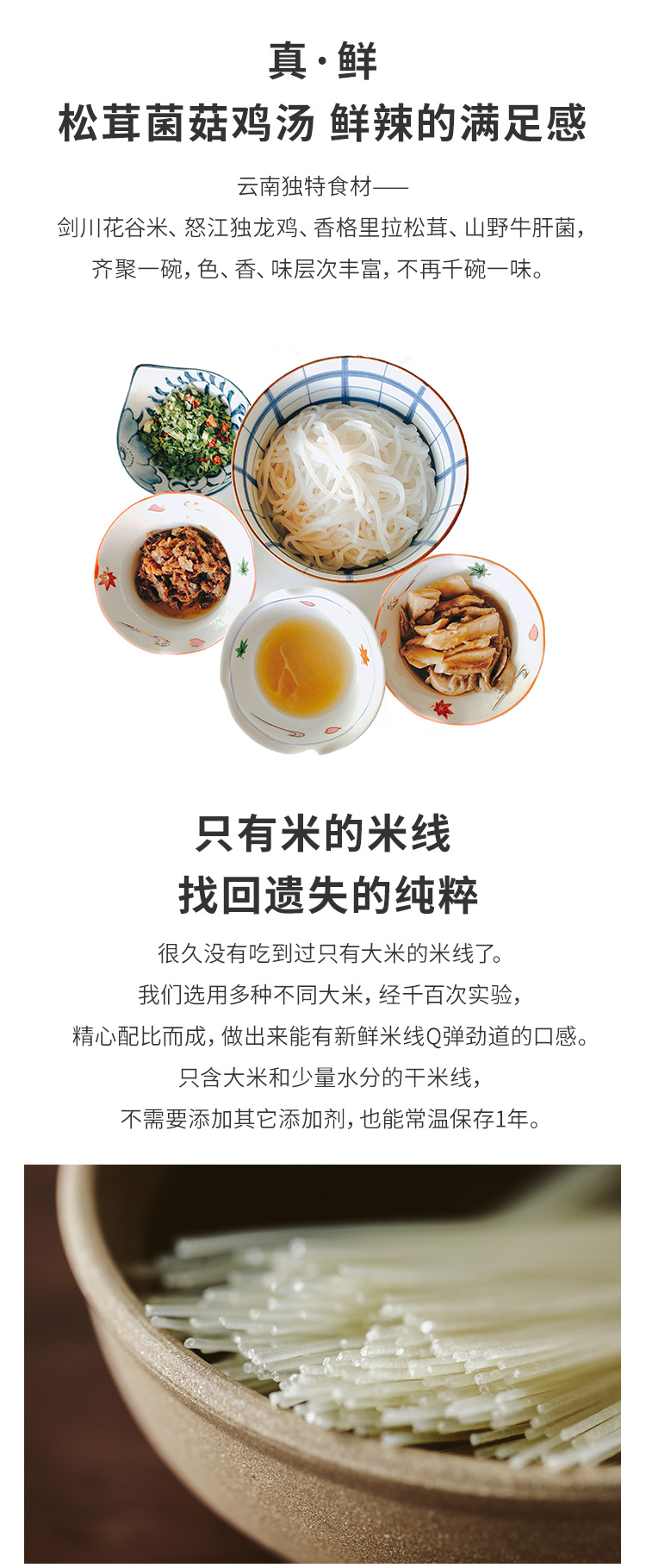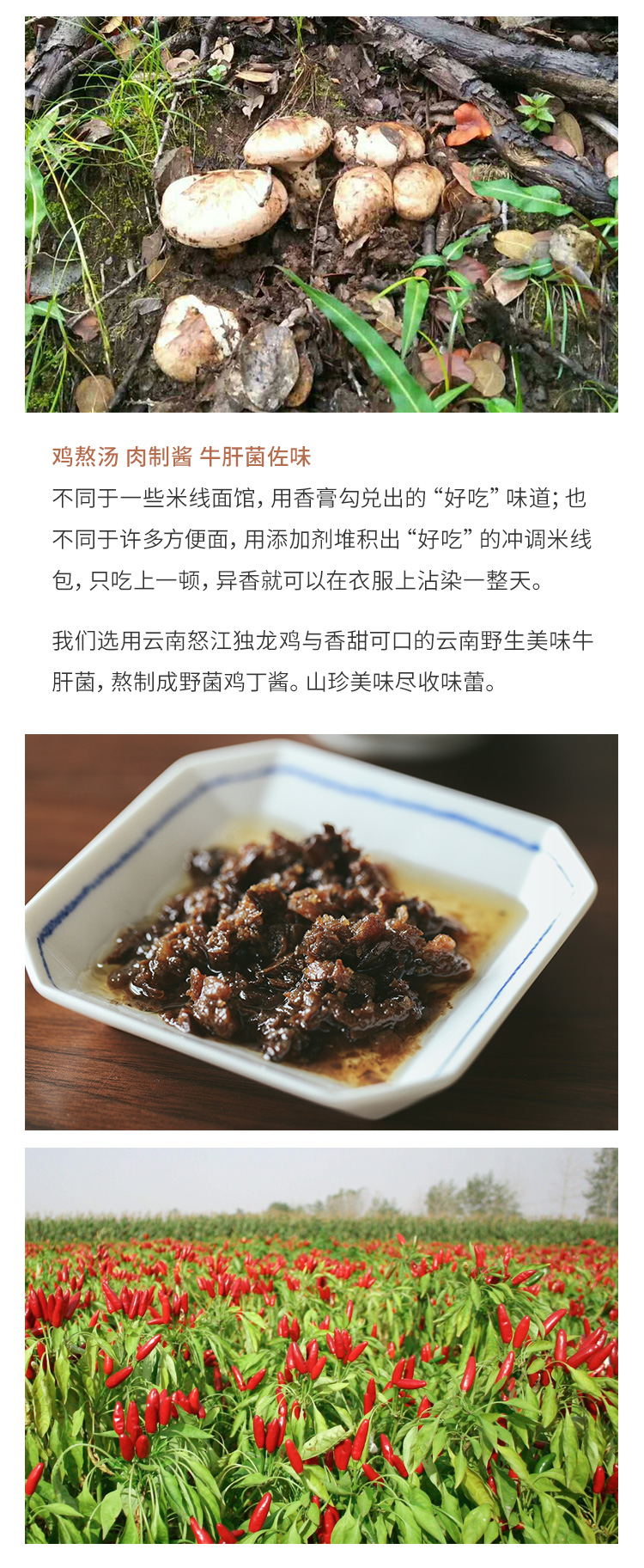 【品名】食味的初相云南松茸鸡汤米线 【规格】209g/盒 【保质期】365天 【储存方法】请置于阴凉干燥处,避免阳光直射 【产地】云南 【发货地】云南/河南 【发货快递】三通一达 【不发货区域】新疆,西藏,港澳台地区不发 【发货时效】48小时,节假日顺延 |