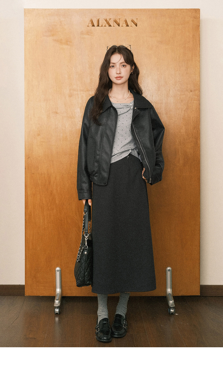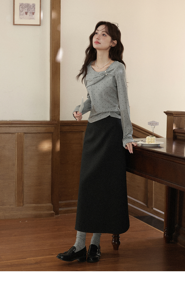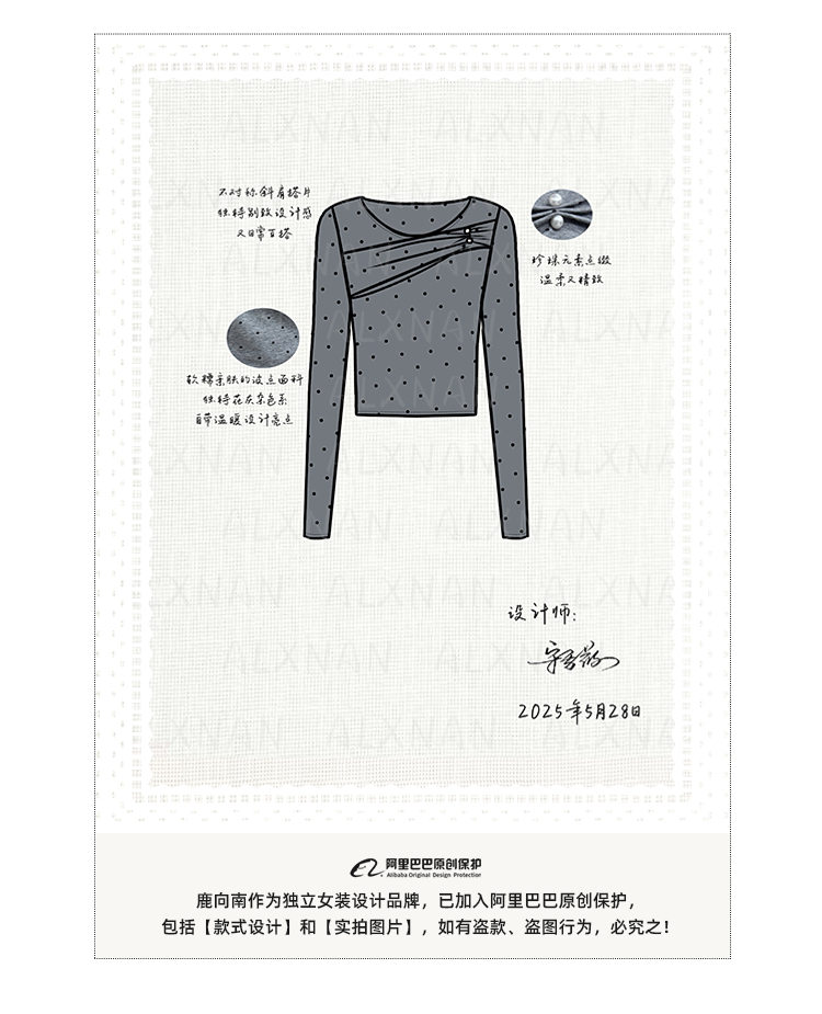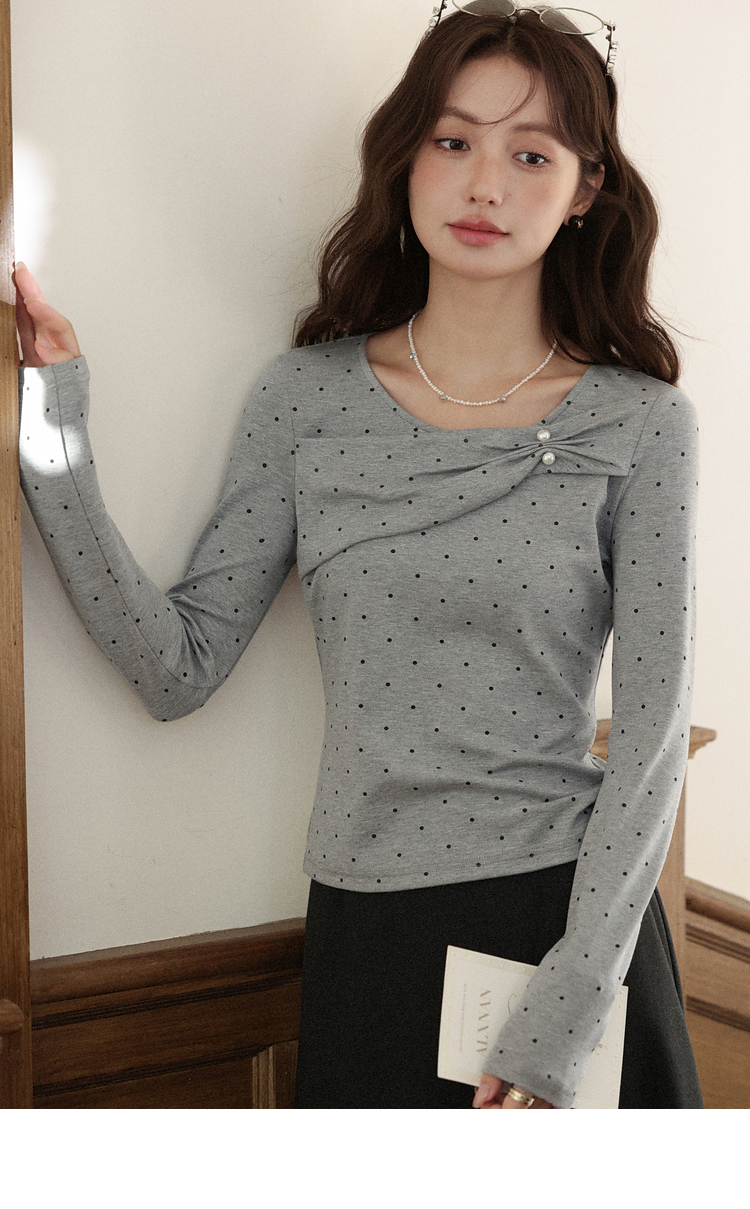 鹿向南「霜糖软云」波点灰色长袖T恤女早秋新款高级法式洋气上衣