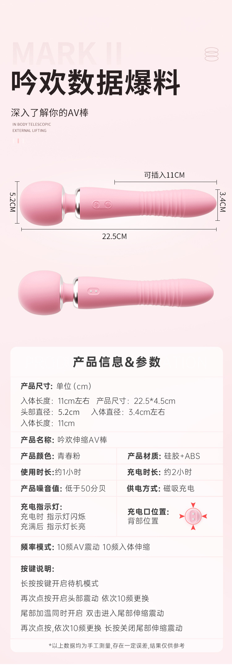 【谜姬】吟欢伸缩AV棒 大头震动尾部伸缩女用自慰情趣成人