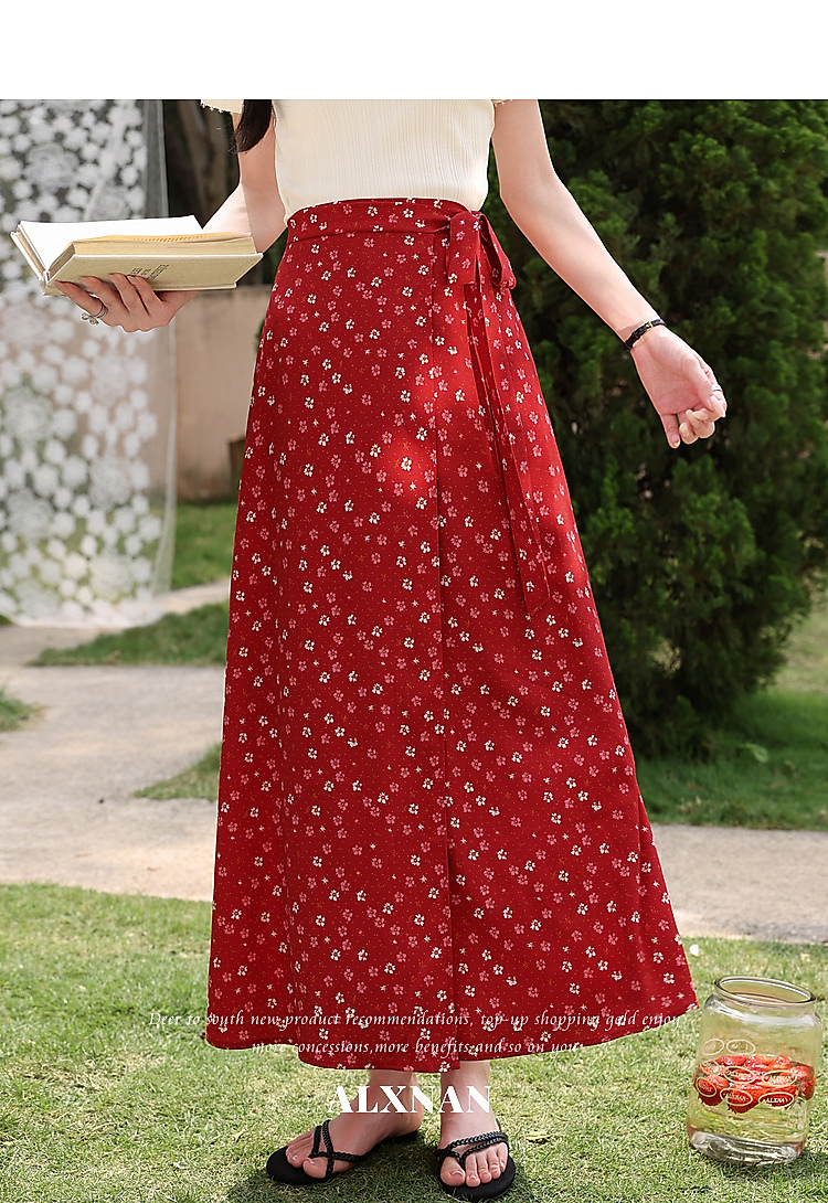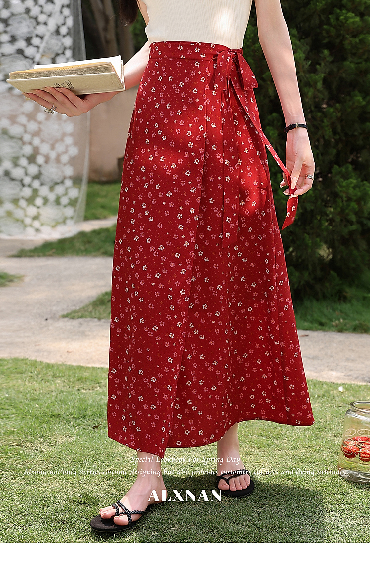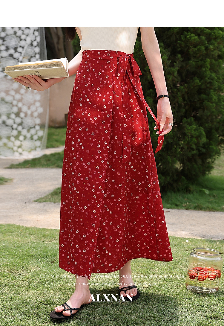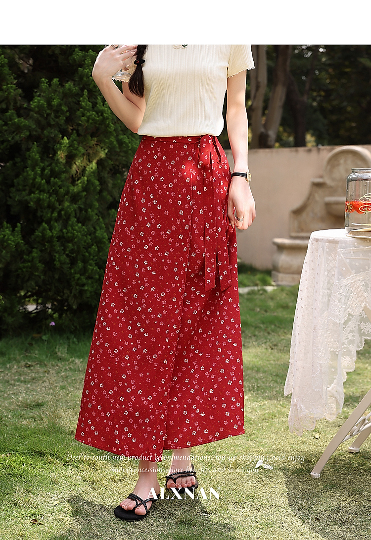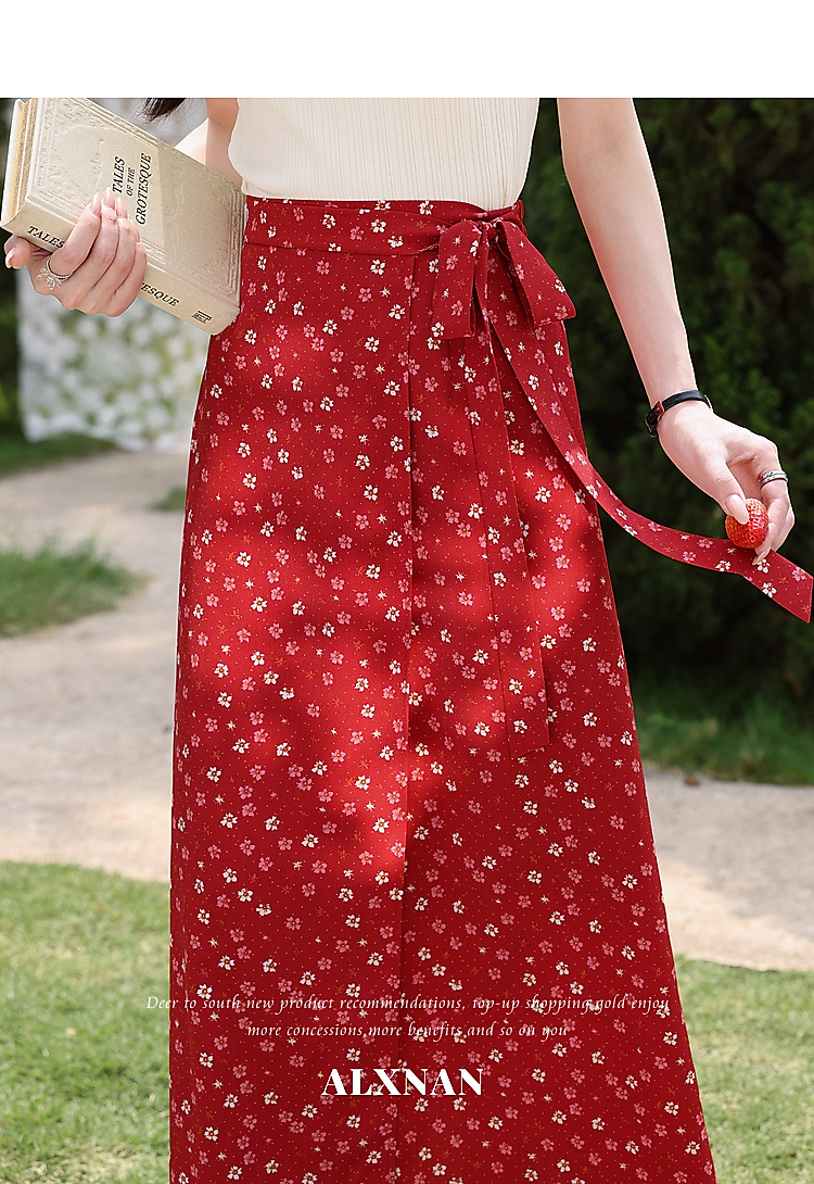 鹿向南【0417/20:00新品前1小时7折限量100件】碎花红色半身裙女