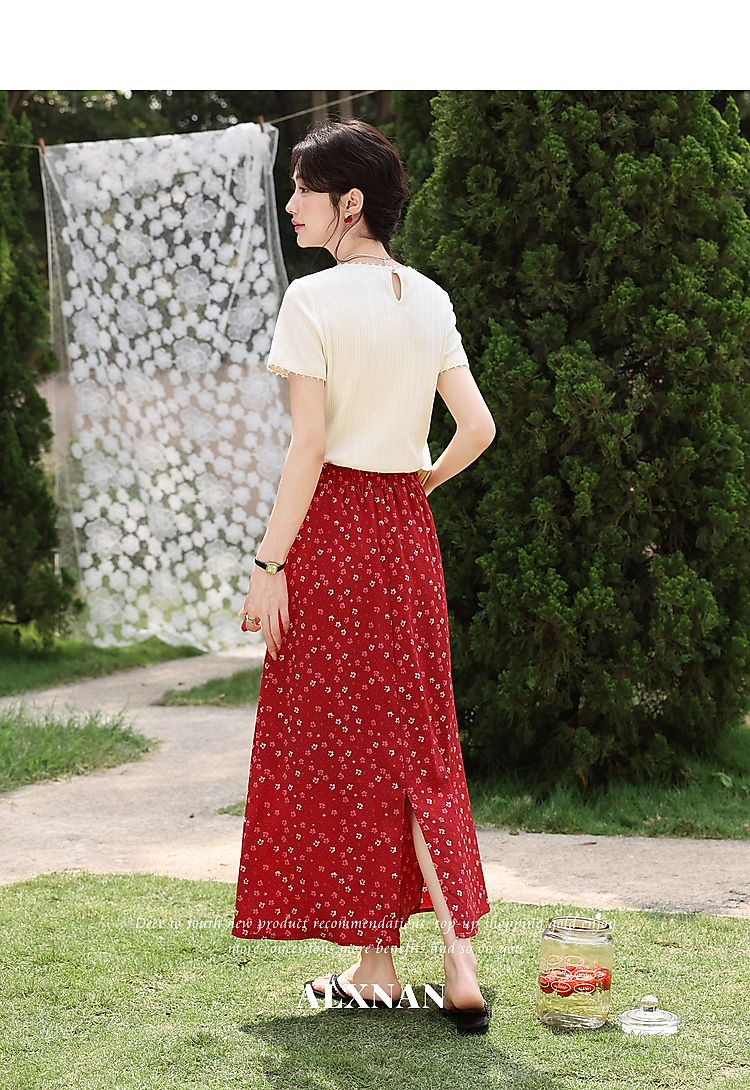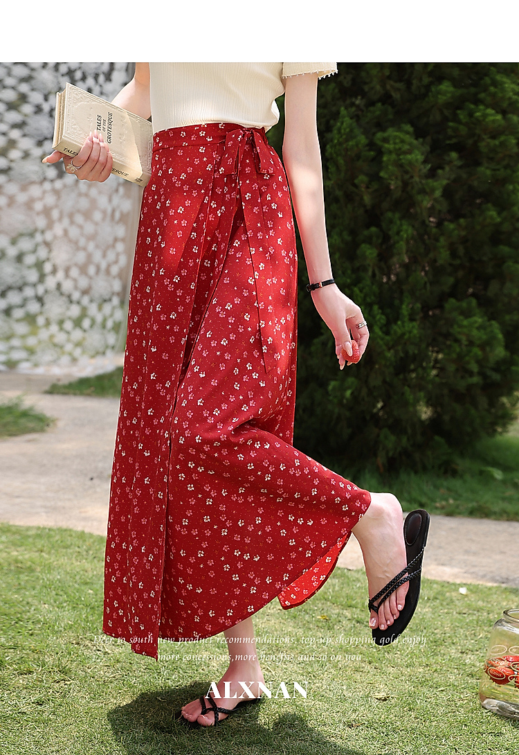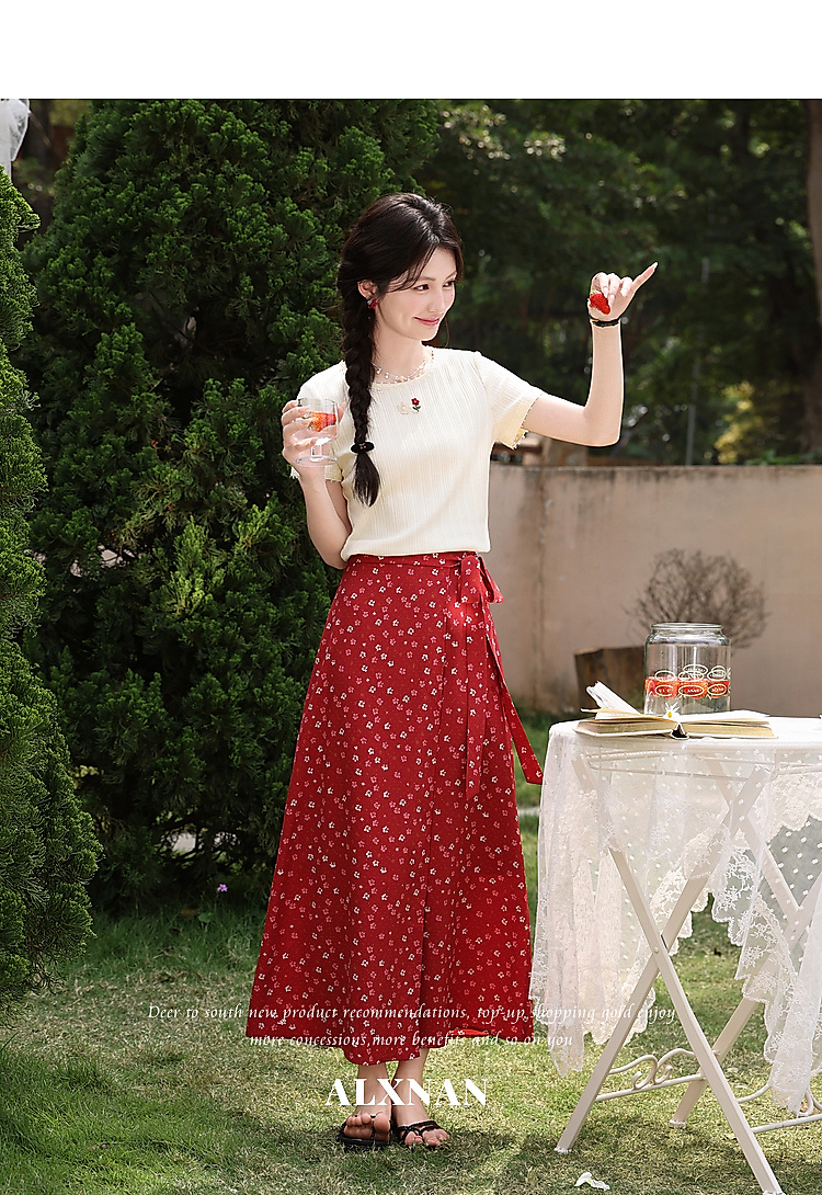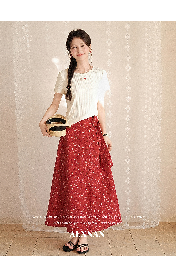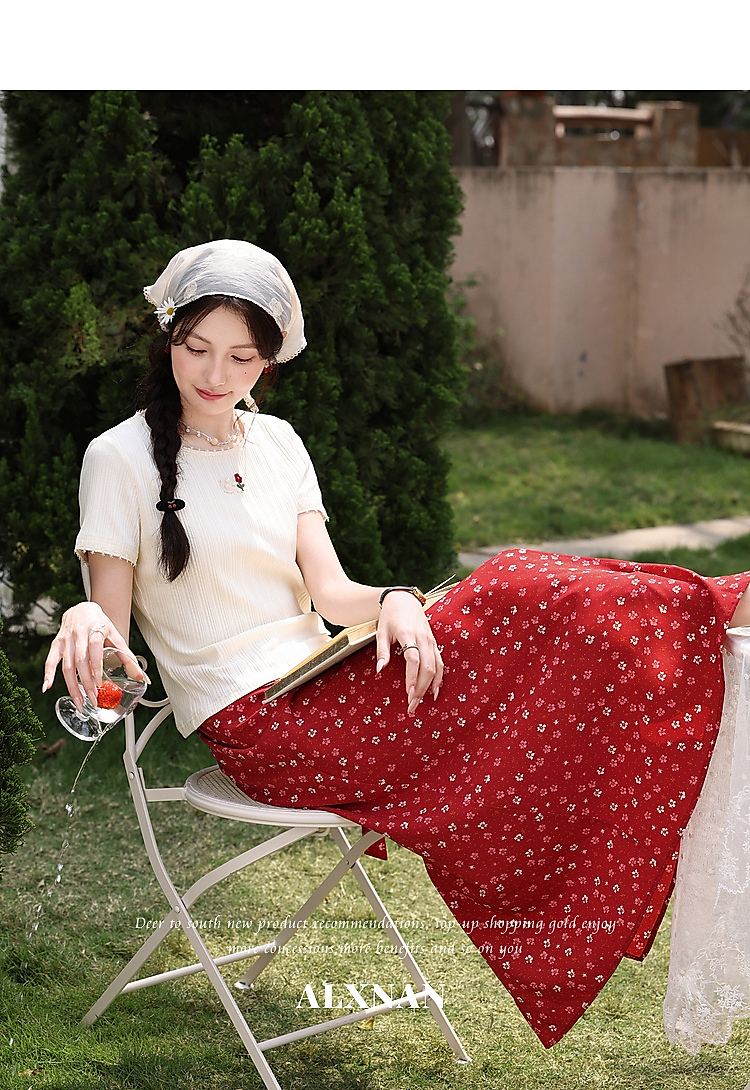 鹿向南【0417/20:00新品前1小时7折限量100件】碎花红色半身裙女