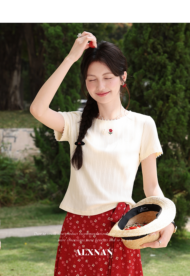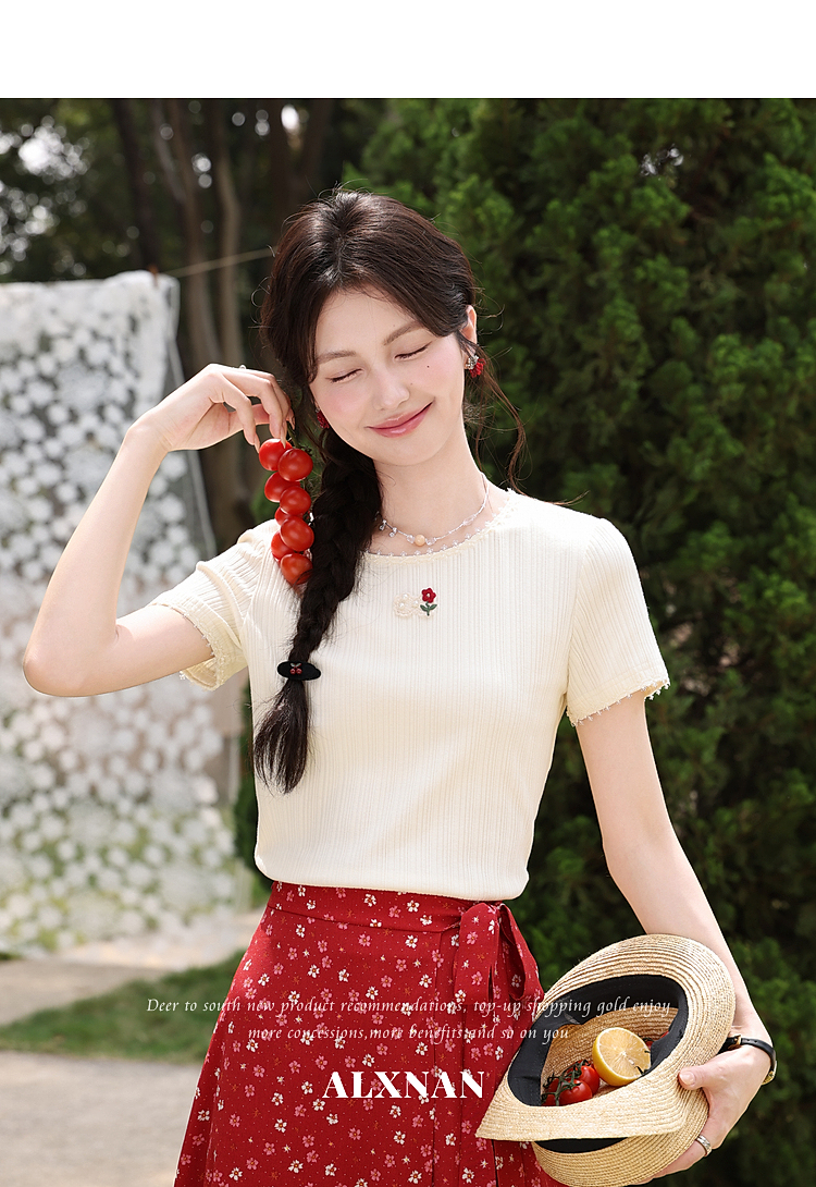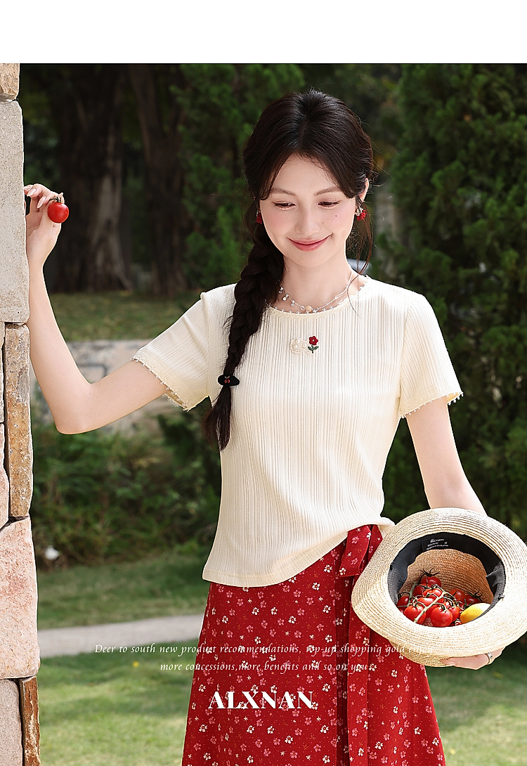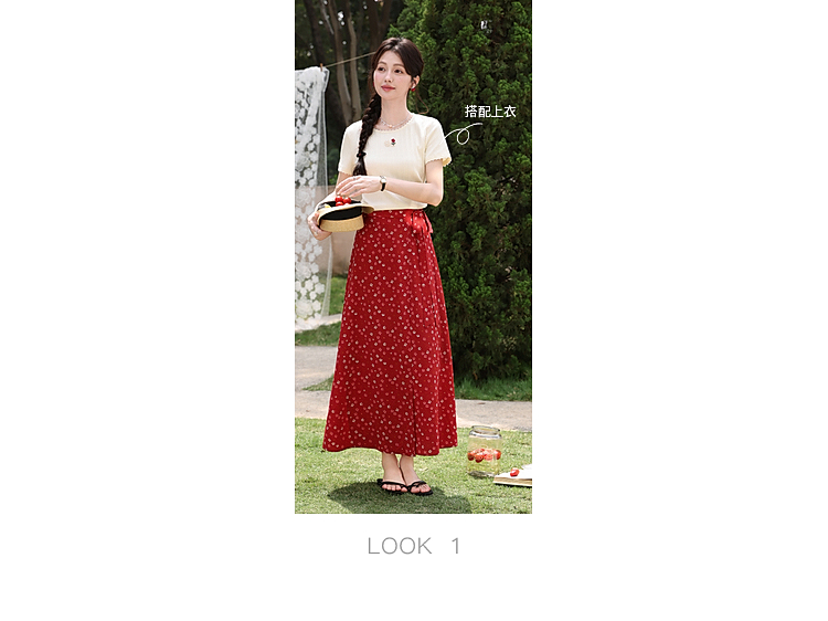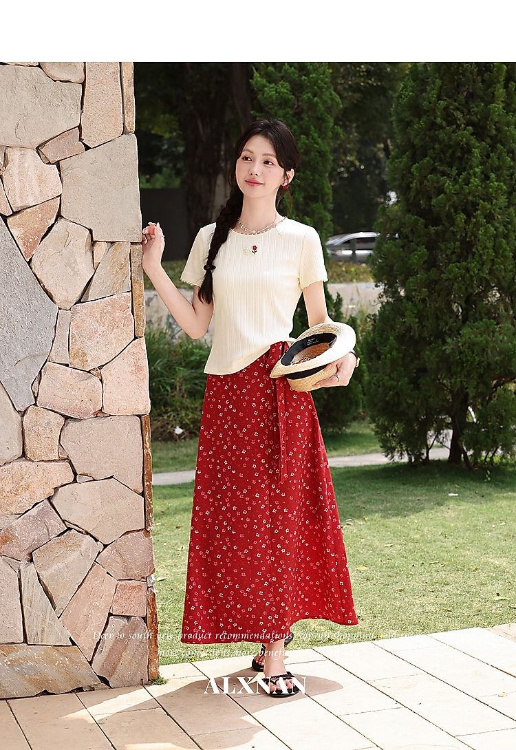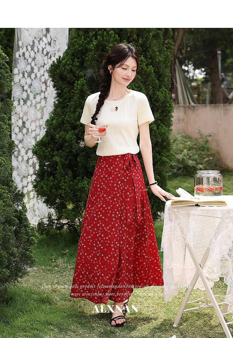 鹿向南【0417/20:00新品前1小时7折限量100件】碎花红色半身裙女