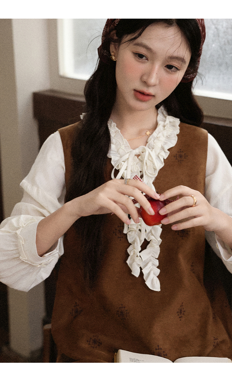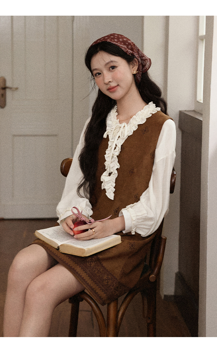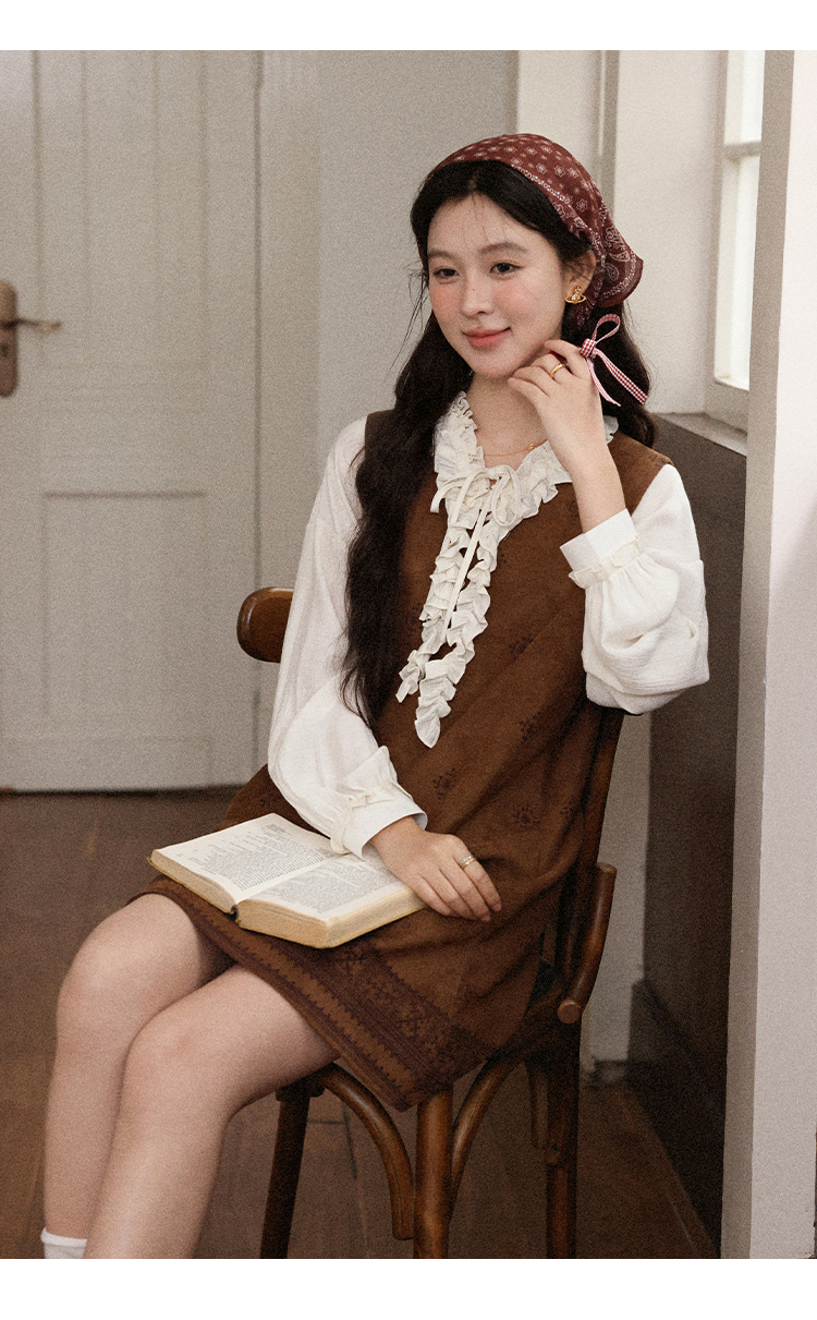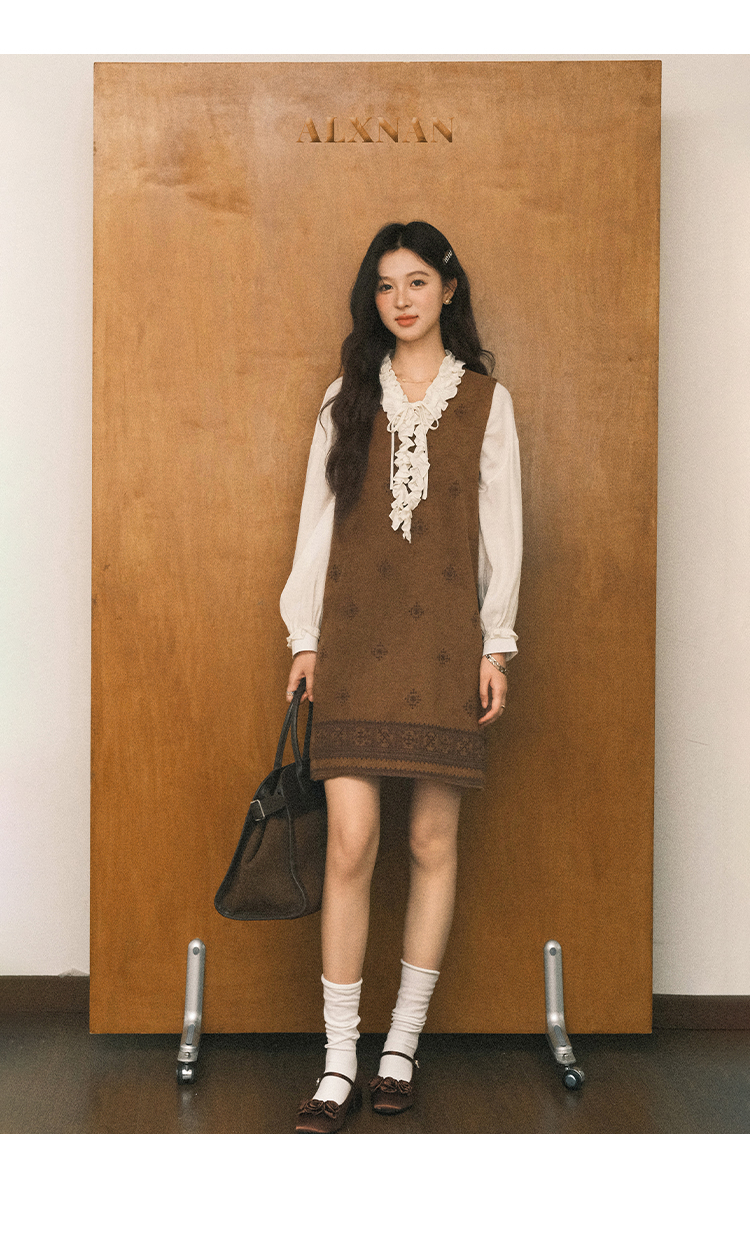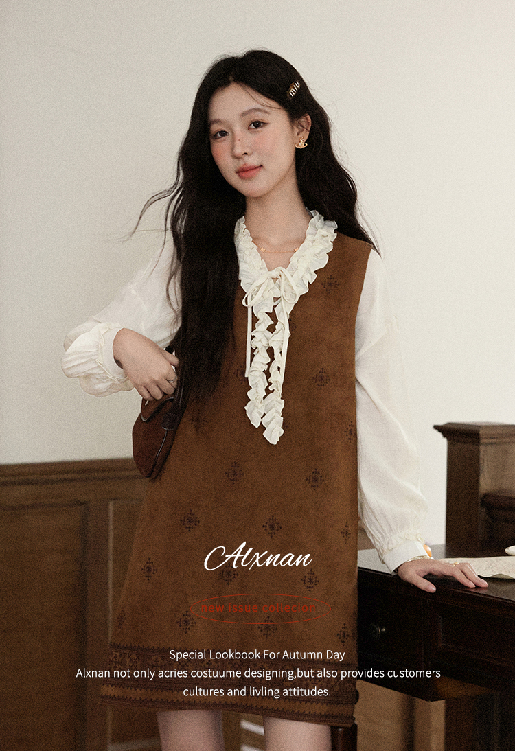 鹿向南「文艺庄园」波西米亚风连衣裙女秋新款无袖短款咖色背心裙
