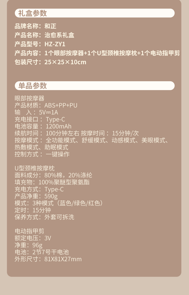 和正 治愈套装 眼部按摩器+U型颈椎按摩枕+电动指甲剪 HZ-ZY-1