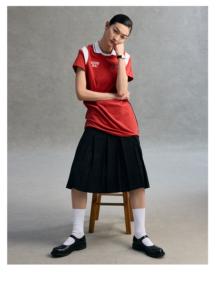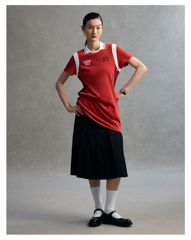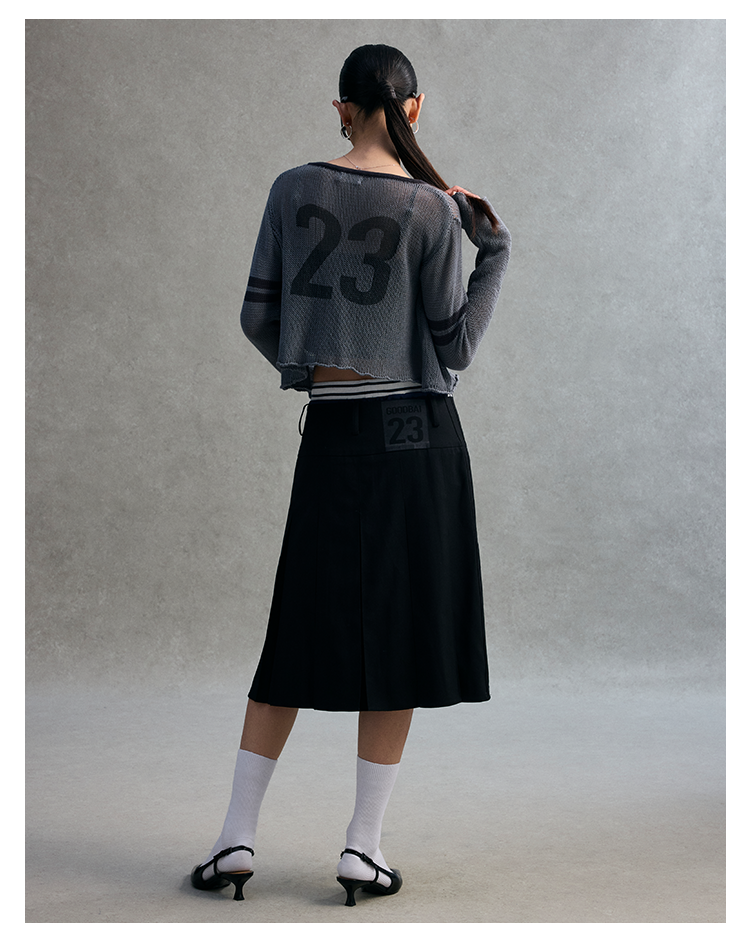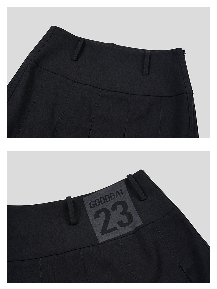 GOODBAI 23编号logo标宽腰带百褶半身短裙