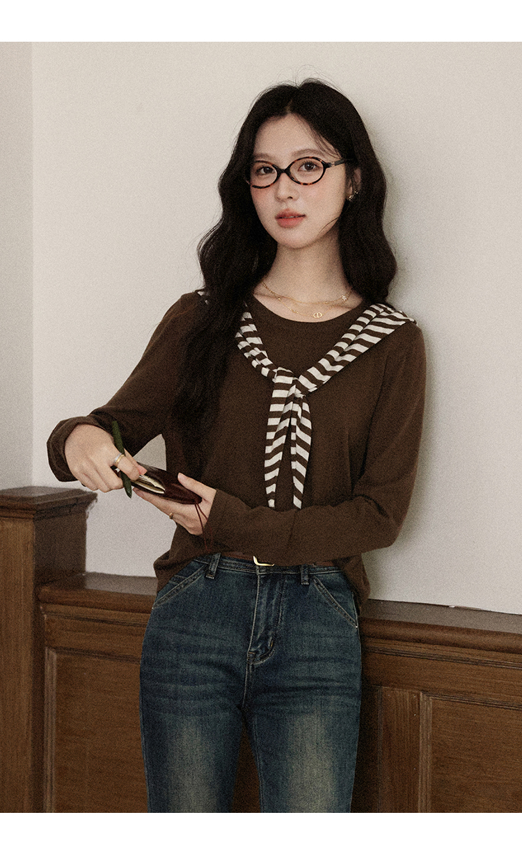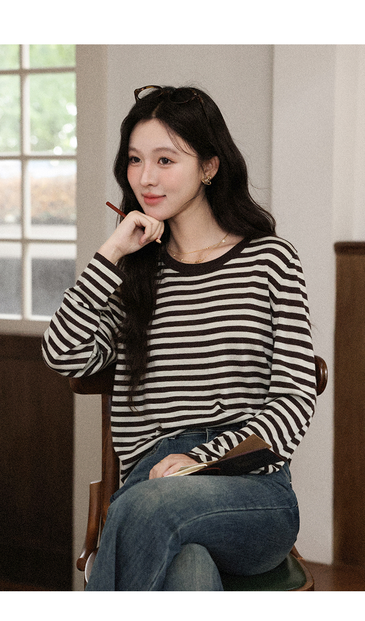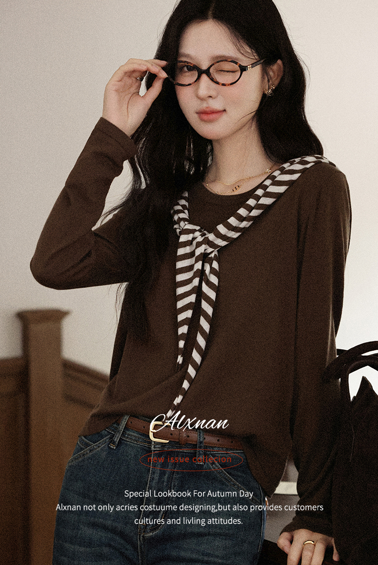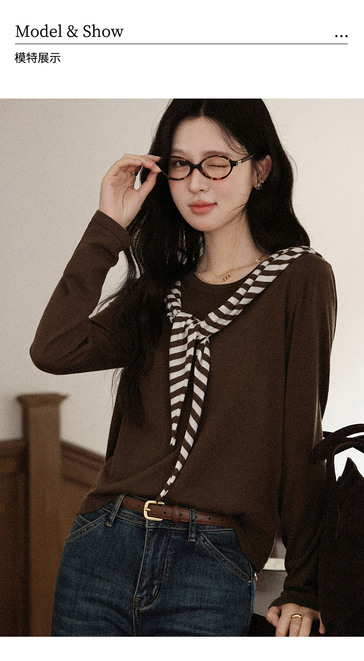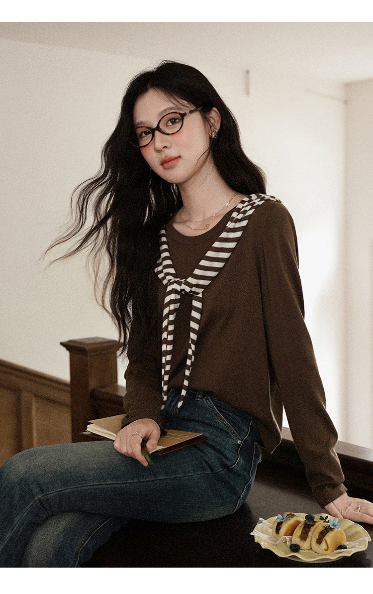 鹿向南「松露漫想」咖色圆领长袖针织衫早秋新款通勤宽松上衣女装