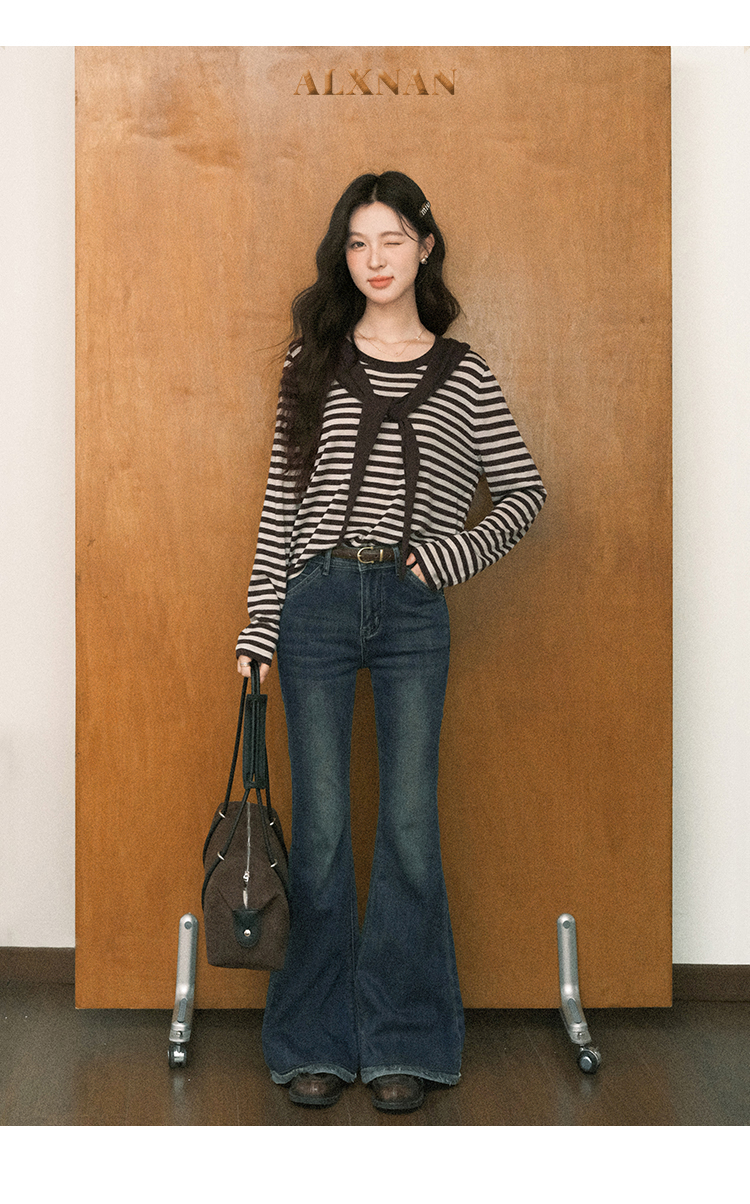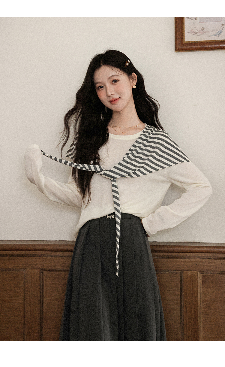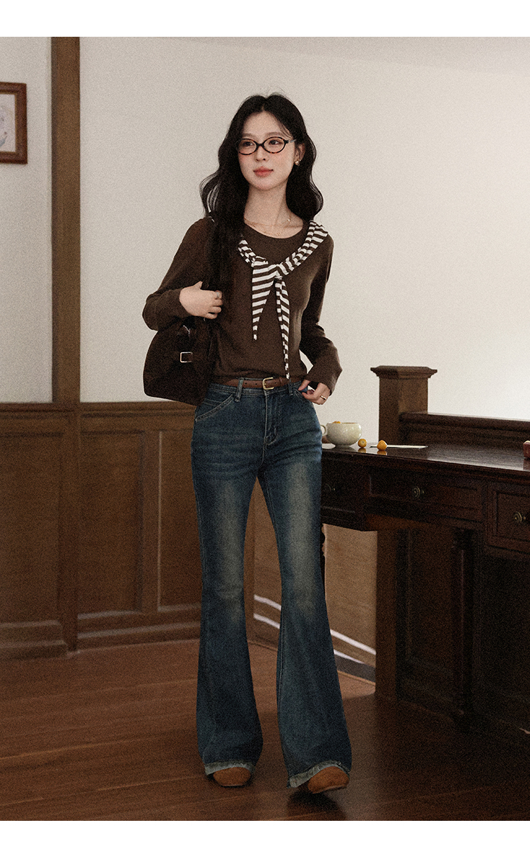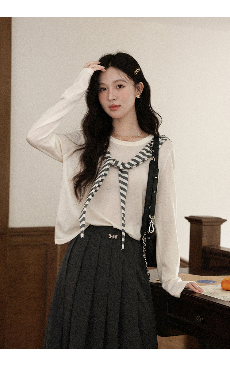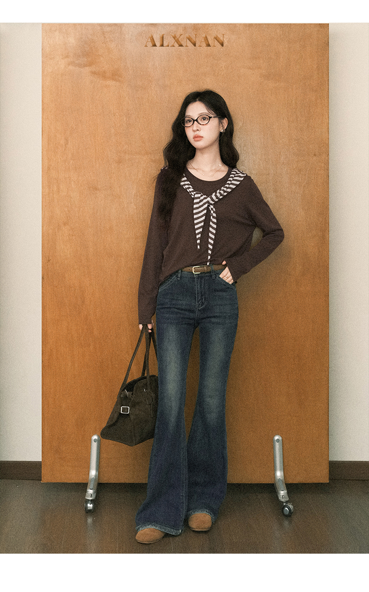 鹿向南「松露漫想」咖色圆领长袖针织衫早秋新款通勤宽松上衣女装