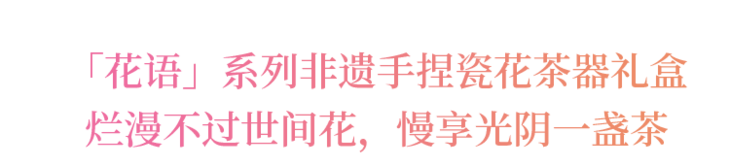 这个「花语」系列非遗手捏瓷花茶器礼盒仪式感满满,抽拉的礼盒设计,犹如轻启一段浪漫的旅程,一花一盏便是岁月生香的许诺。