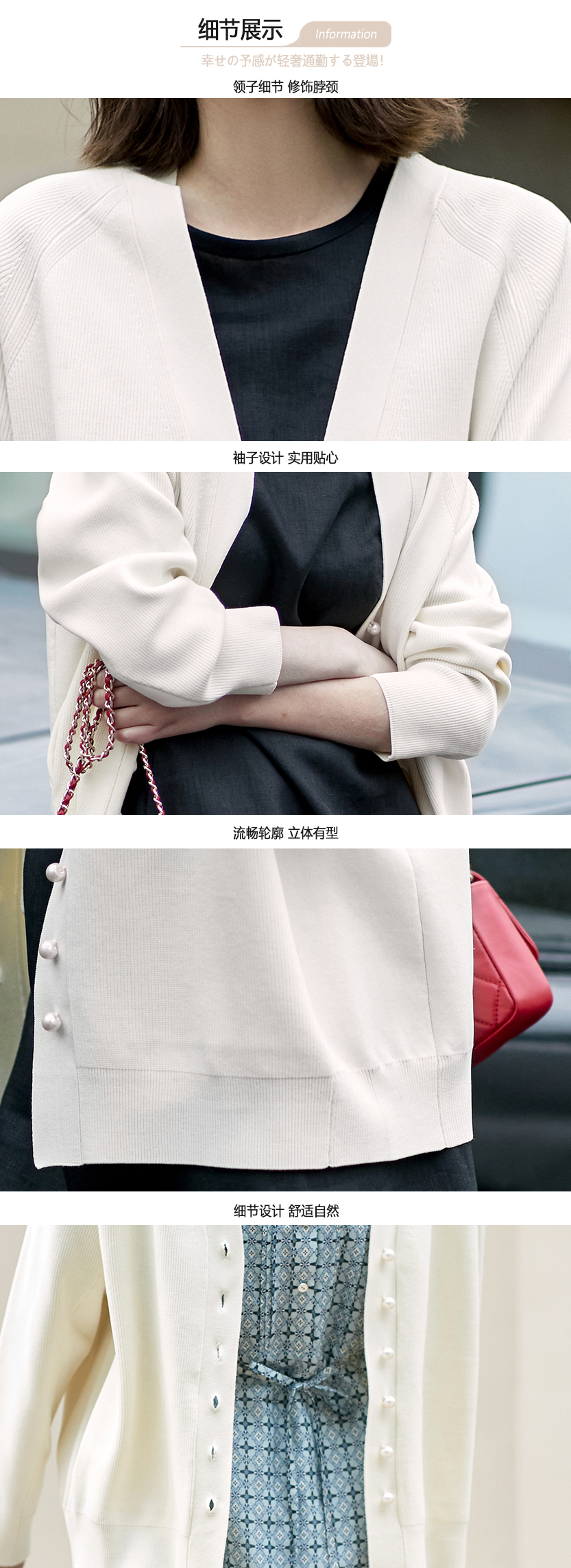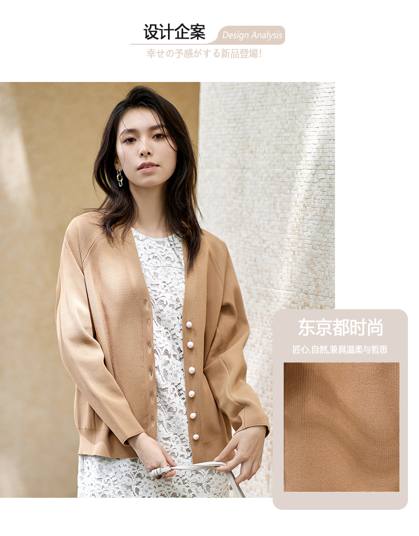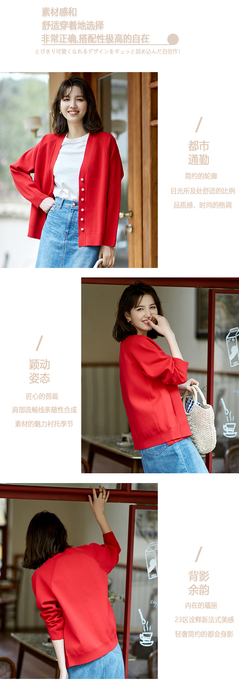 23区日系春秋季通勤职业OL宽松版V领针织开衫编织衫上衣商场同款