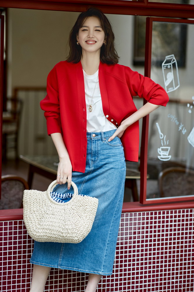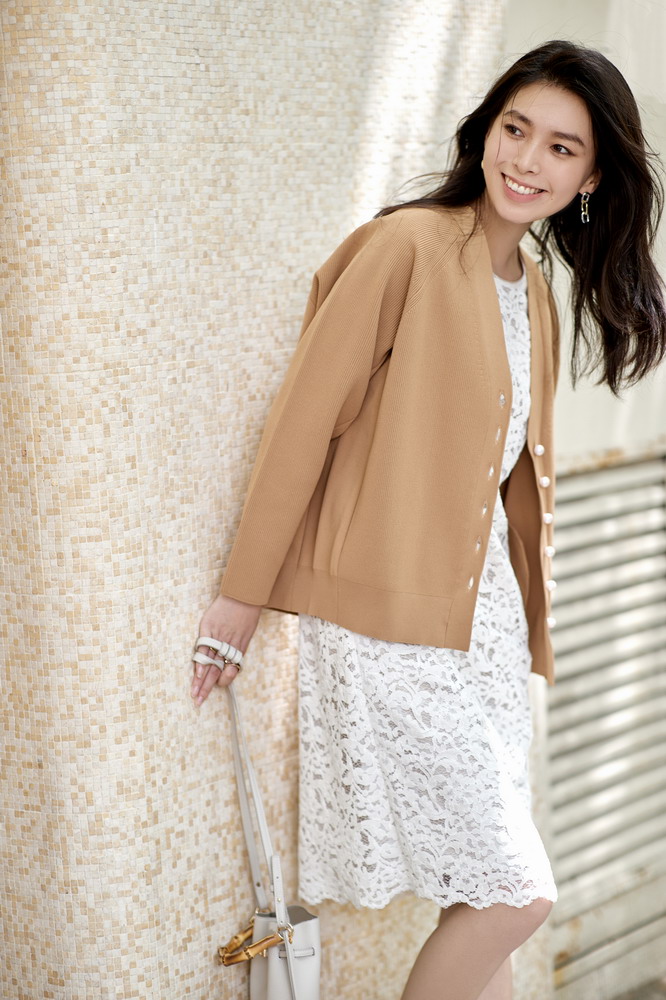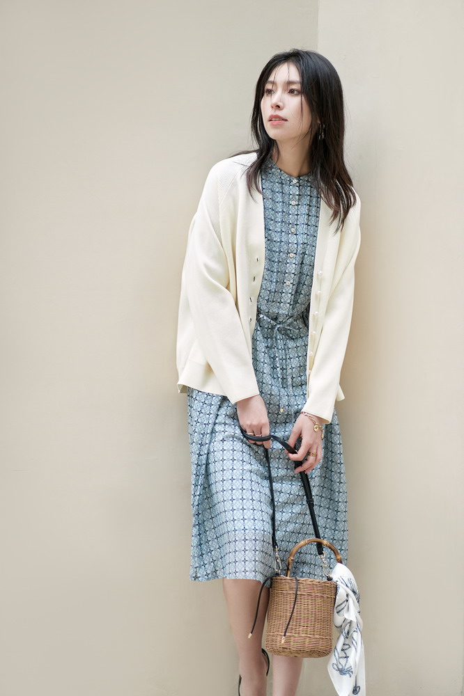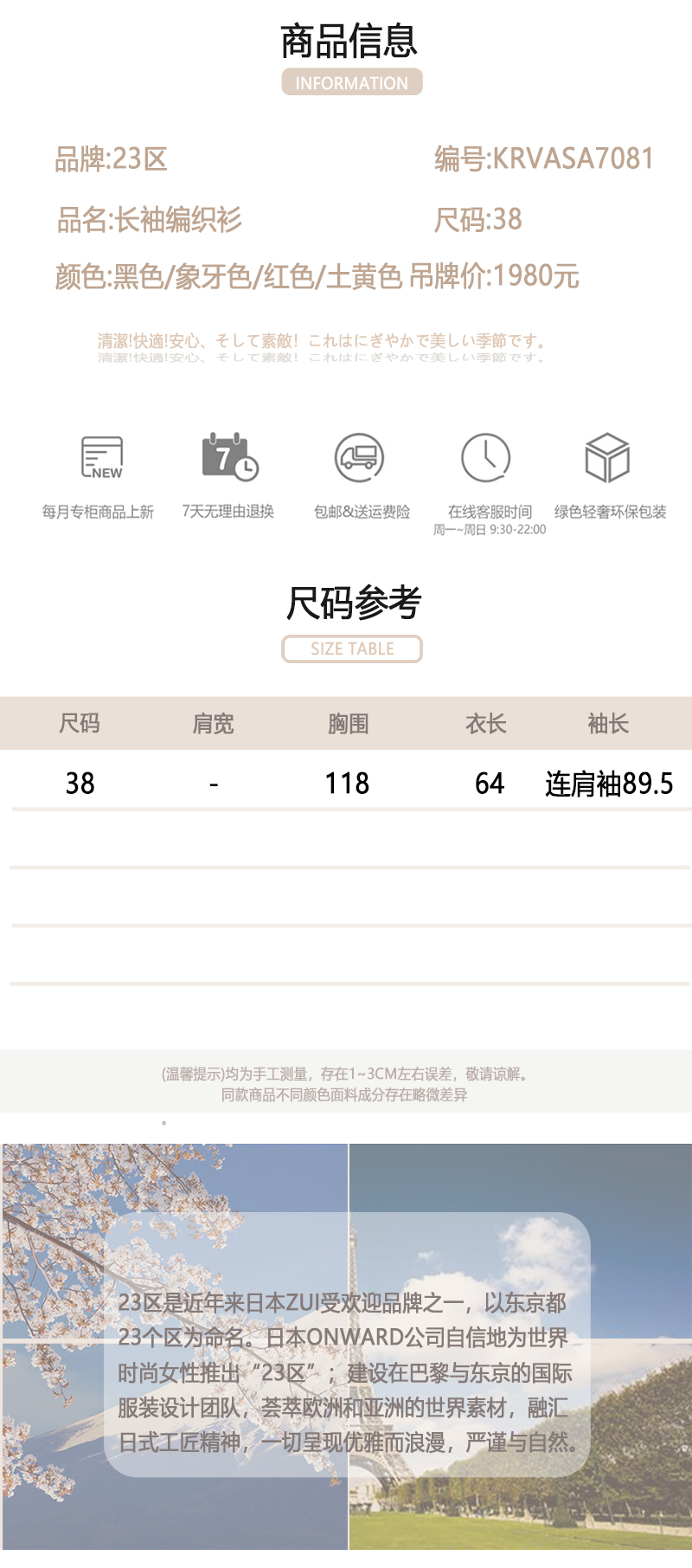 23区日系春秋季通勤职业OL宽松版V领针织开衫编织衫上衣商场同款