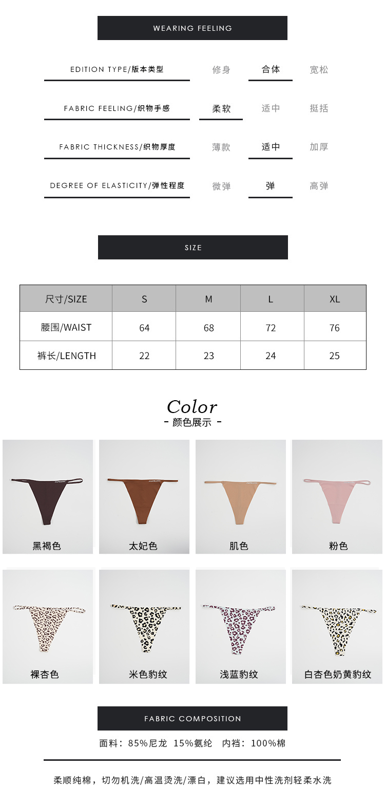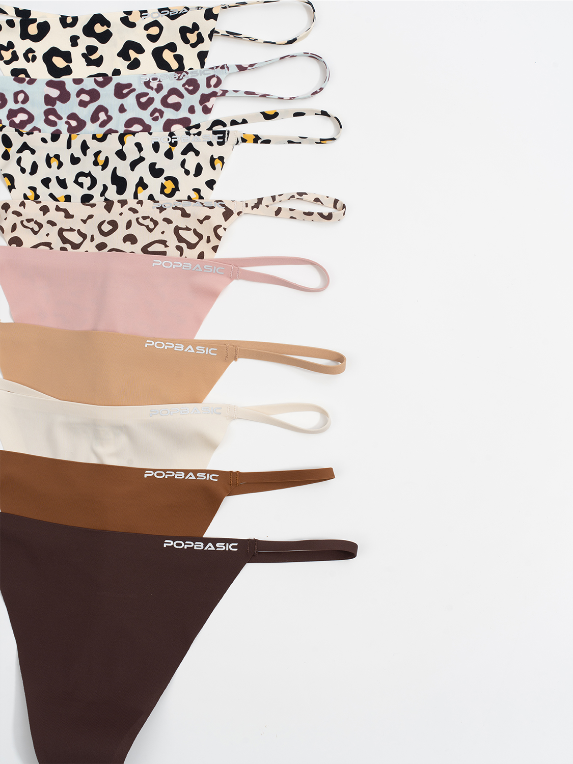 POPBASIC低腰性感t裤无痕冰丝一根绳内裤 动物纹运动速干