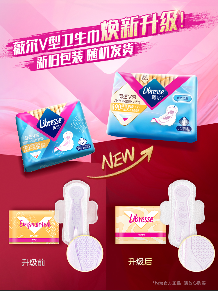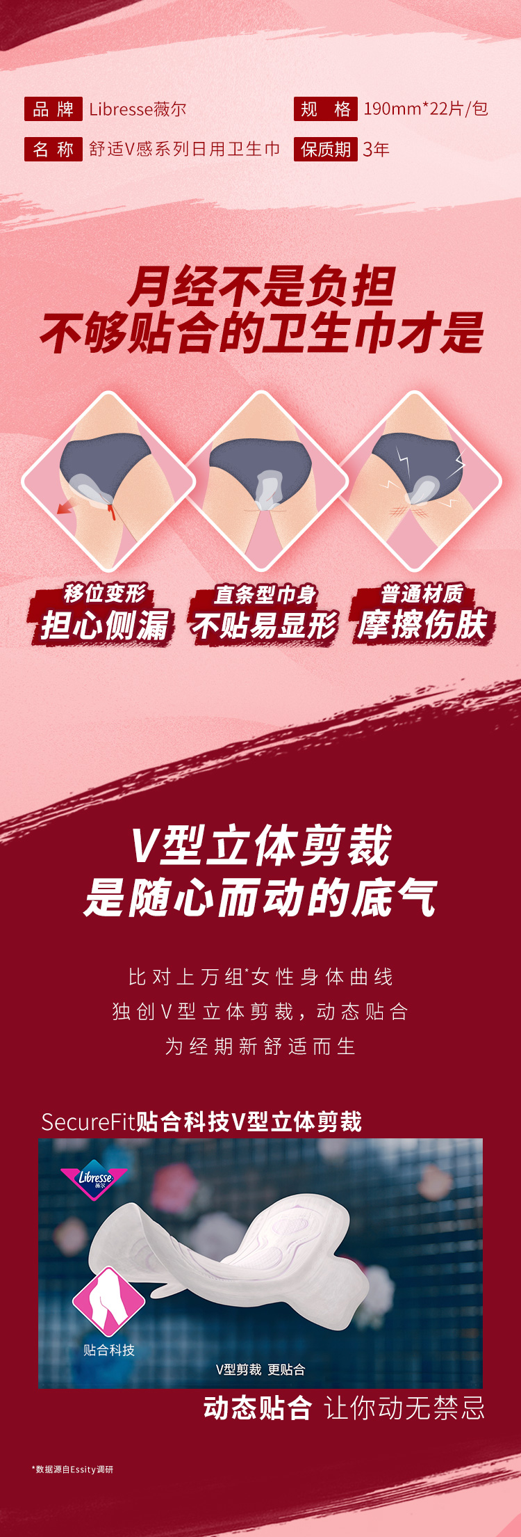Libresse薇尔舒适V感190迷你22片极薄棉柔卫生巾