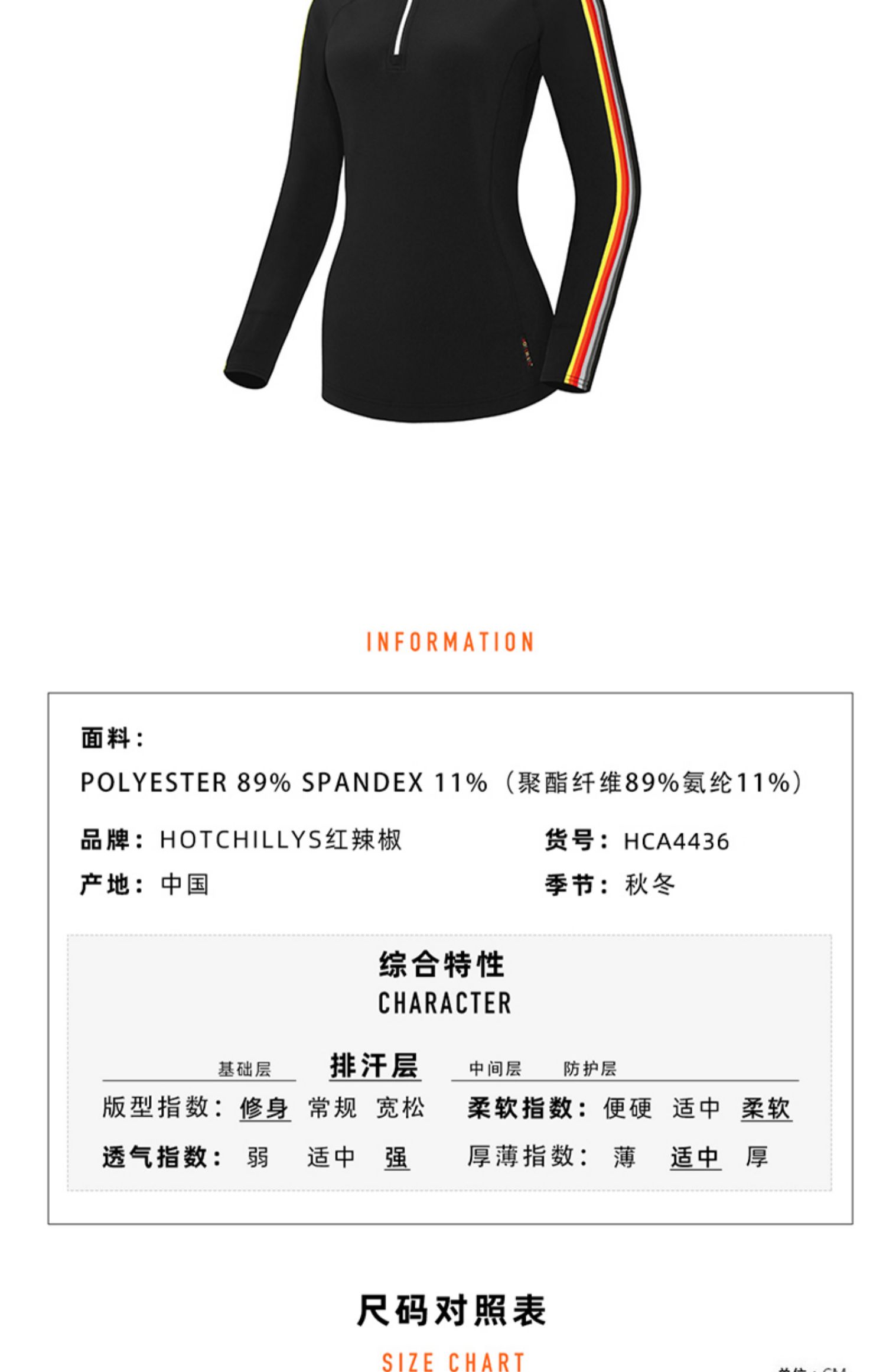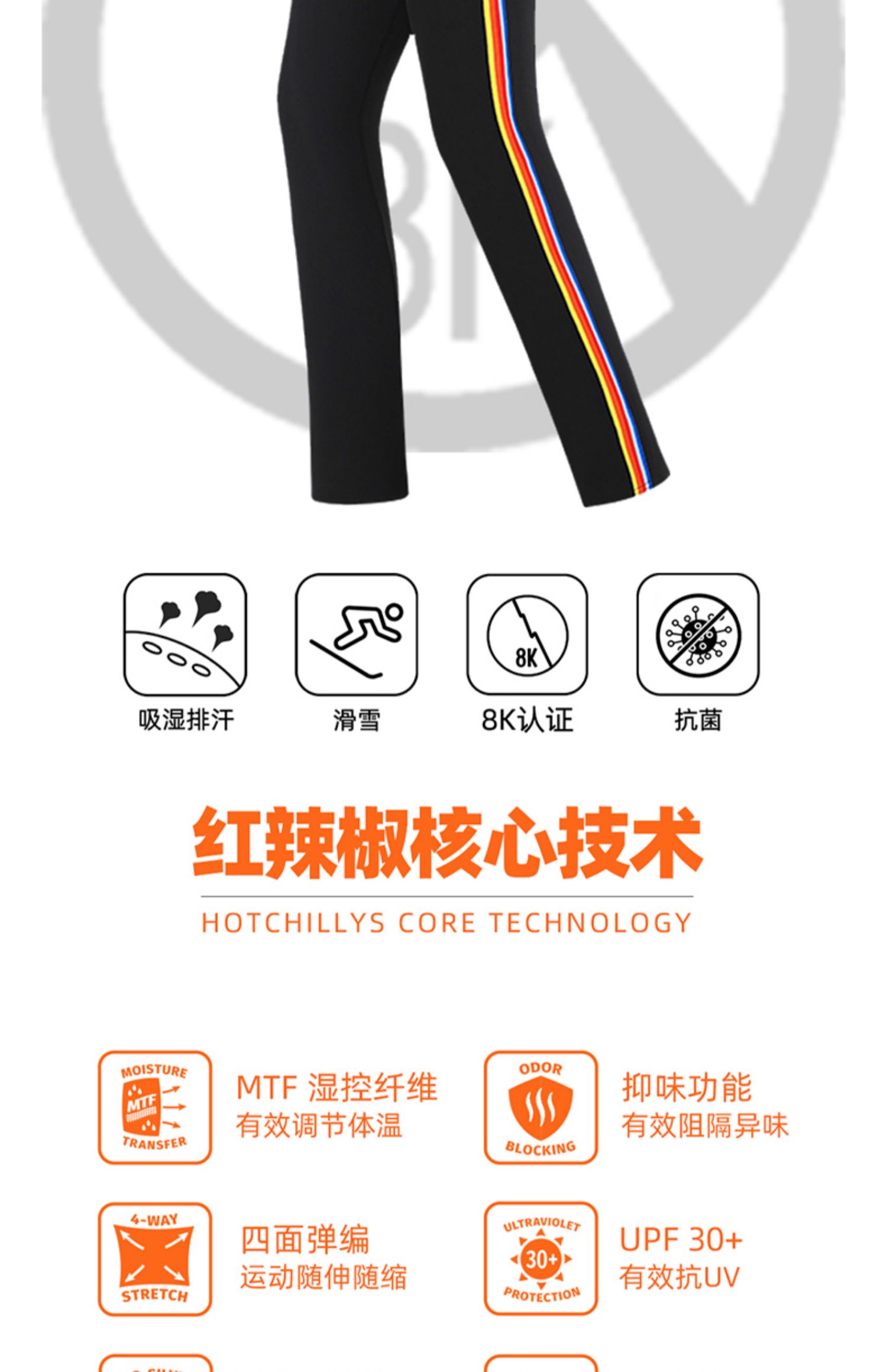 HOTCHILLYS热椒8K磨毛户外保暖长裤女滑雪速干打底裤HCA4436