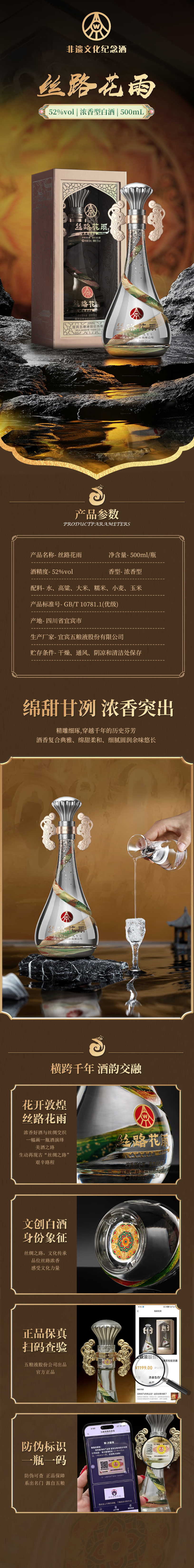 【拍1发2】五粮液 丝路花雨 丝路文化纪念 52度 浓香型白酒 500ml单瓶 拍3发原箱