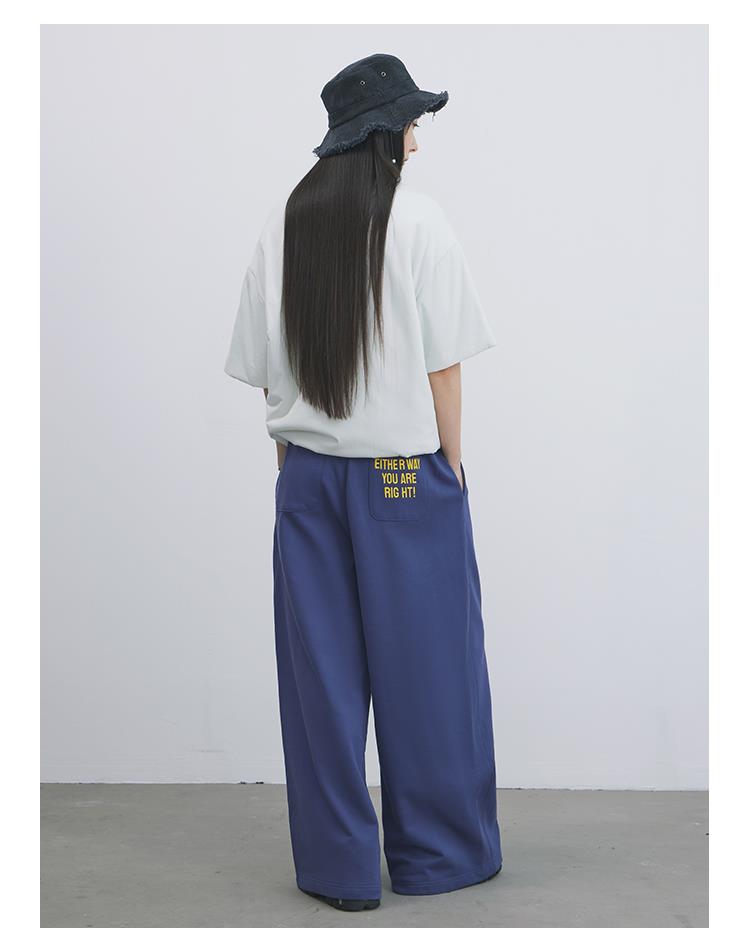 GOODBAI 新款刺绣水洗高腰宽松抽绳直筒牛仔裤长裤女