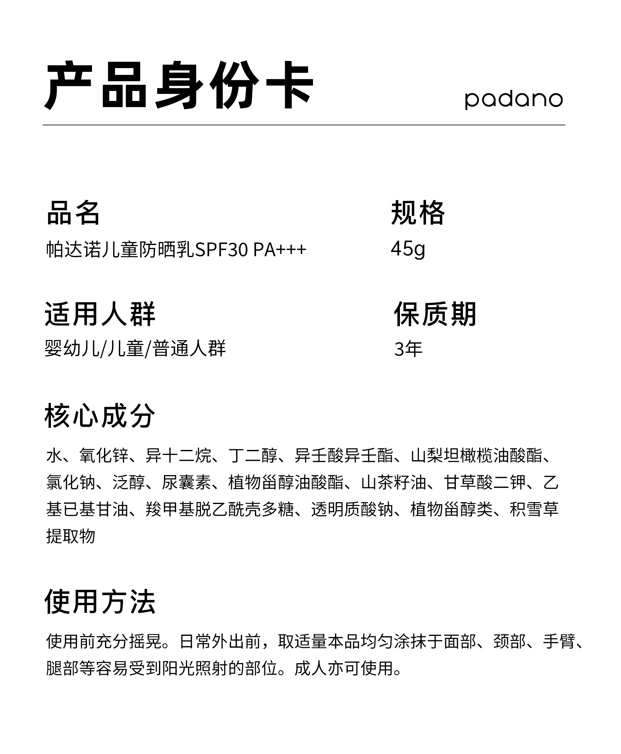 帕达诺儿童30倍防晒乳45g*2支-rxs