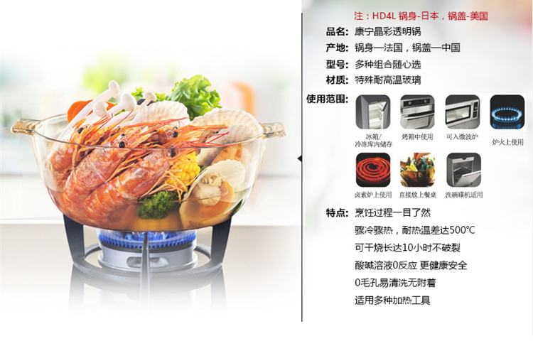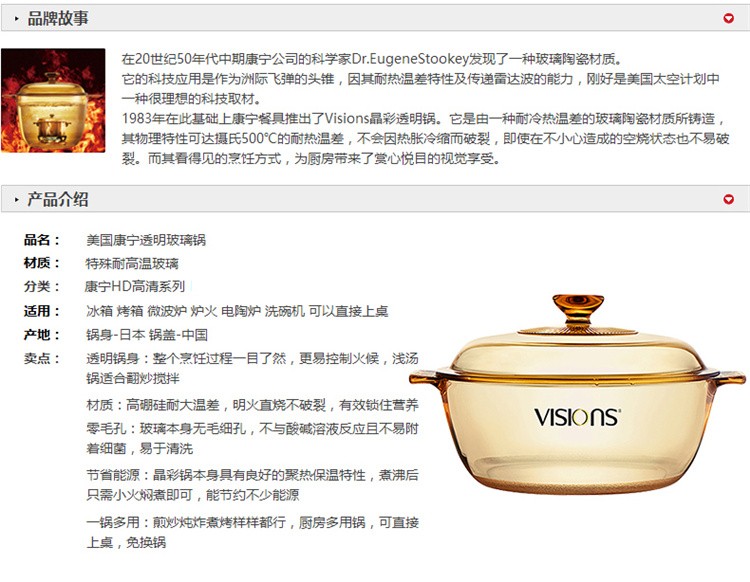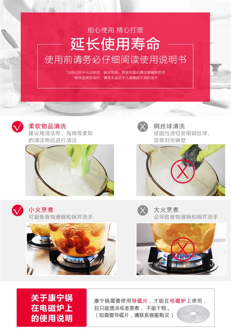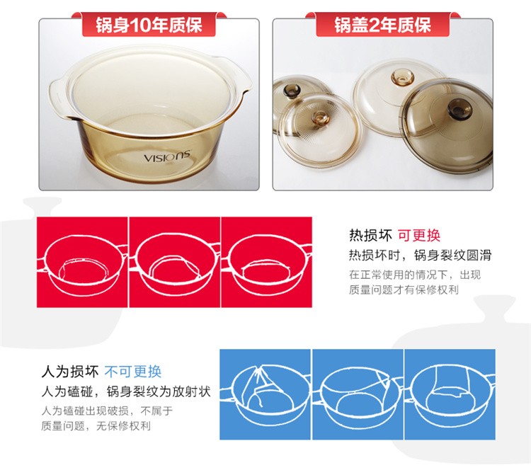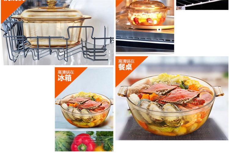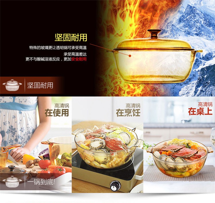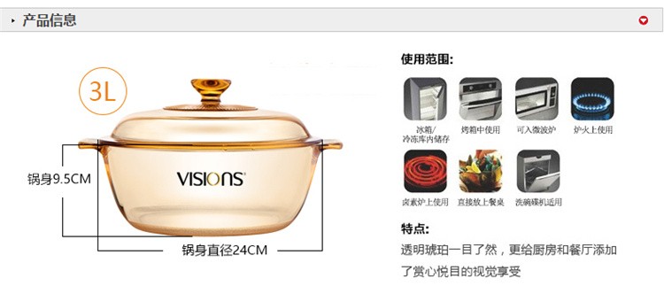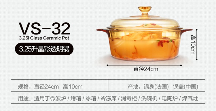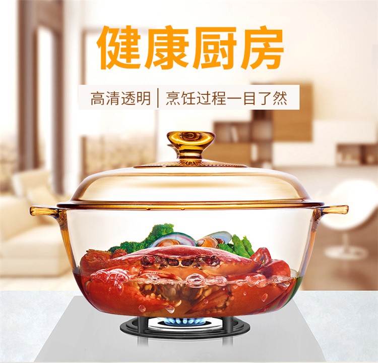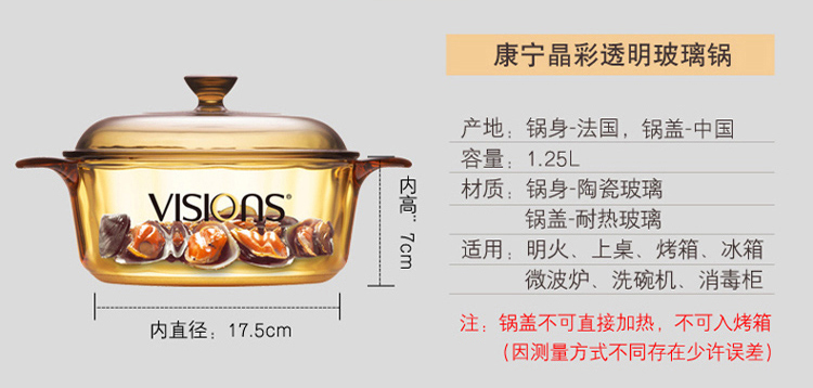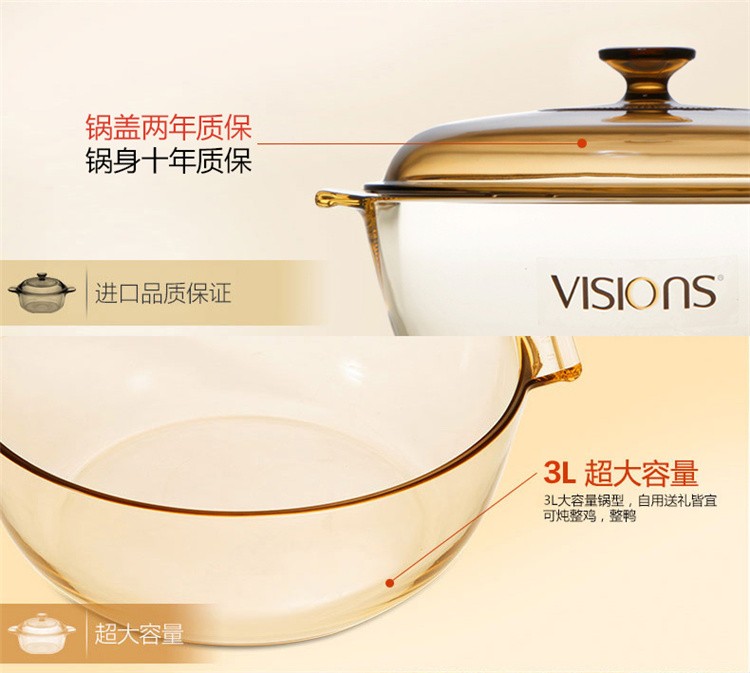 康宁(VISIONS)美国康宁visions晶彩系列透明锅琥珀色玻璃锅耐热可明火汤锅炖锅 3.25L晶彩锅