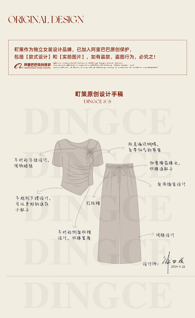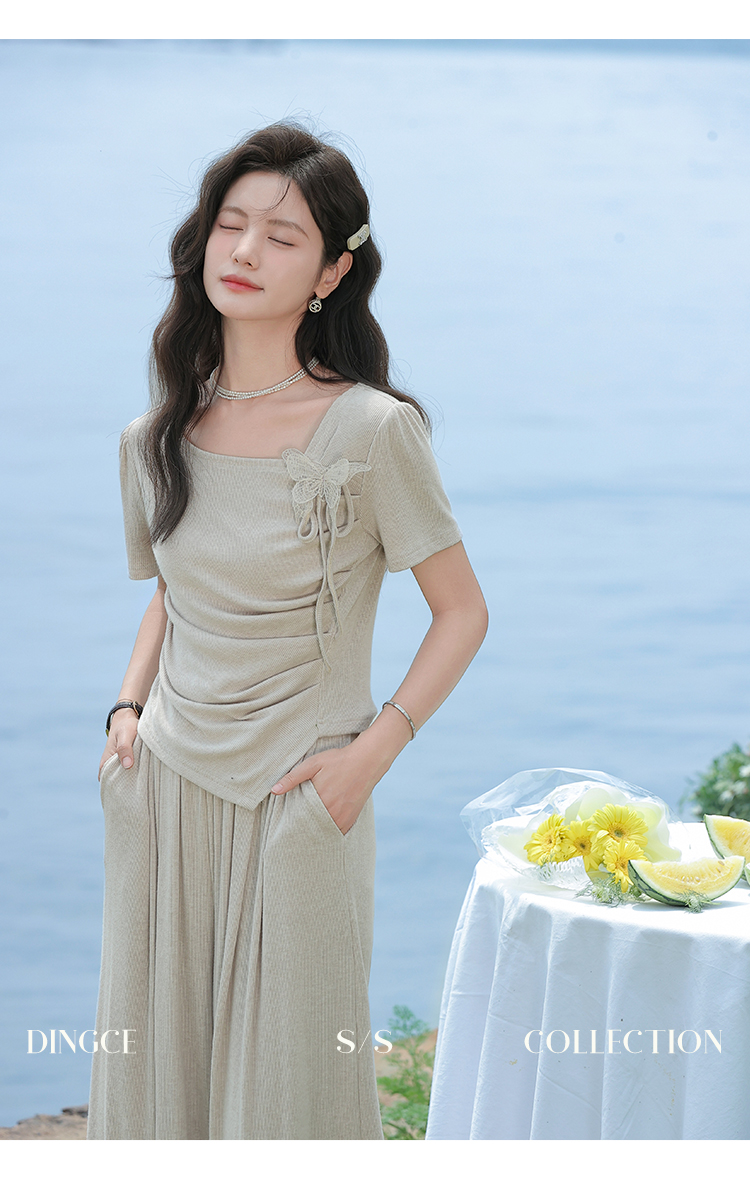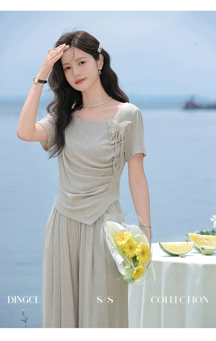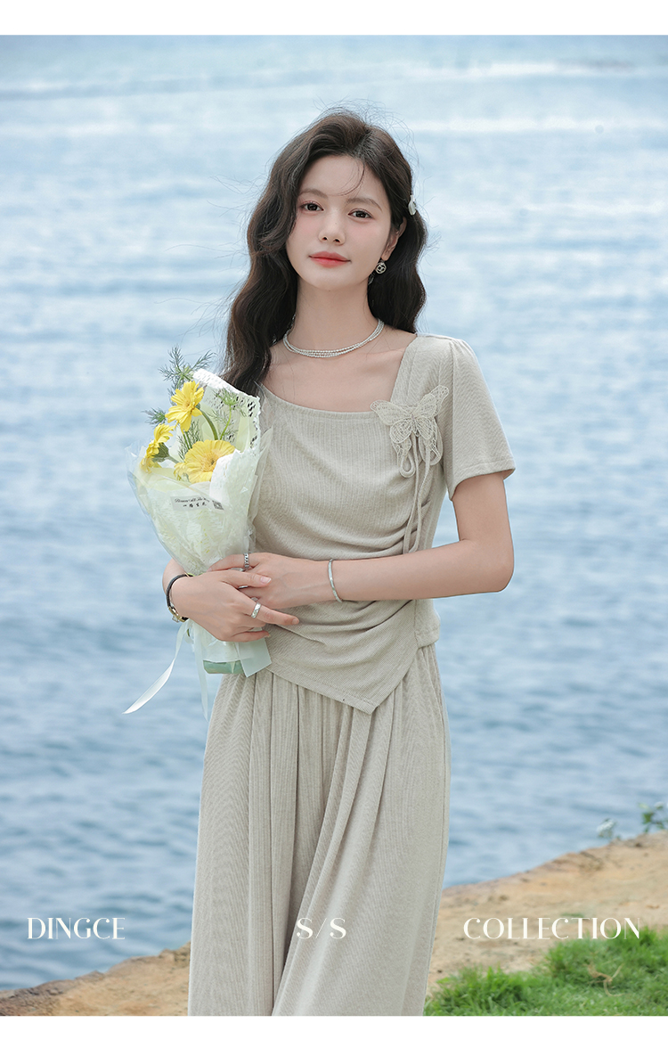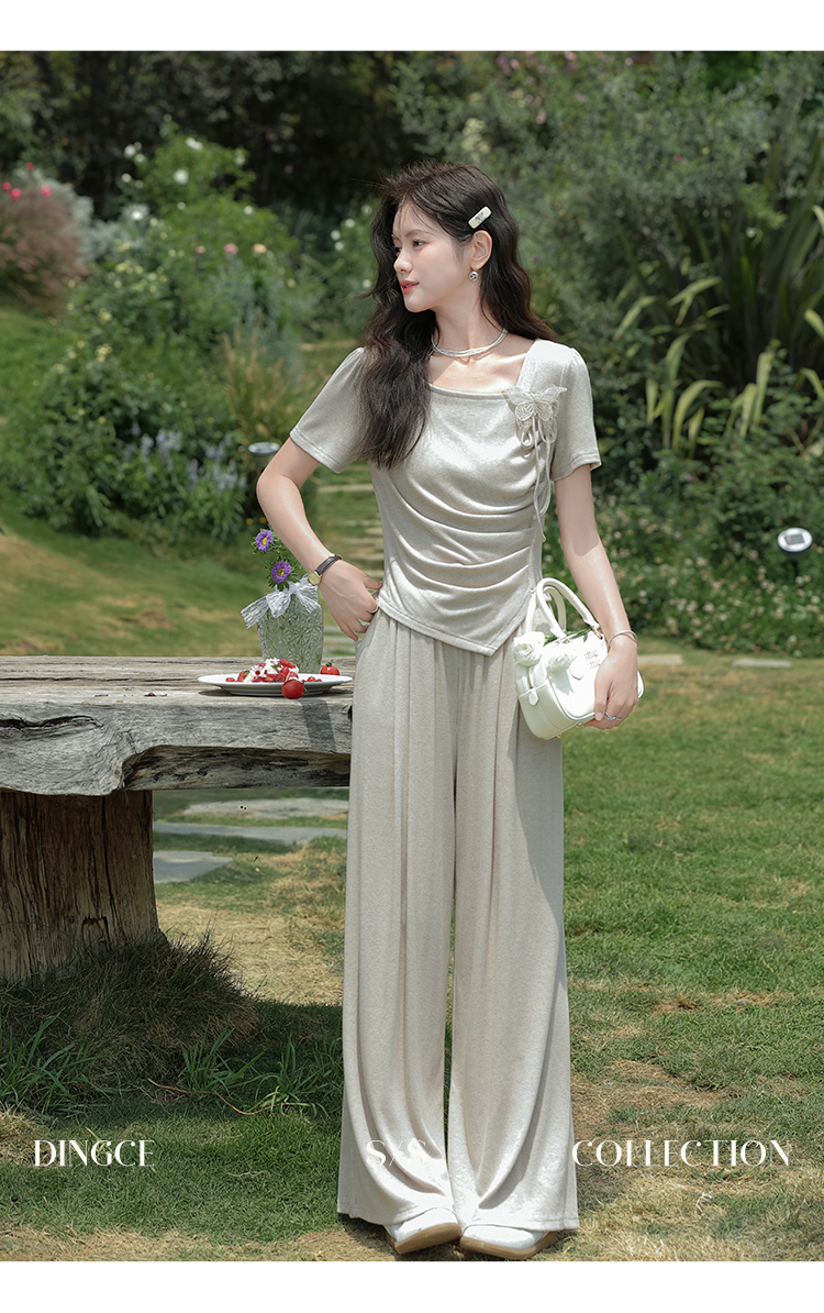 鹿向南 小个子「灰夜迷迭」法式不规则T恤套装夏季上衣休闲裤两件套