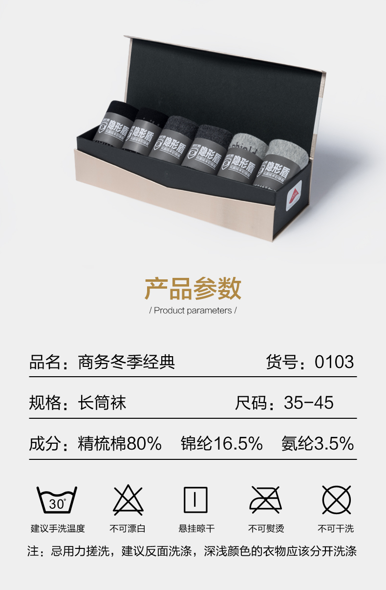 隐形盾 防臭抗菌袜子冬季保暖休闲吸汗透气中筒袜6双装