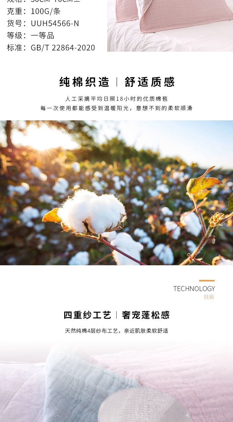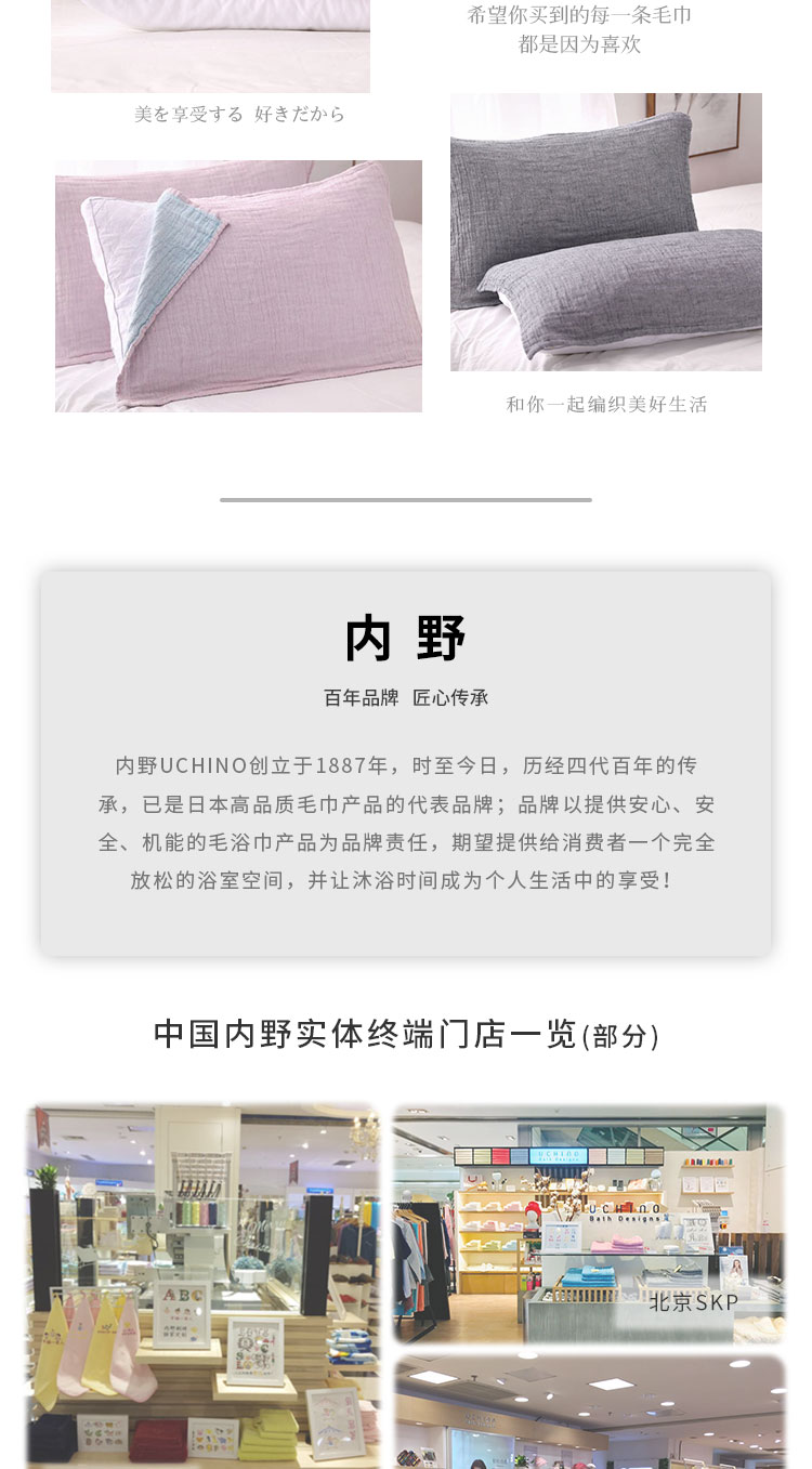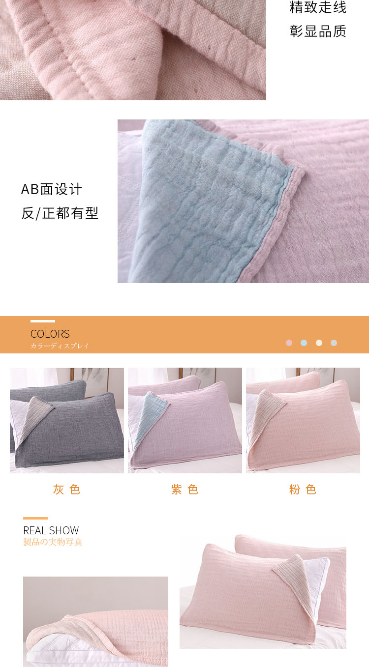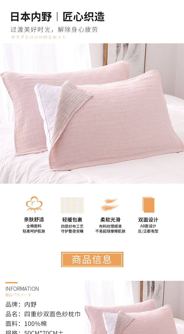 内野X-四重纱双面色纱枕巾2条装