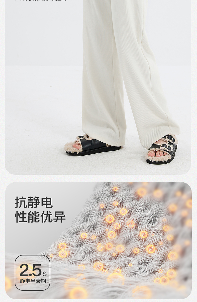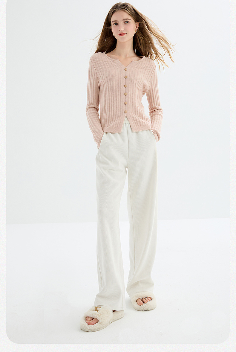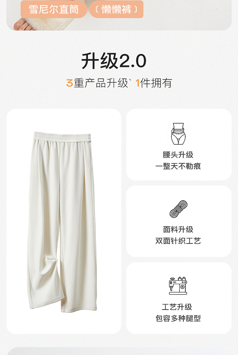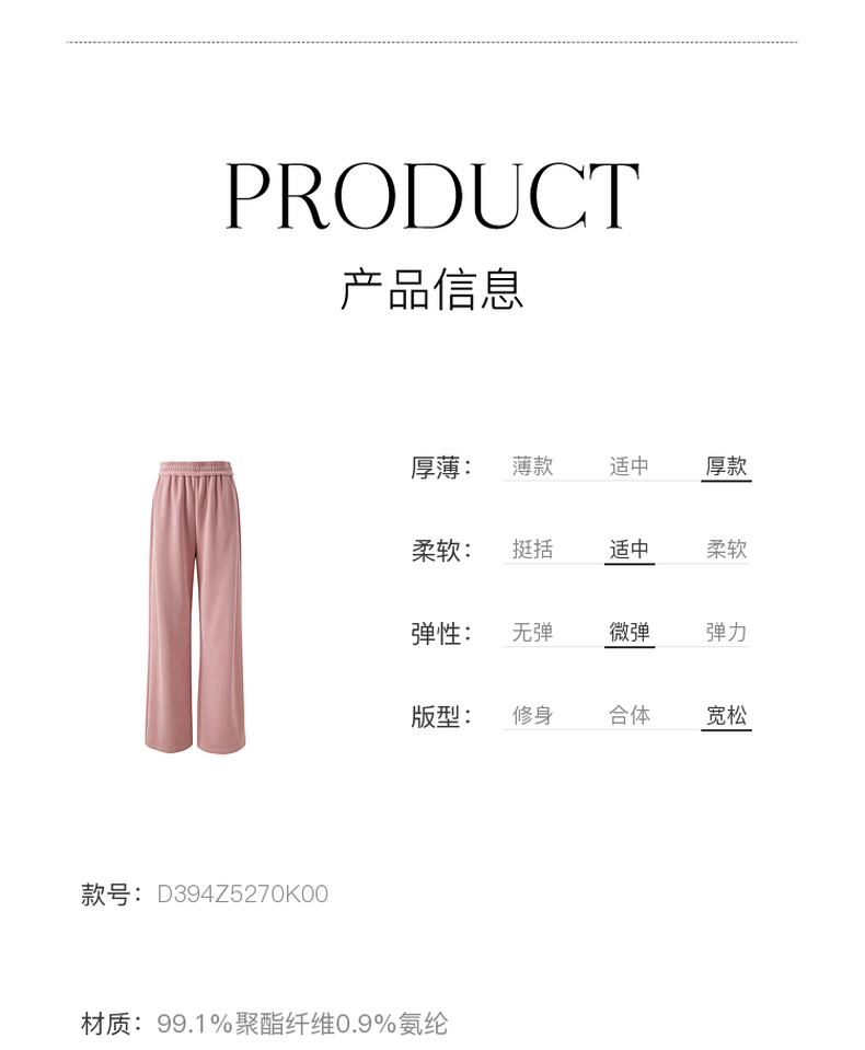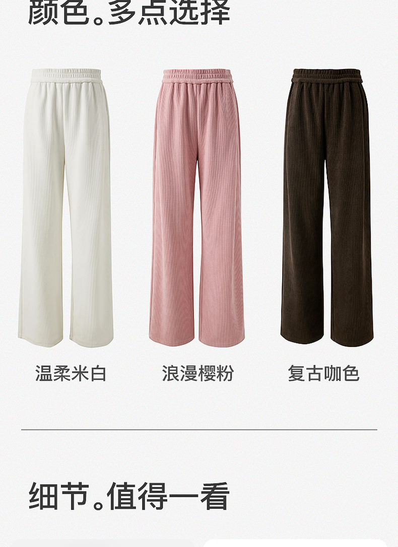【宋轶同款】三彩2024冬季新款雪尼尔休闲长裤高腰松紧直筒阔腿裤宽松简约女M