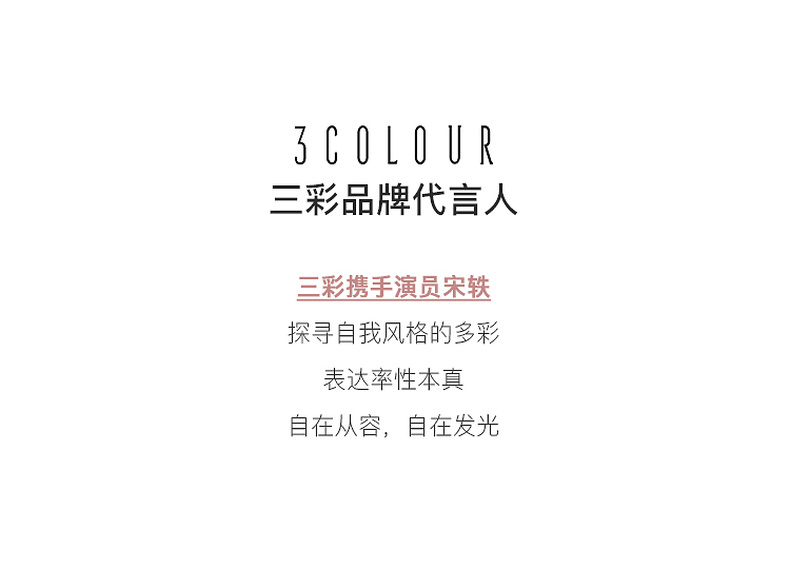 - 3COLOUR,一直致力于探索自我与时尚审美,用穿衣哲学折射生活主张,在流动中探寻恒久。