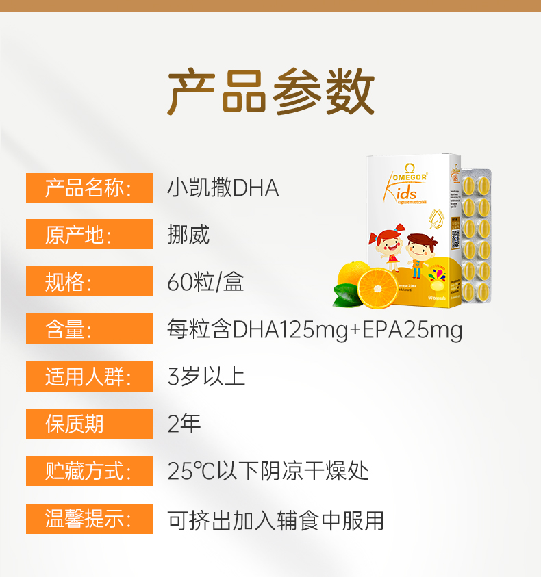 【金凯撒】DHA儿童婴幼儿专用补脑增强记忆力深海鱼油藻60粒/瓶