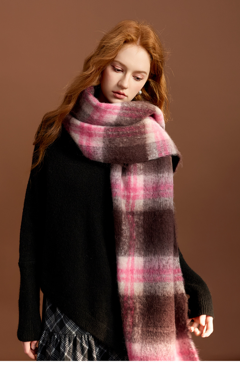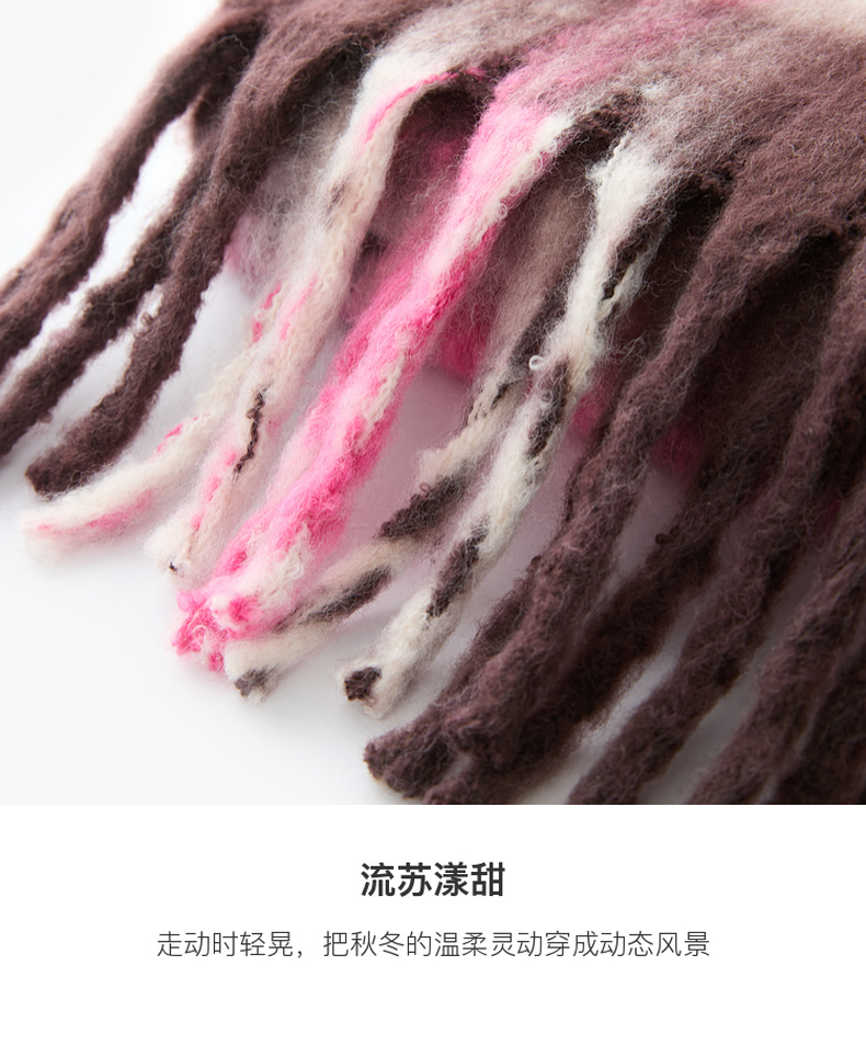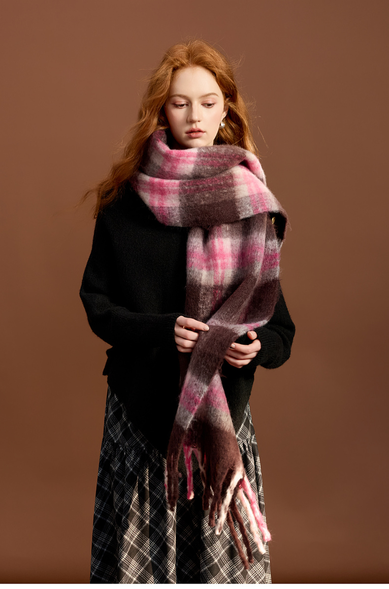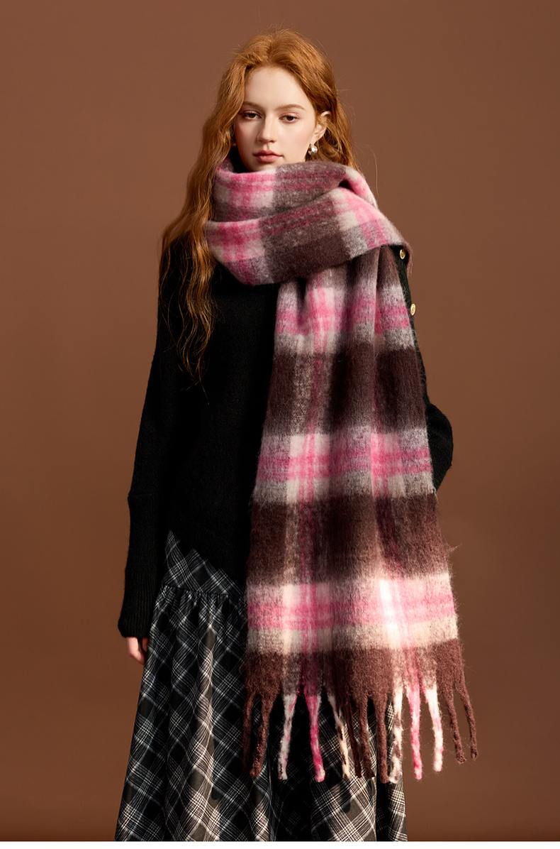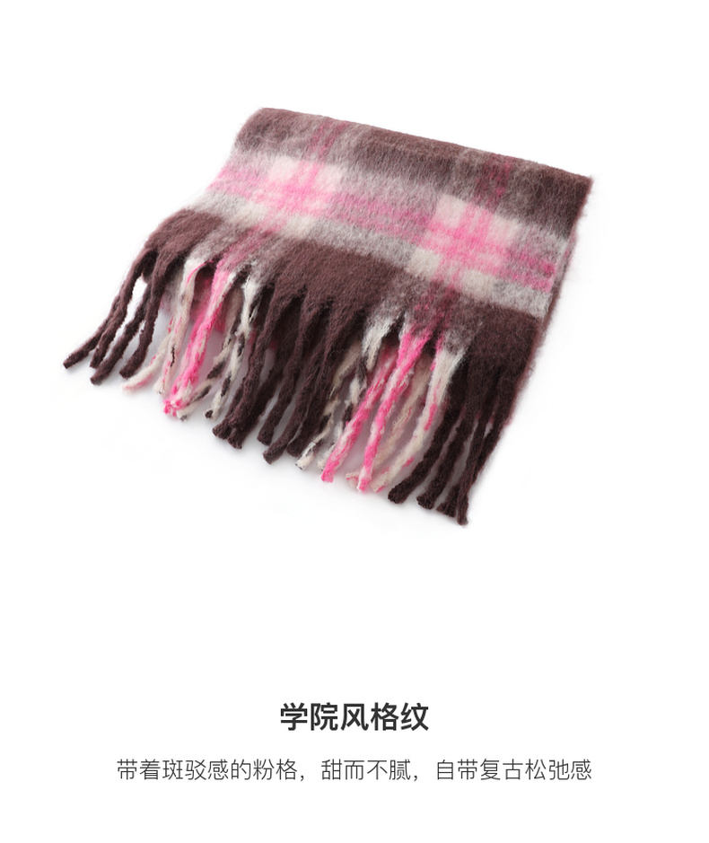 【臻暖围巾】三彩2025新款复古学院风格纹流苏毛绒保暖氛围感女