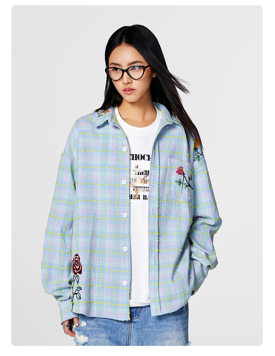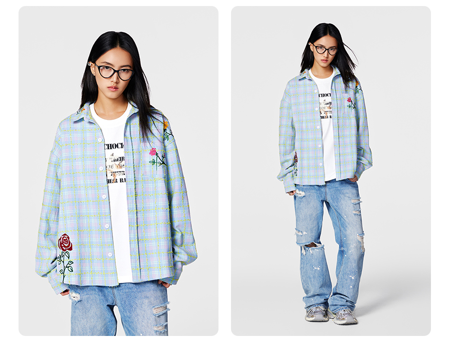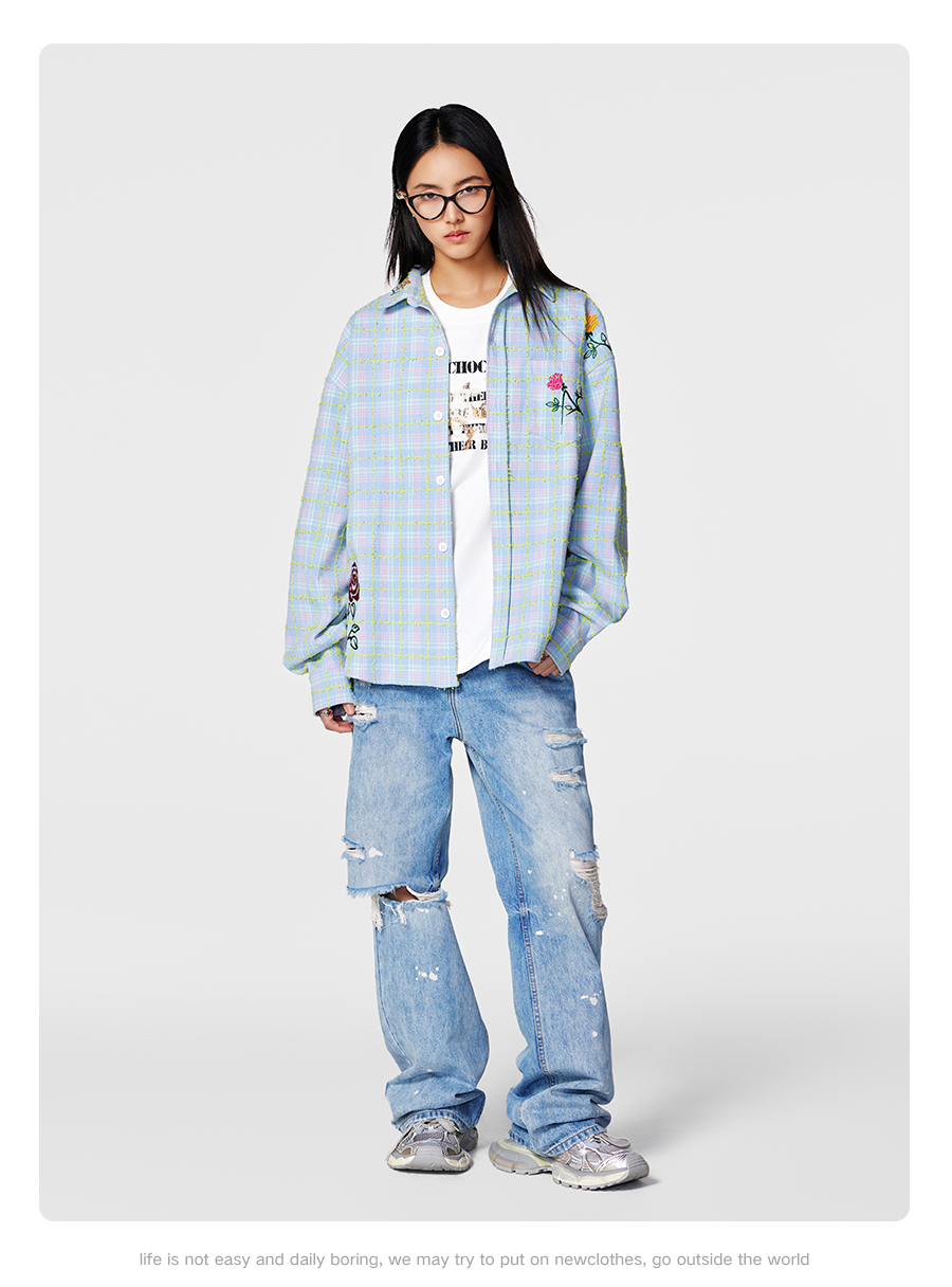 【Achock官方店】美式休闲刺绣格子衬衫男女潮牌高街宽松衬衣情侣
