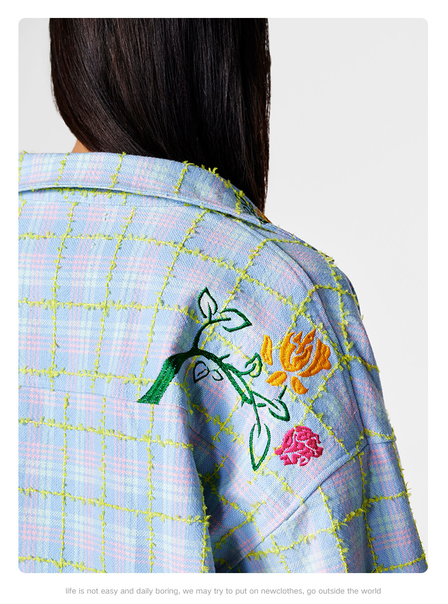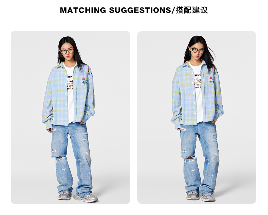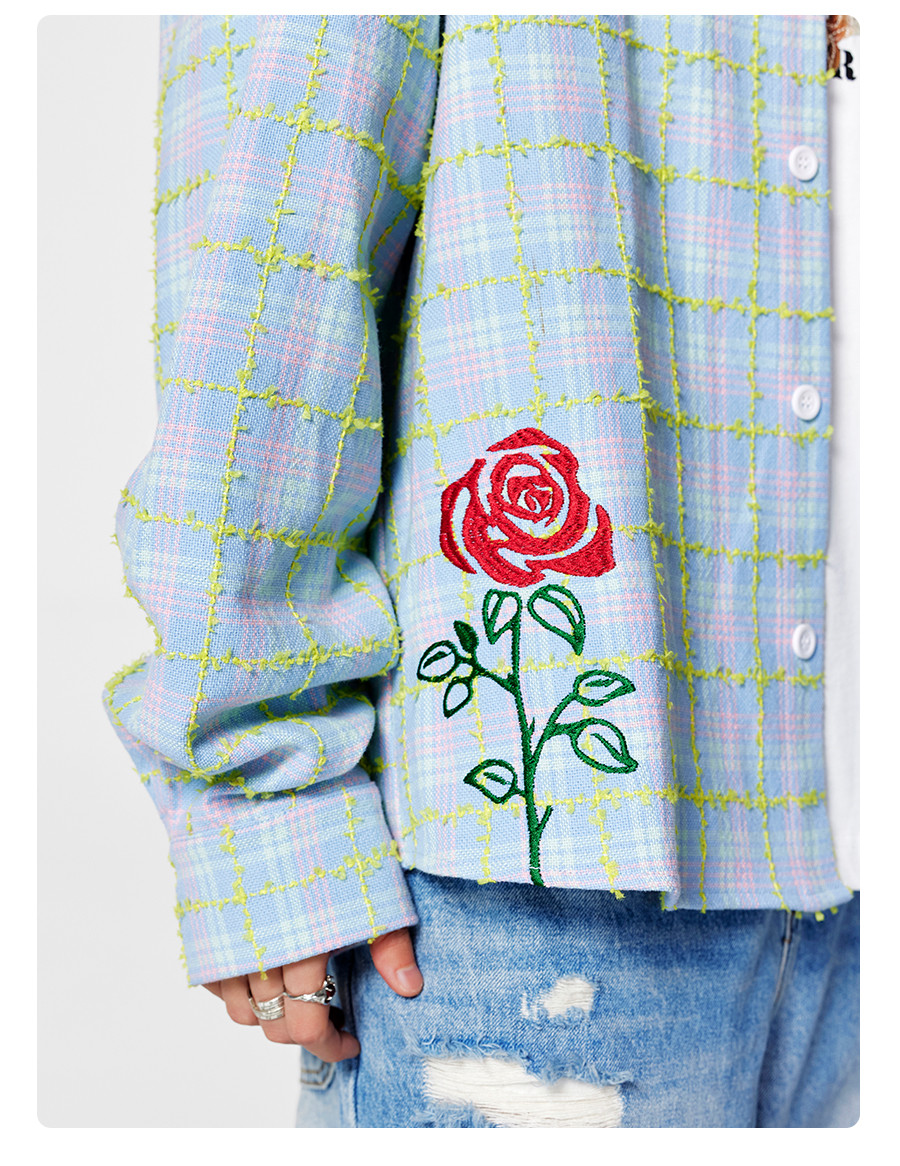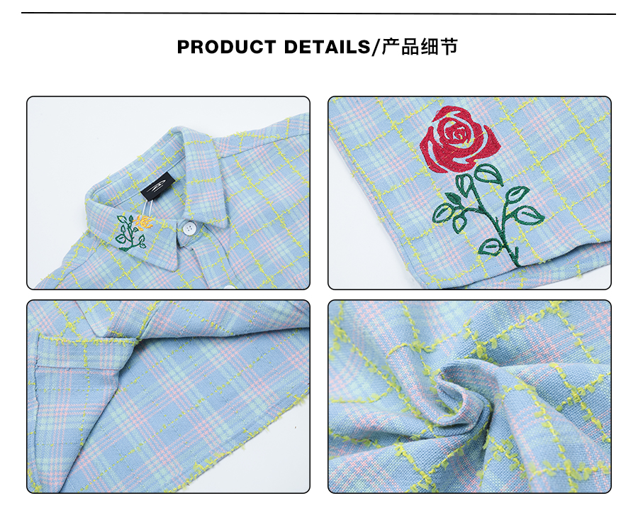 【Achock官方店】美式休闲刺绣格子衬衫男女潮牌高街宽松衬衣情侣