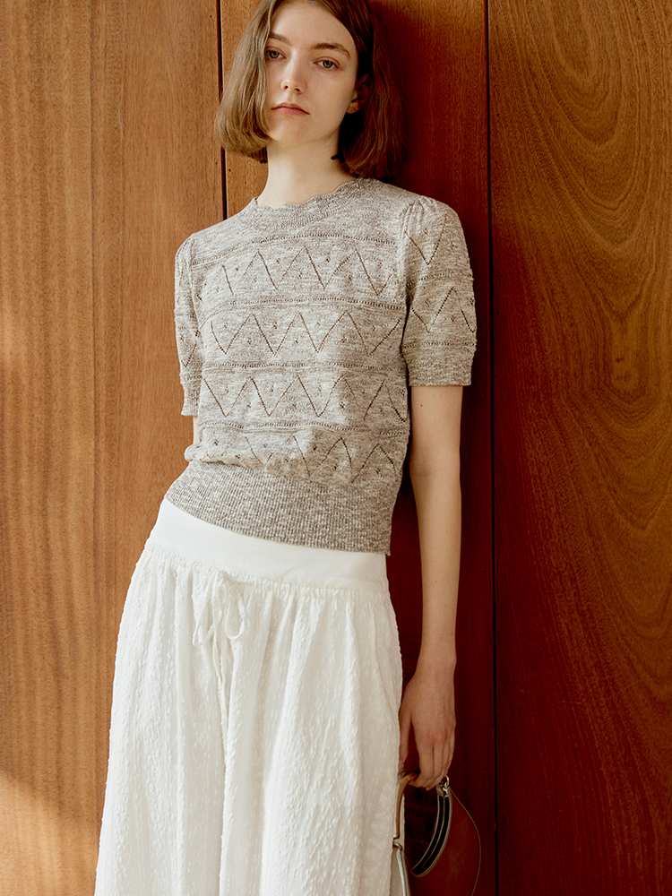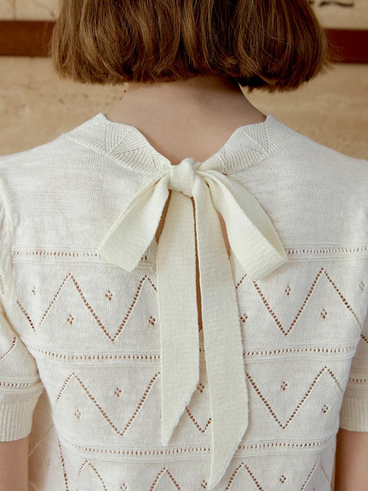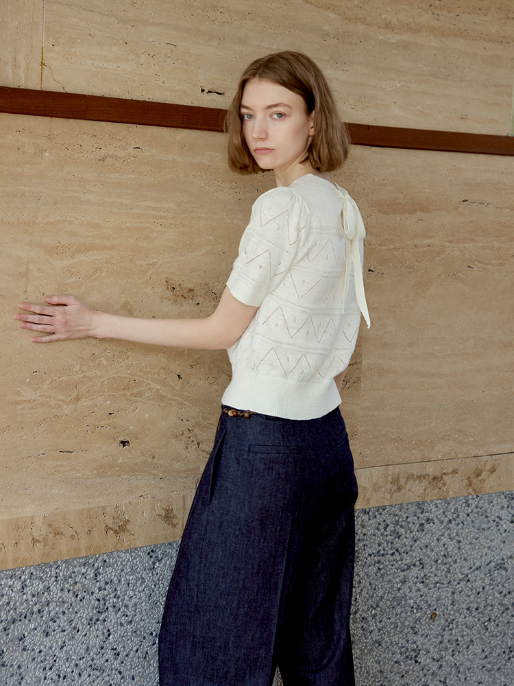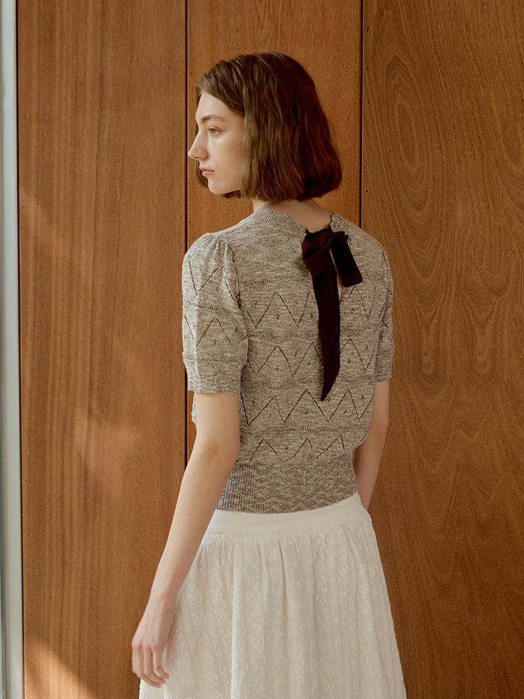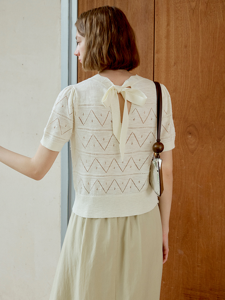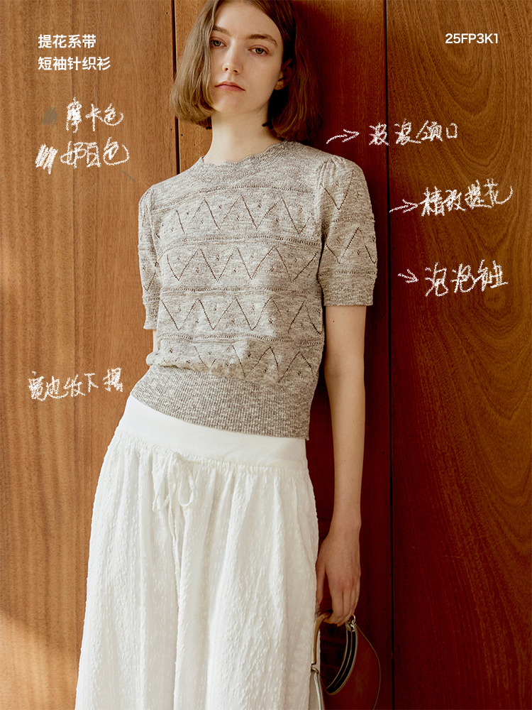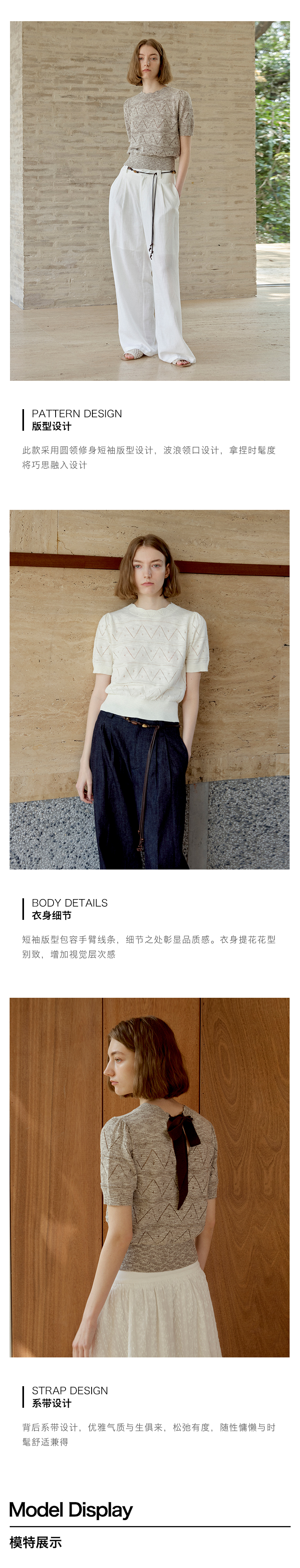 ForPoem 现货 25/SS原创设计泡泡袖提花系带短袖针织衫