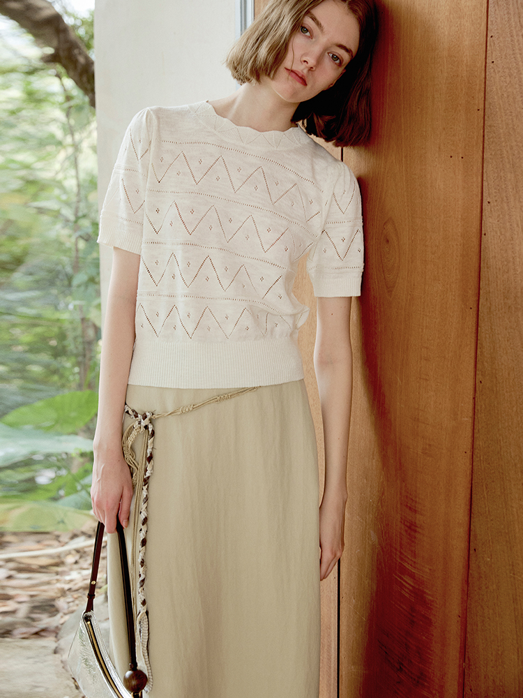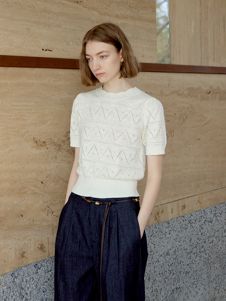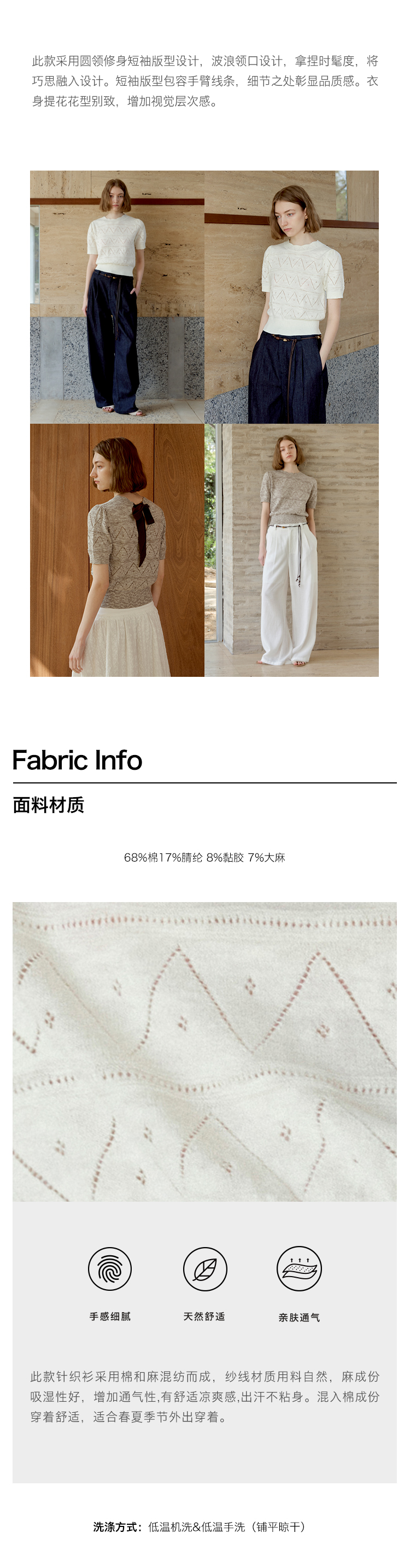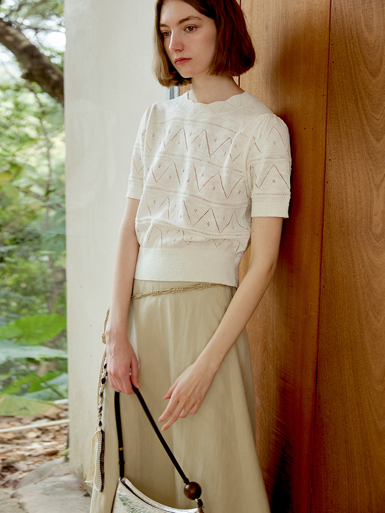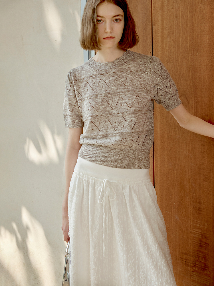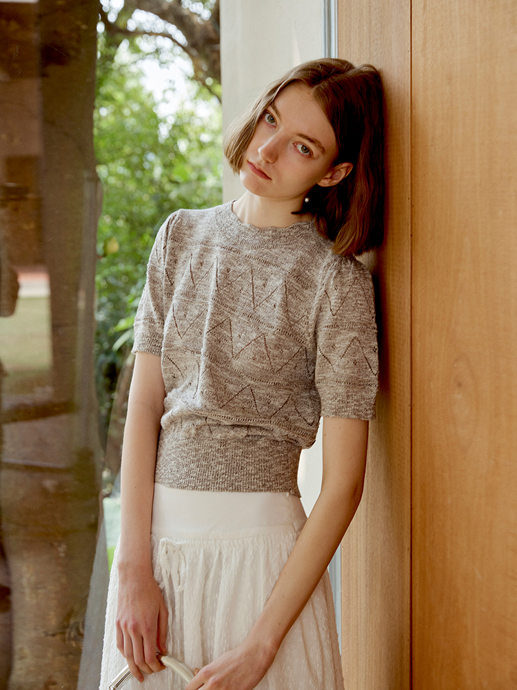 ForPoem 现货 25/SS原创设计泡泡袖提花系带短袖针织衫