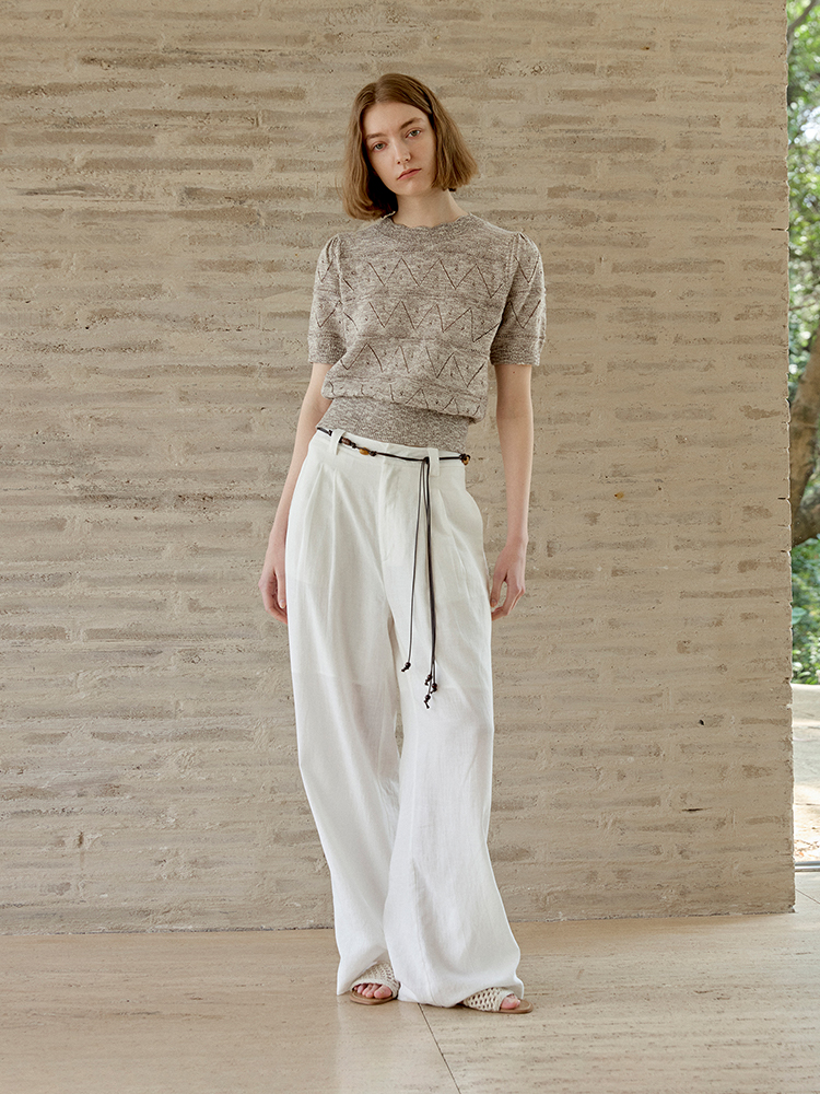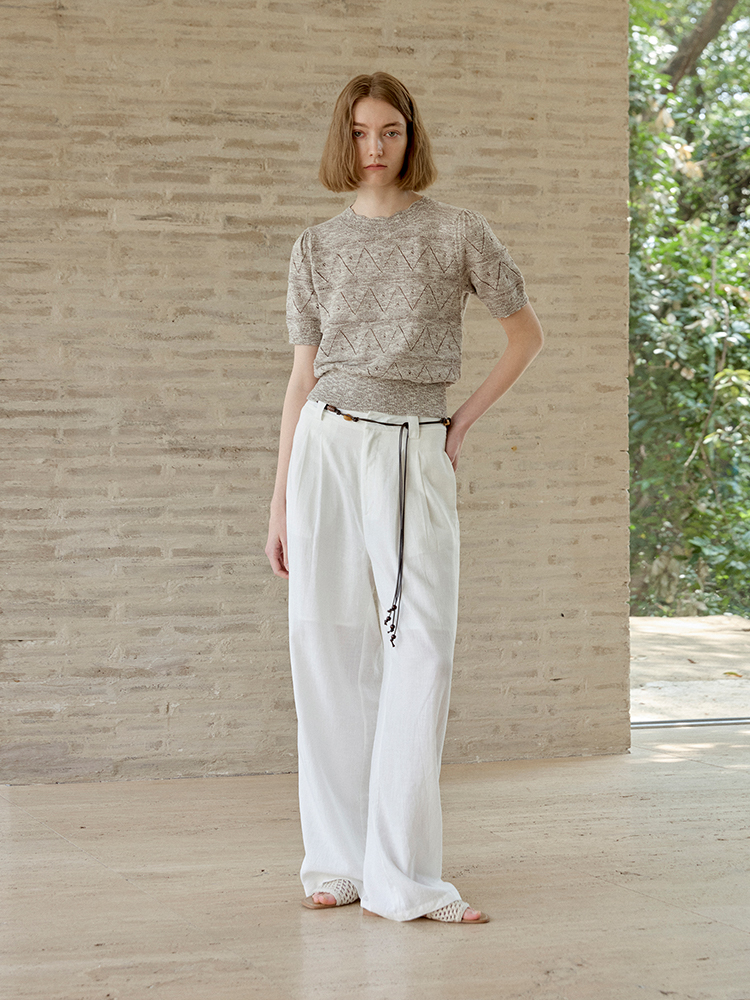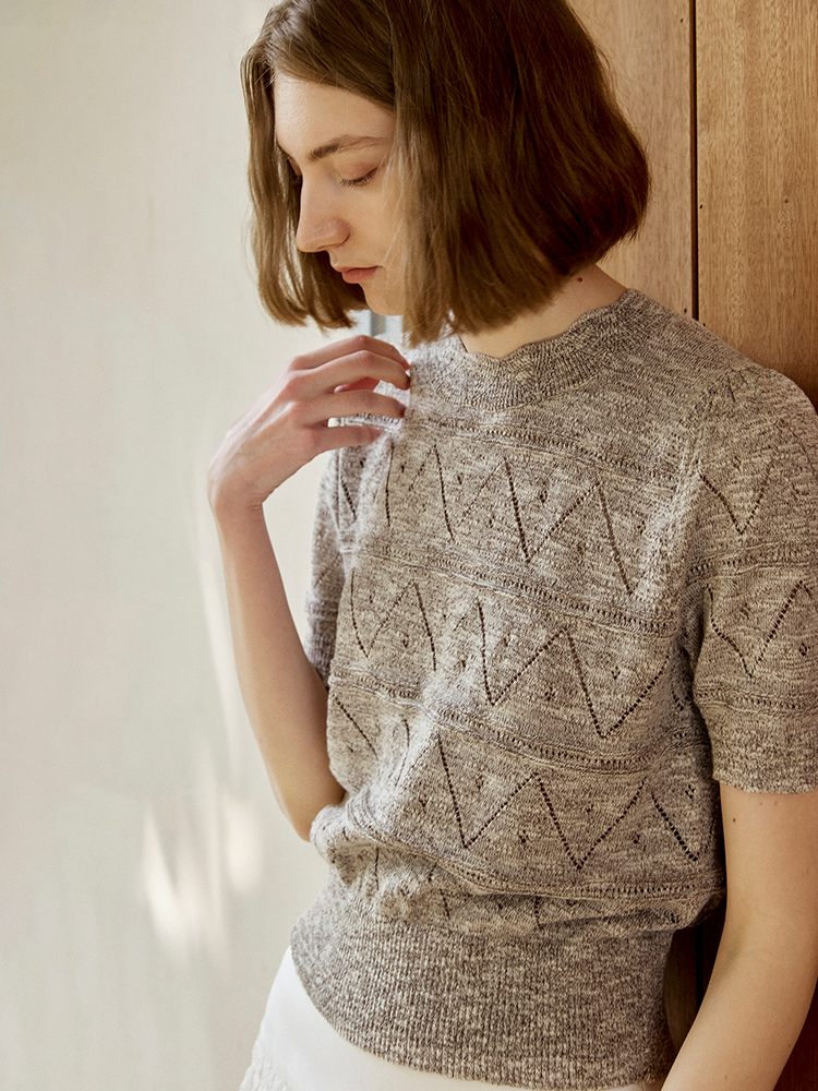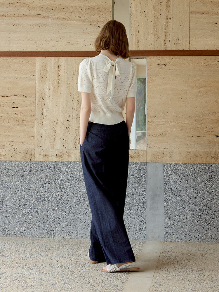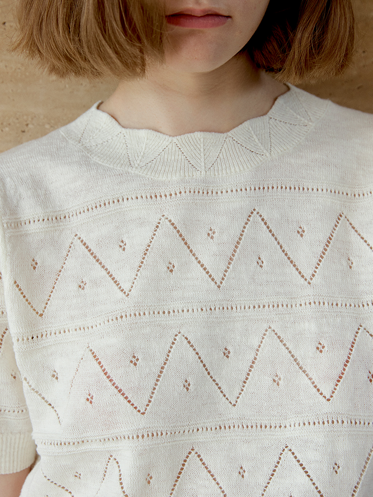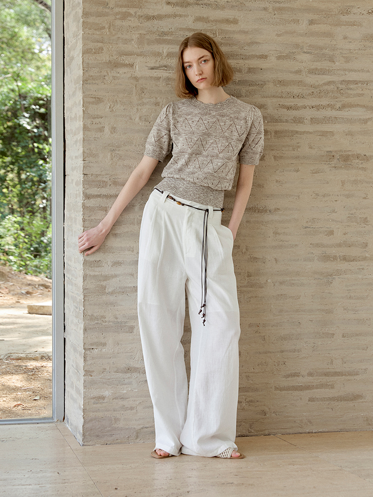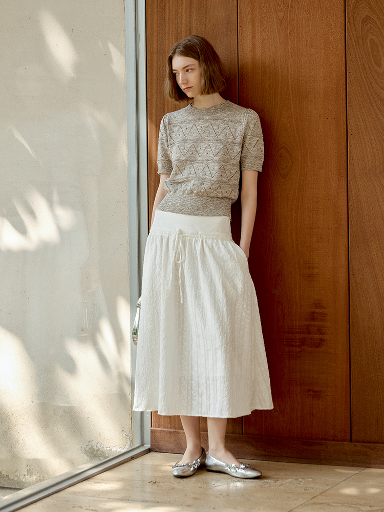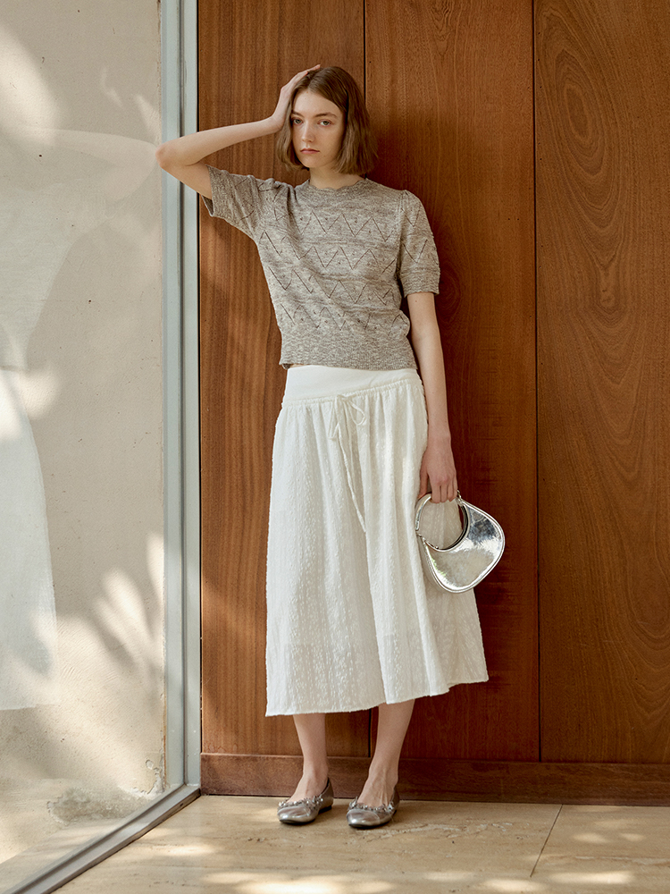 ForPoem 现货 25/SS原创设计泡泡袖提花系带短袖针织衫