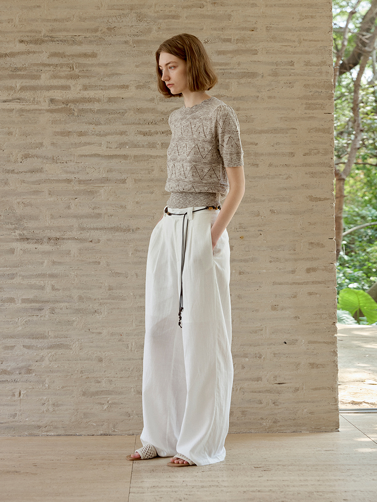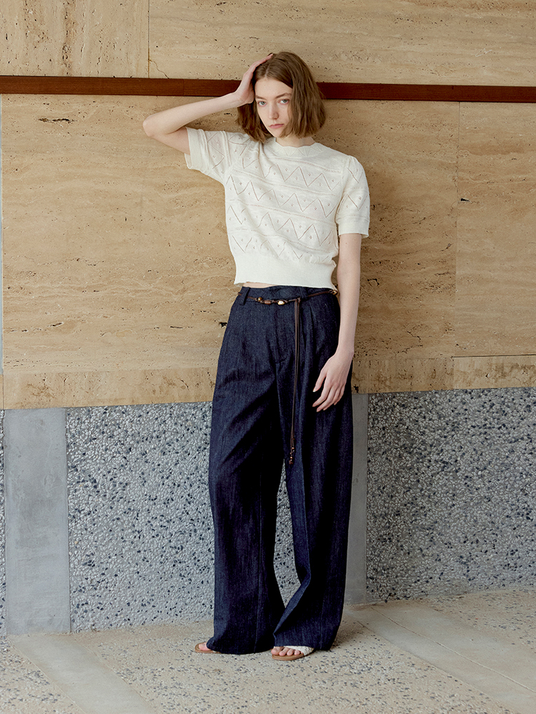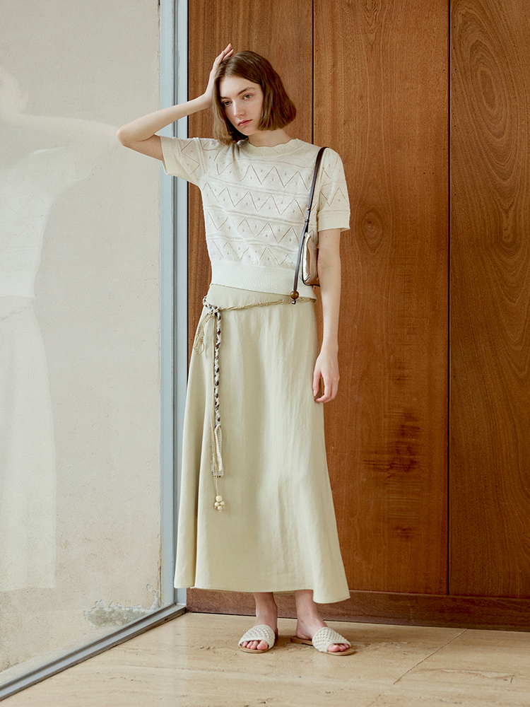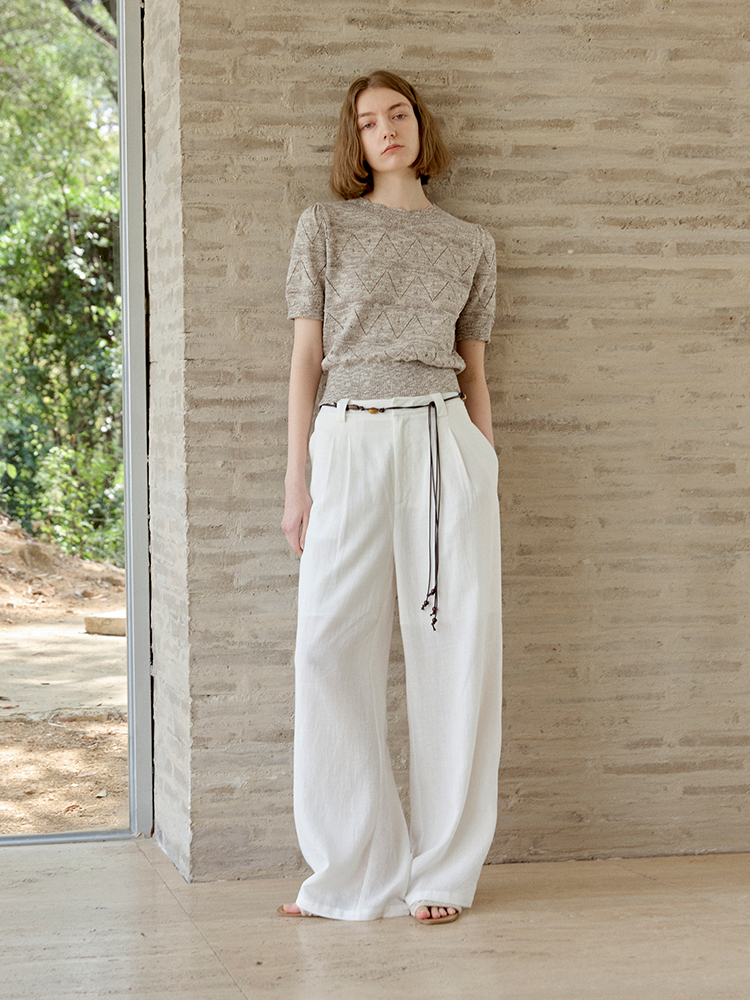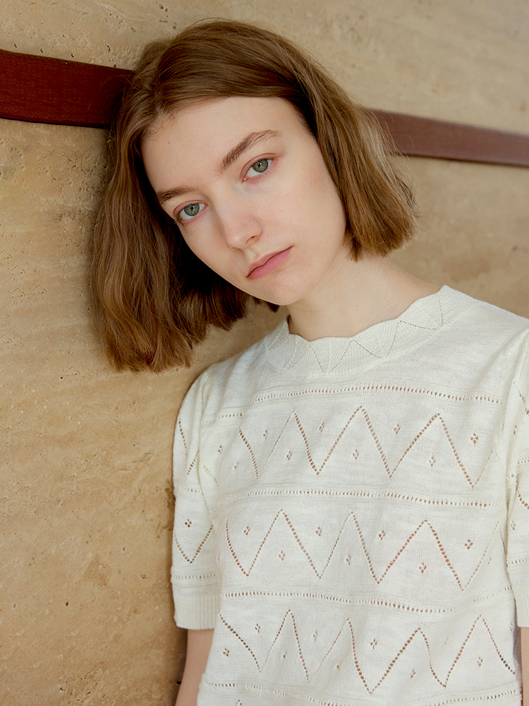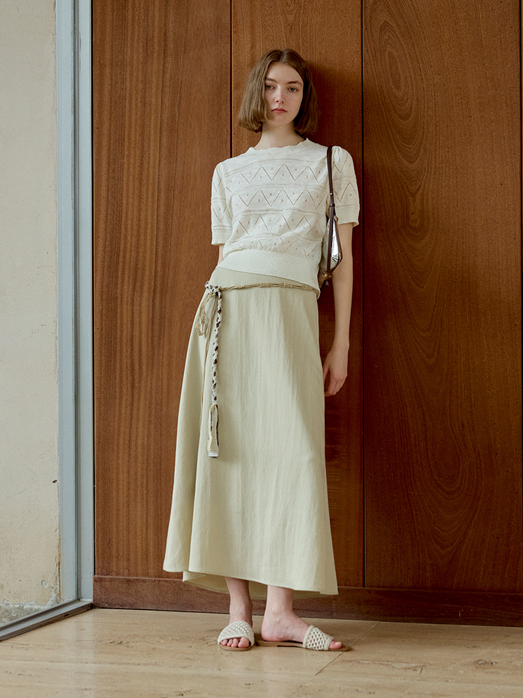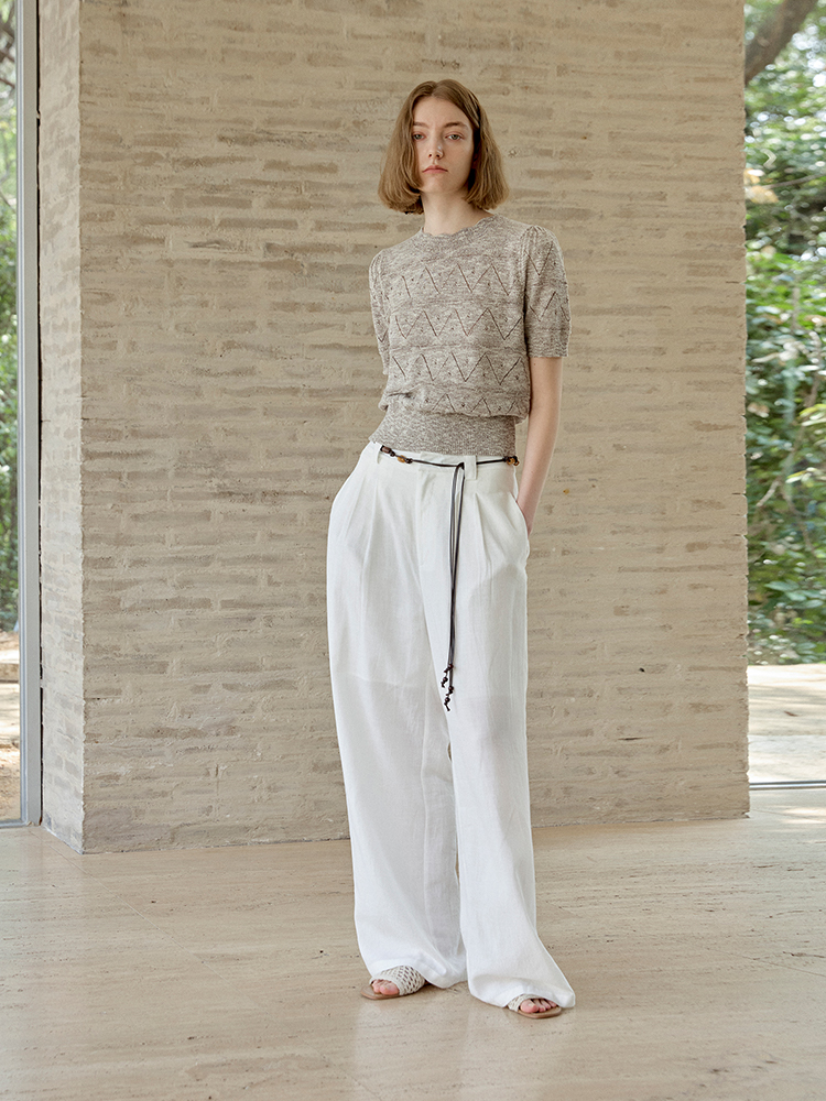 ForPoem 现货 25/SS原创设计泡泡袖提花系带短袖针织衫